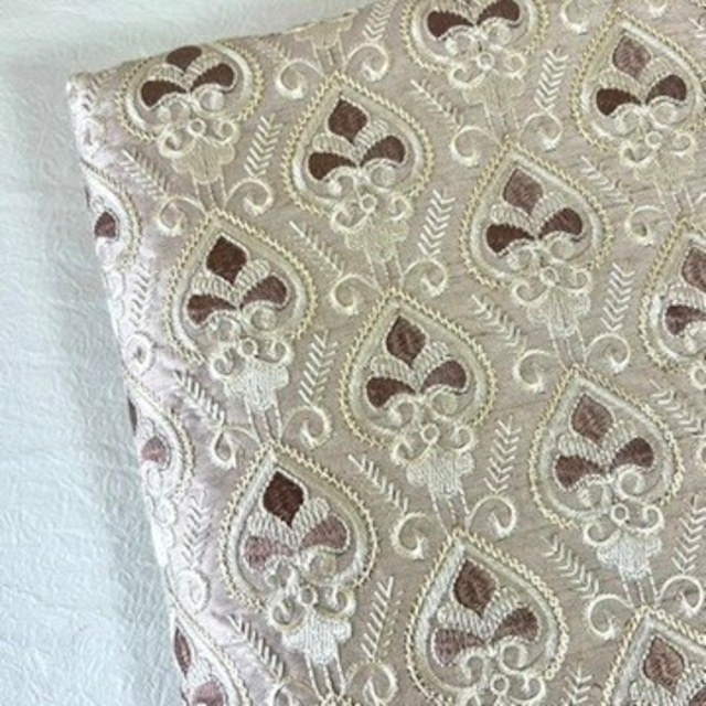 インド刺繍生地 サイズ:生地幅約110cm(刺繍部分約98cm) × 長さ50cm 生地:シルク 色味がお写真と若干異なる場合がございます。 複数ご購入で繋げてカット致します。 インドから直輸入しています♡ 注意点 インド刺繍生地の特性として 生地の汚れ 刺繍ミス 刺繍のつっぱりや、ヨレ、ほつれ スパンコールやパール、ビーズの割れ、取れ などがあります。 裏側のフェルトのような素材が付いていたり付いていない箇所があります。その為透け感が変わる箇所があります。 お写真と色味が異なることがあります。 折りジワがあります。 カットの際に歪みが出る場合があります。 小さめのサイズでのご用意なので、 大きな柄の際は、柄の位置が異なったり、切れたりすることがあります。 インド刺繍リボンほど、細かくダメージを取り除いておりません。 インド刺繍生地の特性を御理解頂いた上でのご購入をお願いします♡ 複数ご購入の場合 注意点にあるような箇所が入る確率が高くなりますことをご理解くださいませ。