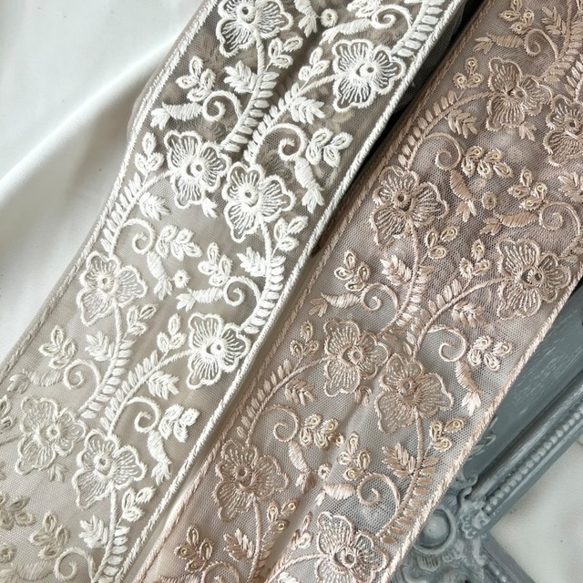 50cm インド刺繍リボン チュール 花柄 #mt65