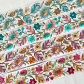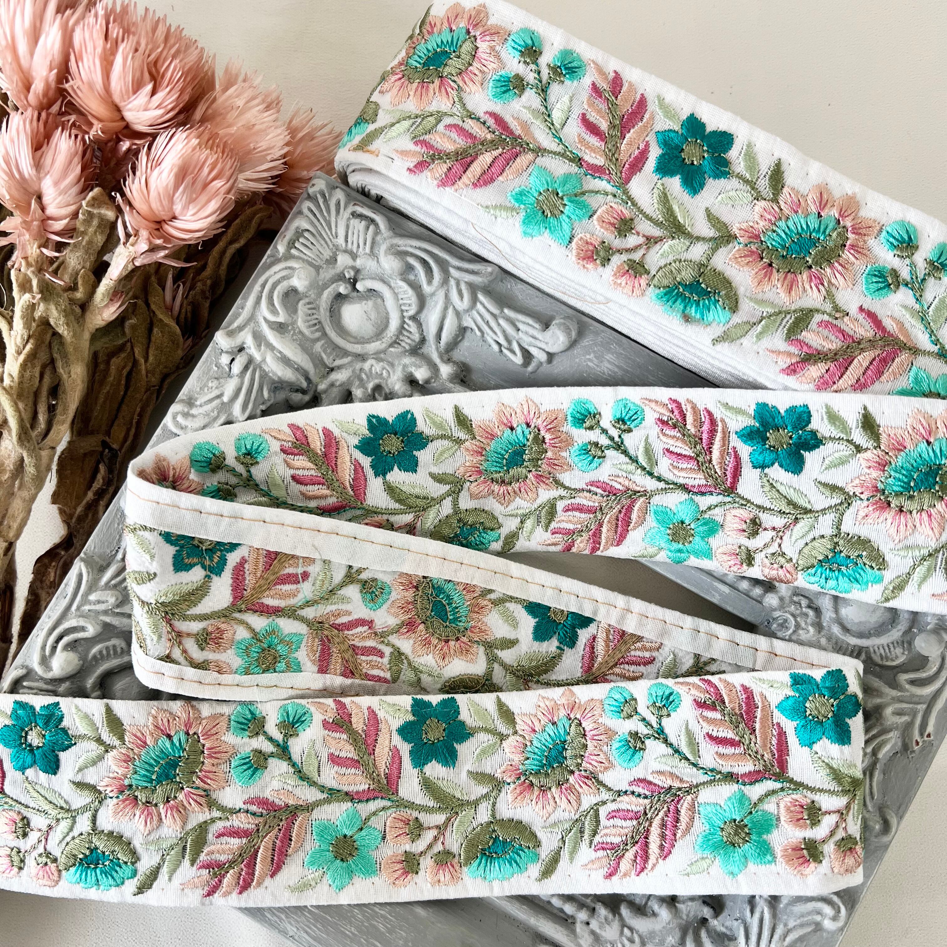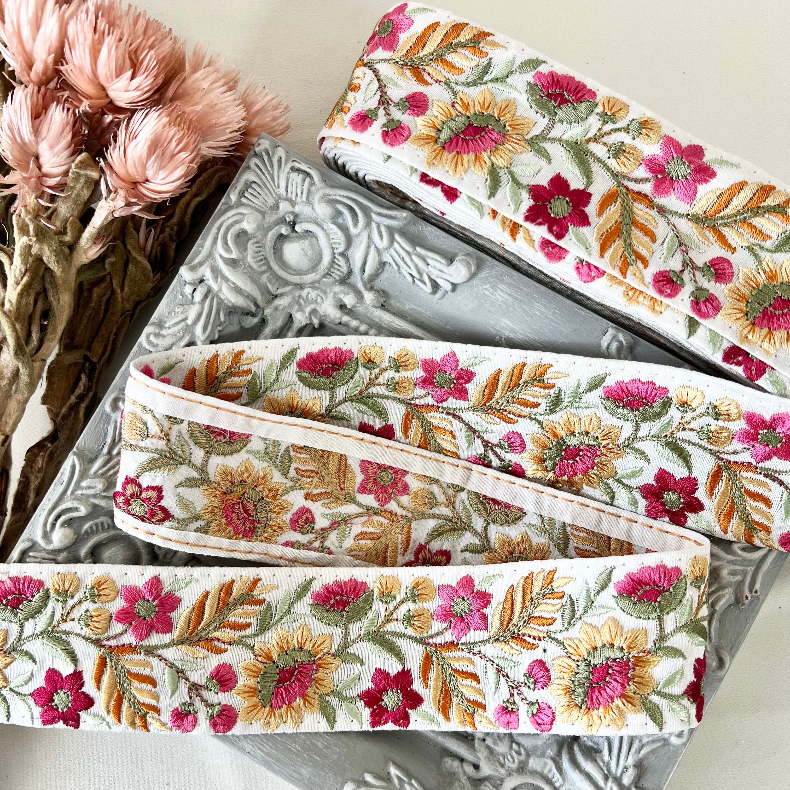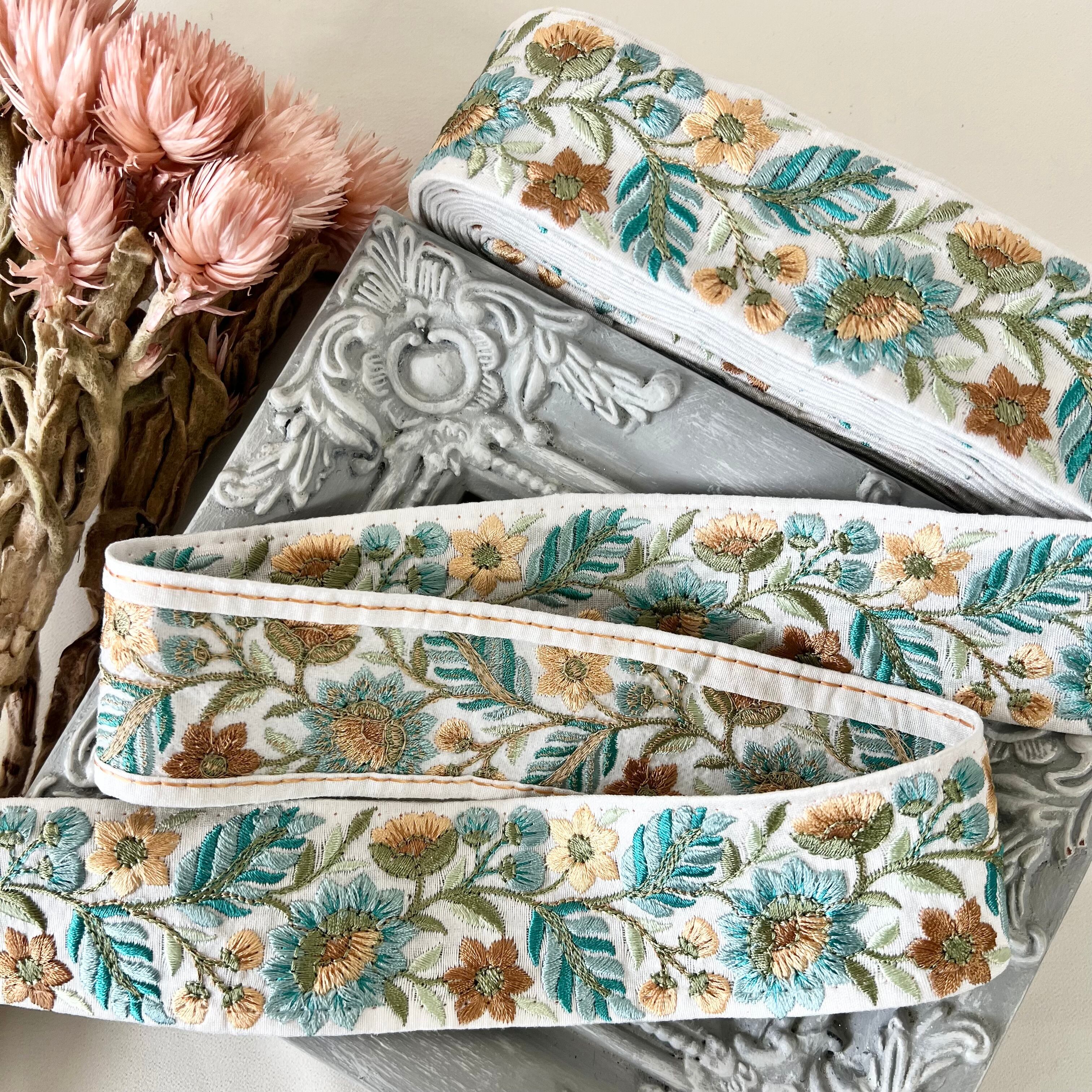 50cm インド刺繍リボン シルク 花柄 #ms50