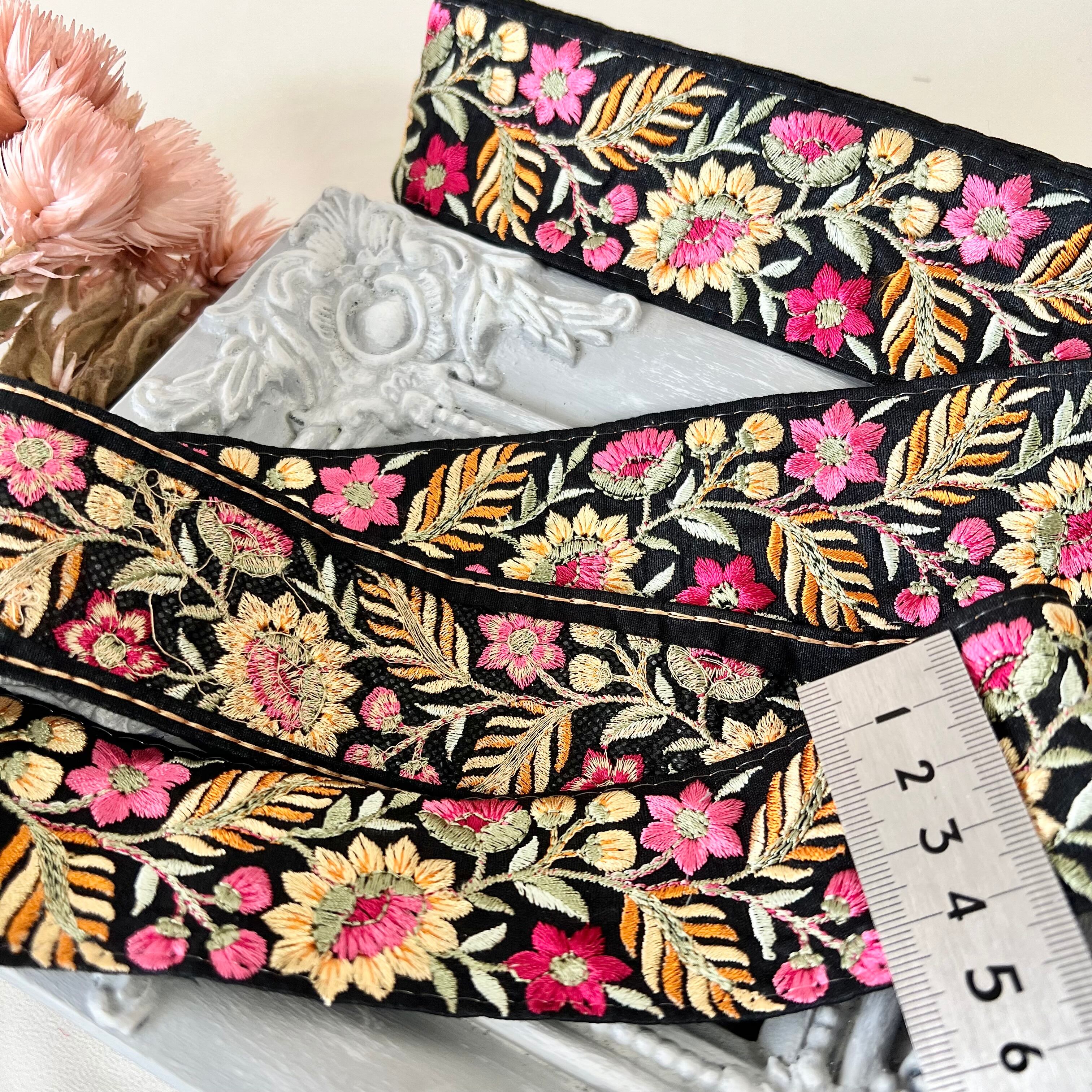 50cm インド刺繍リボン シルク 花柄 #ms51