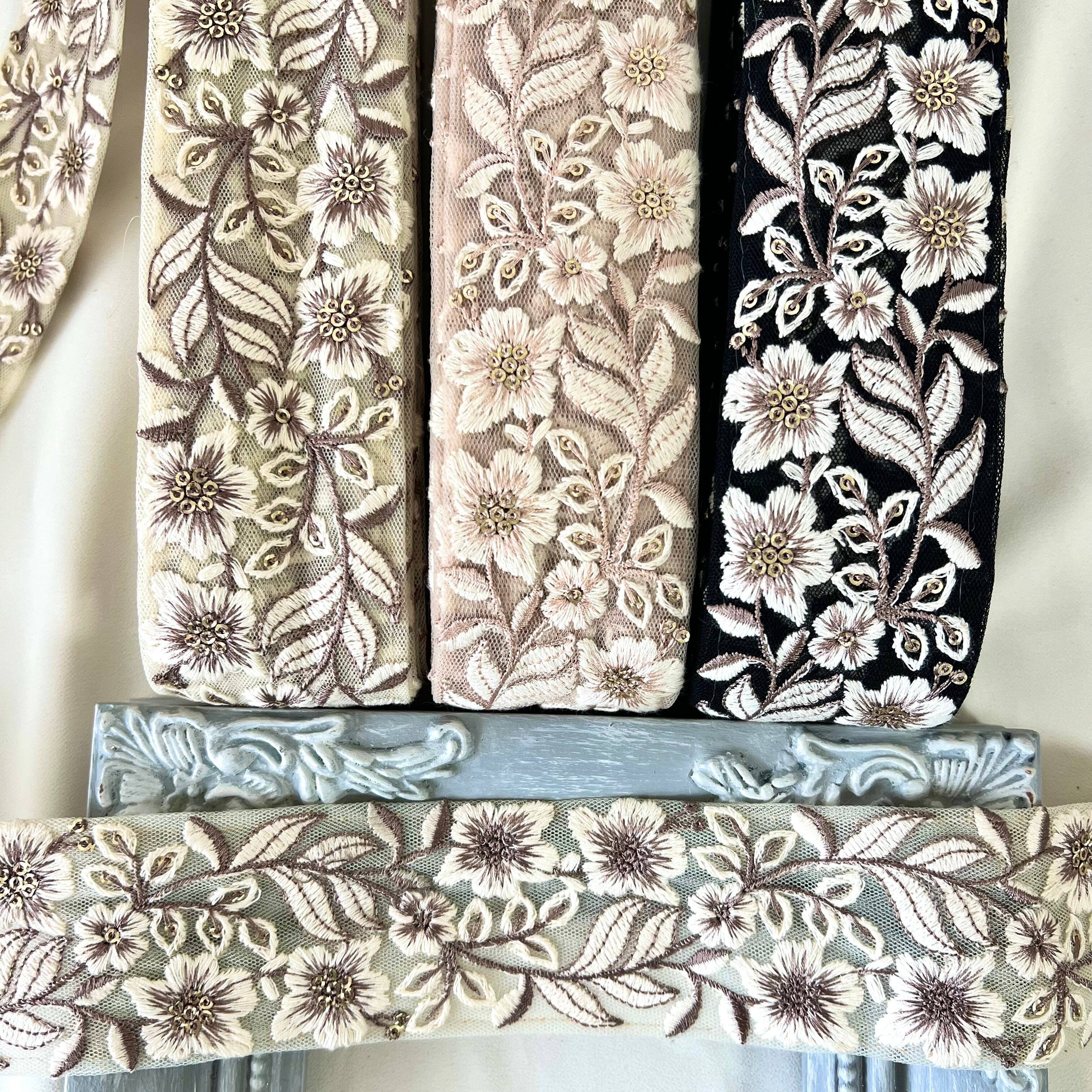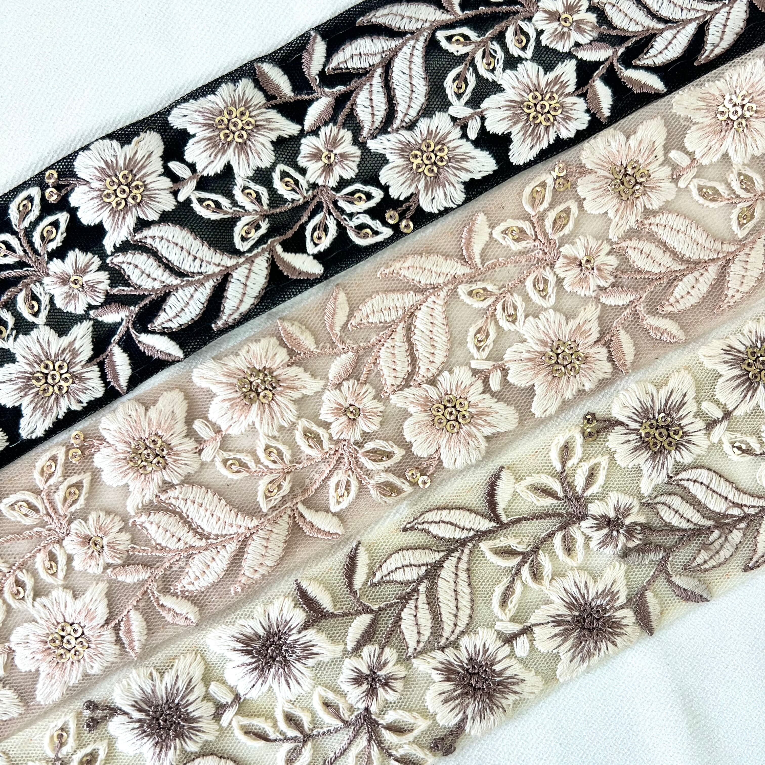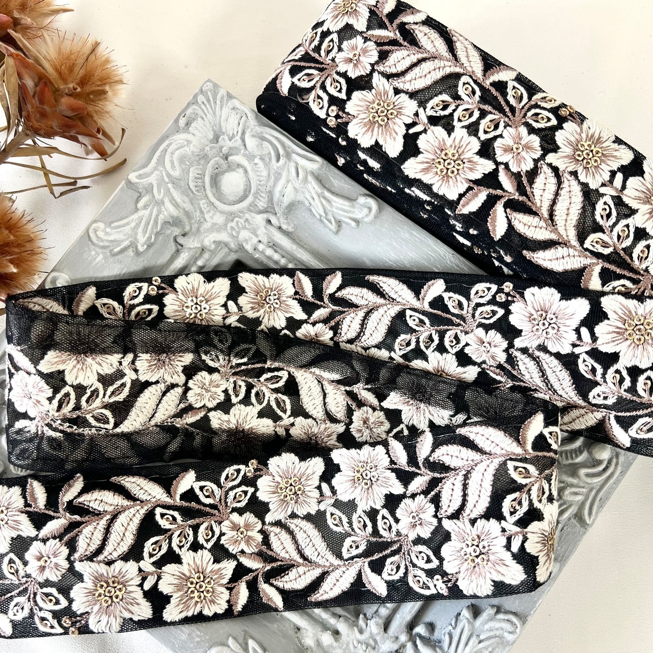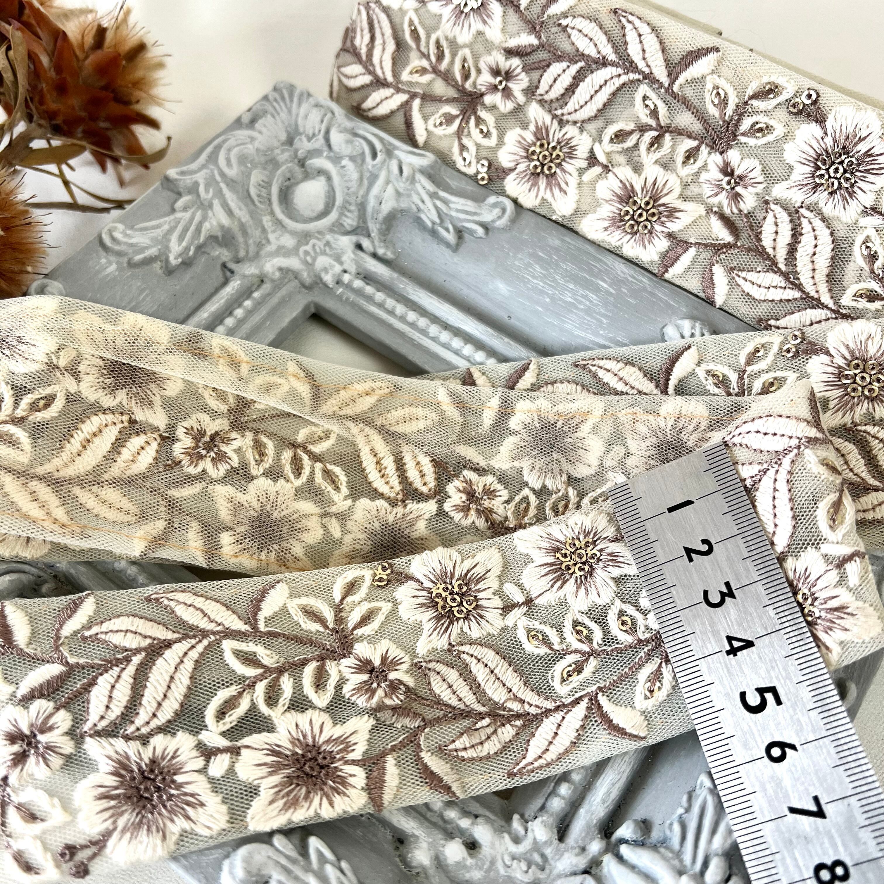 30cm インド刺繍リボン チュール 花柄 #mt63