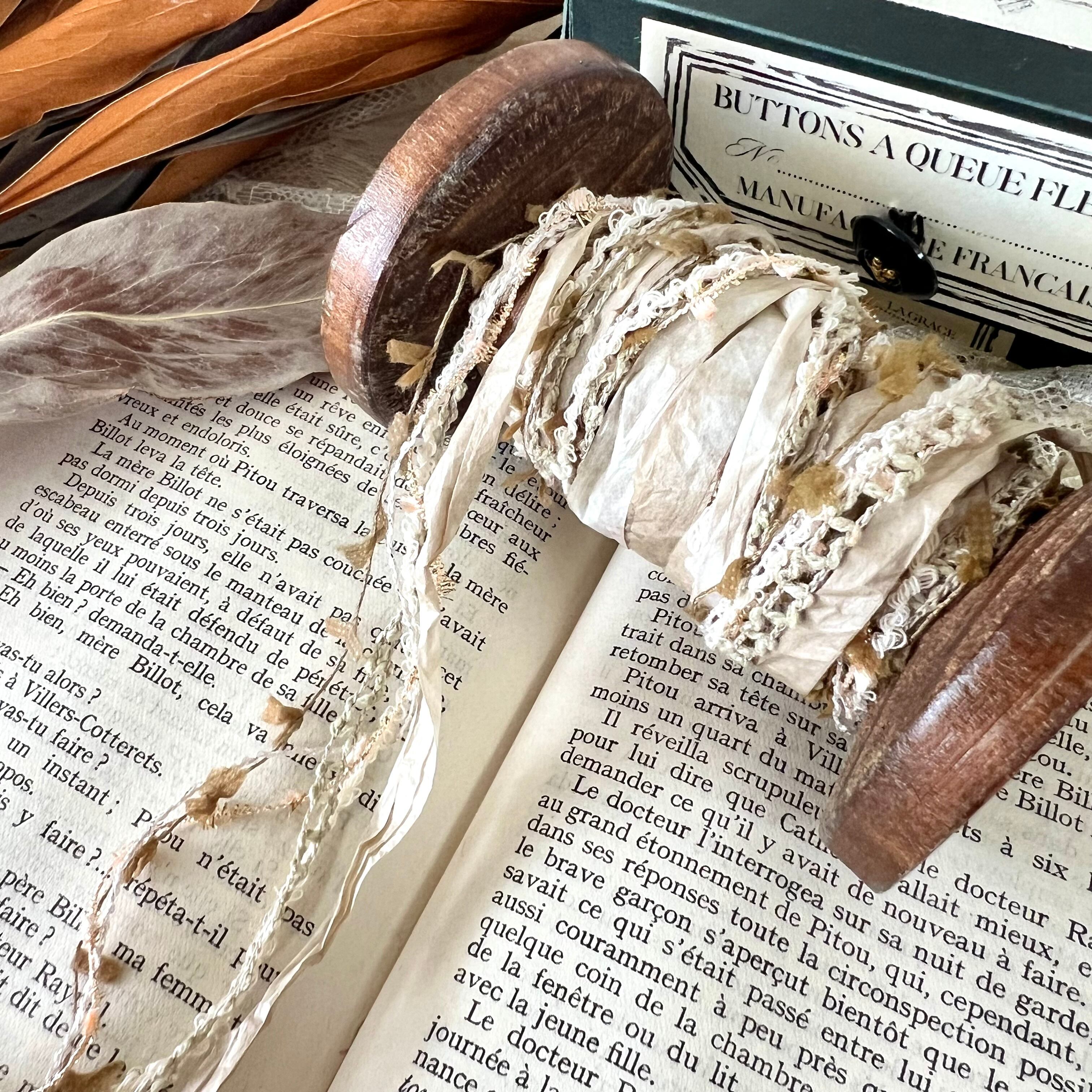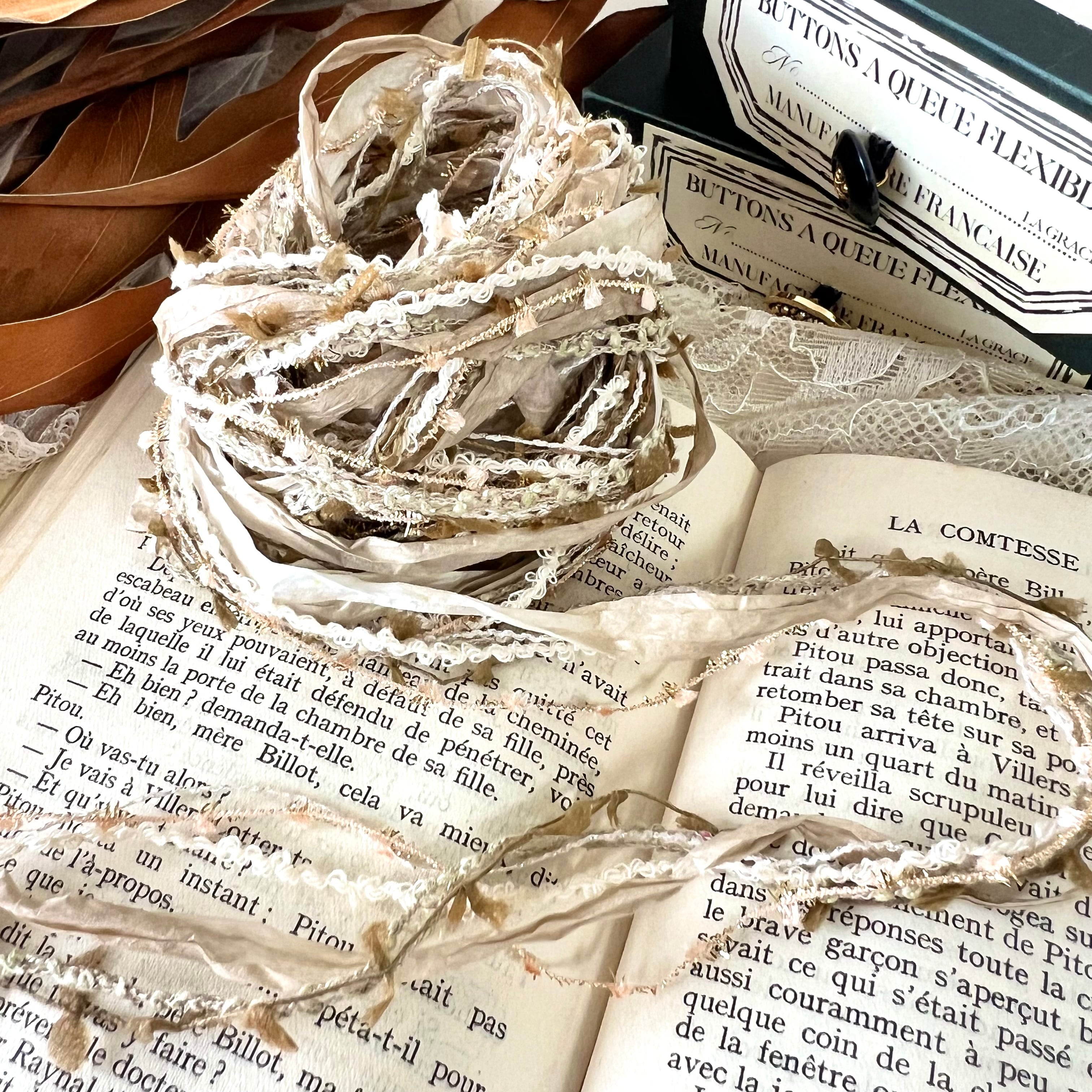 バンブーテープと5本のファンシーヤーンを合わせた引き揃え糸♡