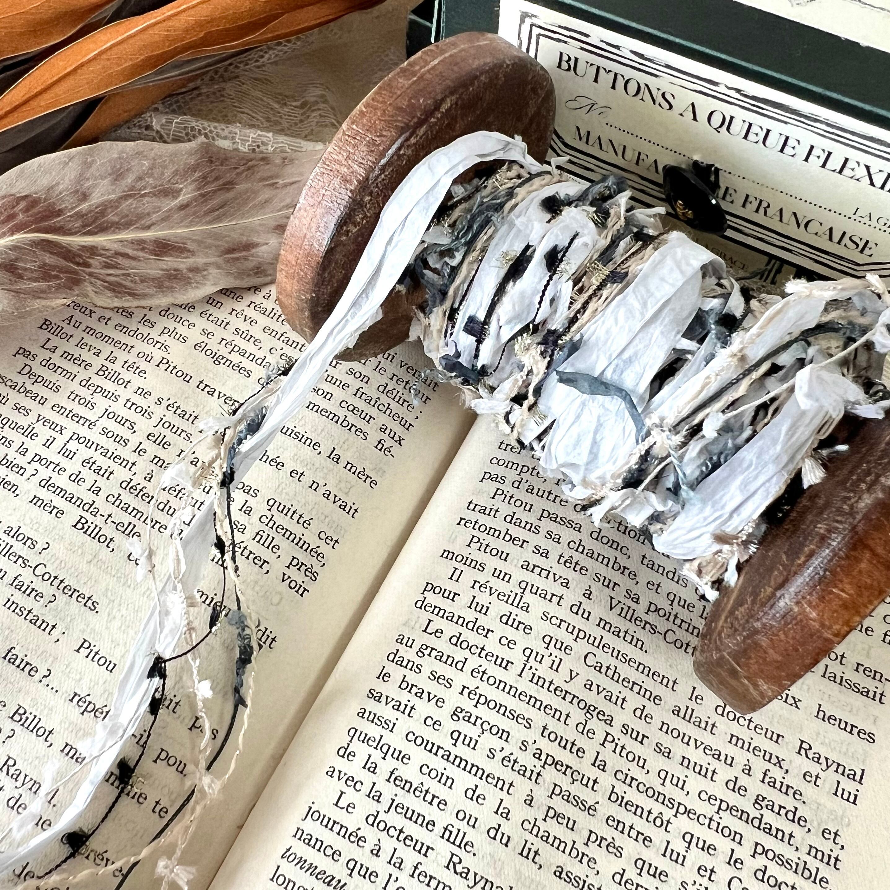 バンブーテープと5本のファンシーヤーンを合わせた引き揃え糸♡