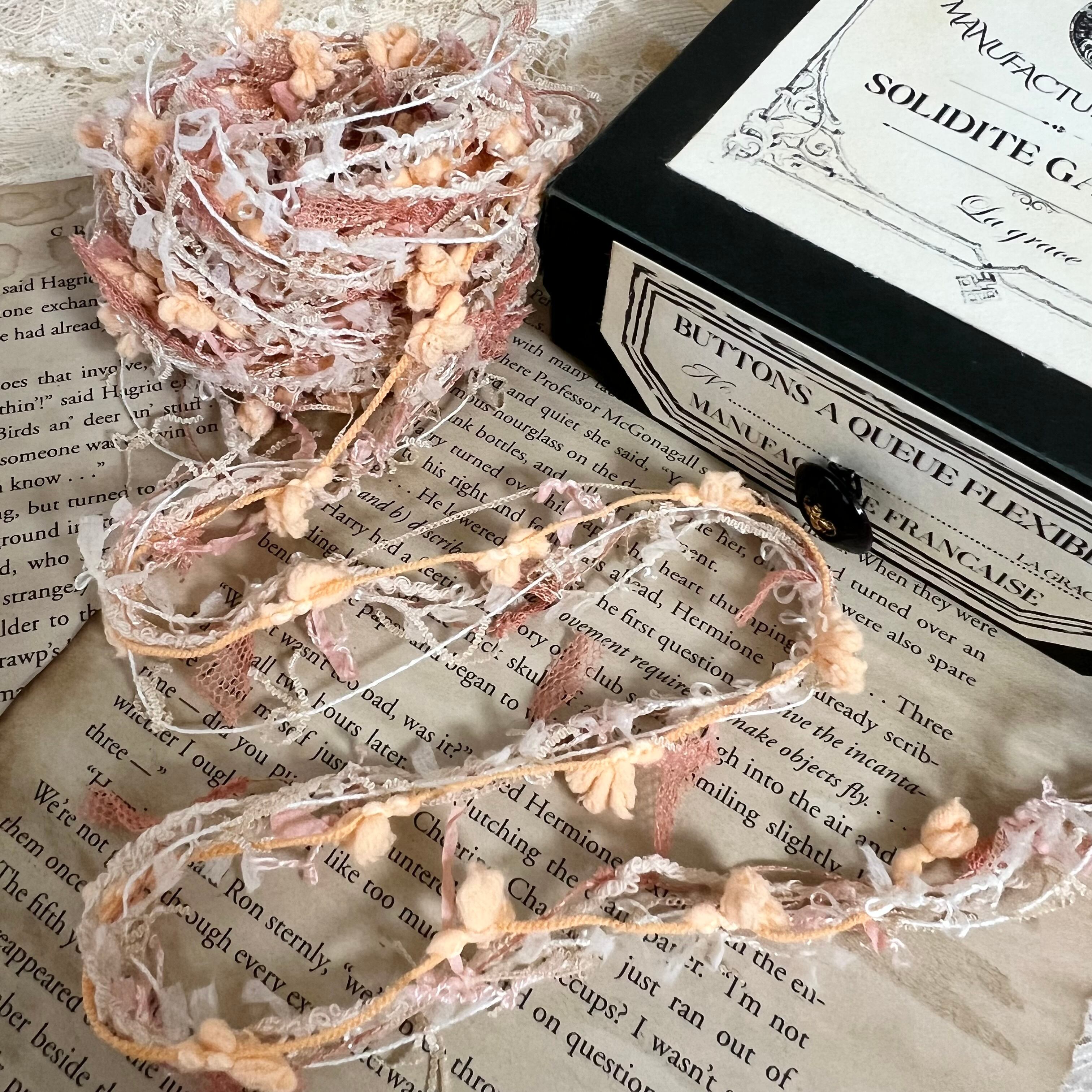 可愛い色にぷくぷくを染めて、くすんだリュクスな引き揃え糸にまとめました♡