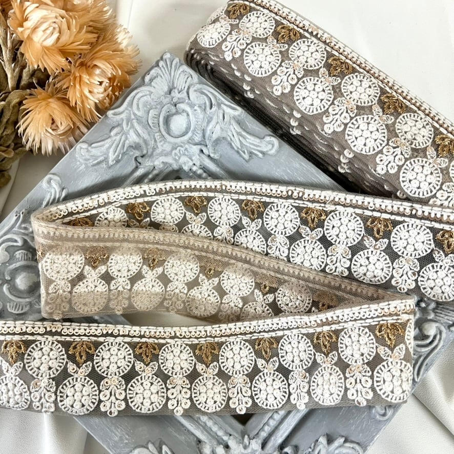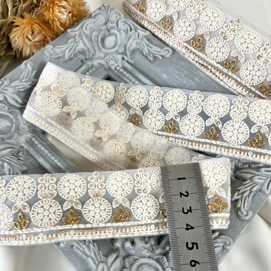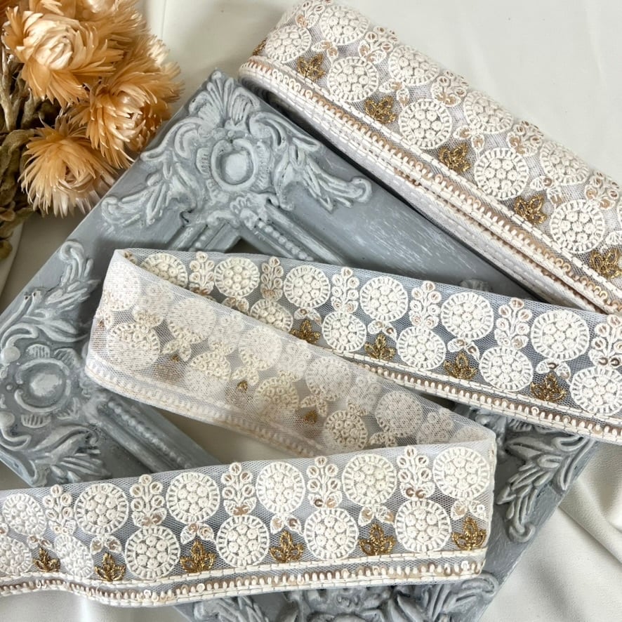 50cm インド刺繍リボン チュール 花柄 #mt64