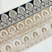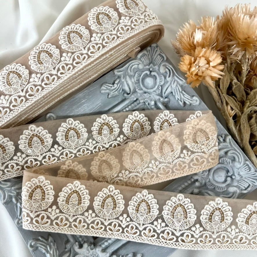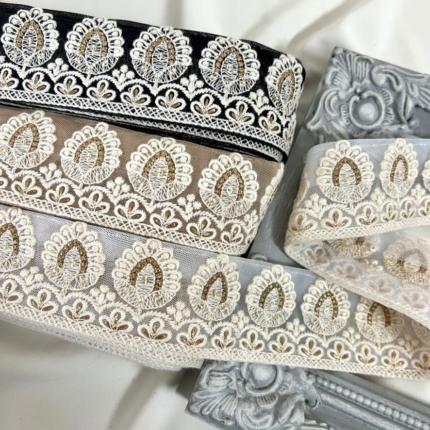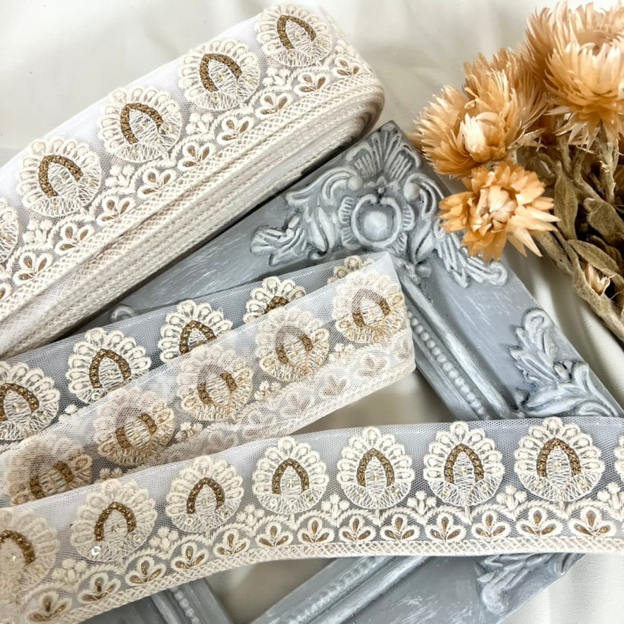 50cm インド刺繍リボン チュール 花柄 #mt65