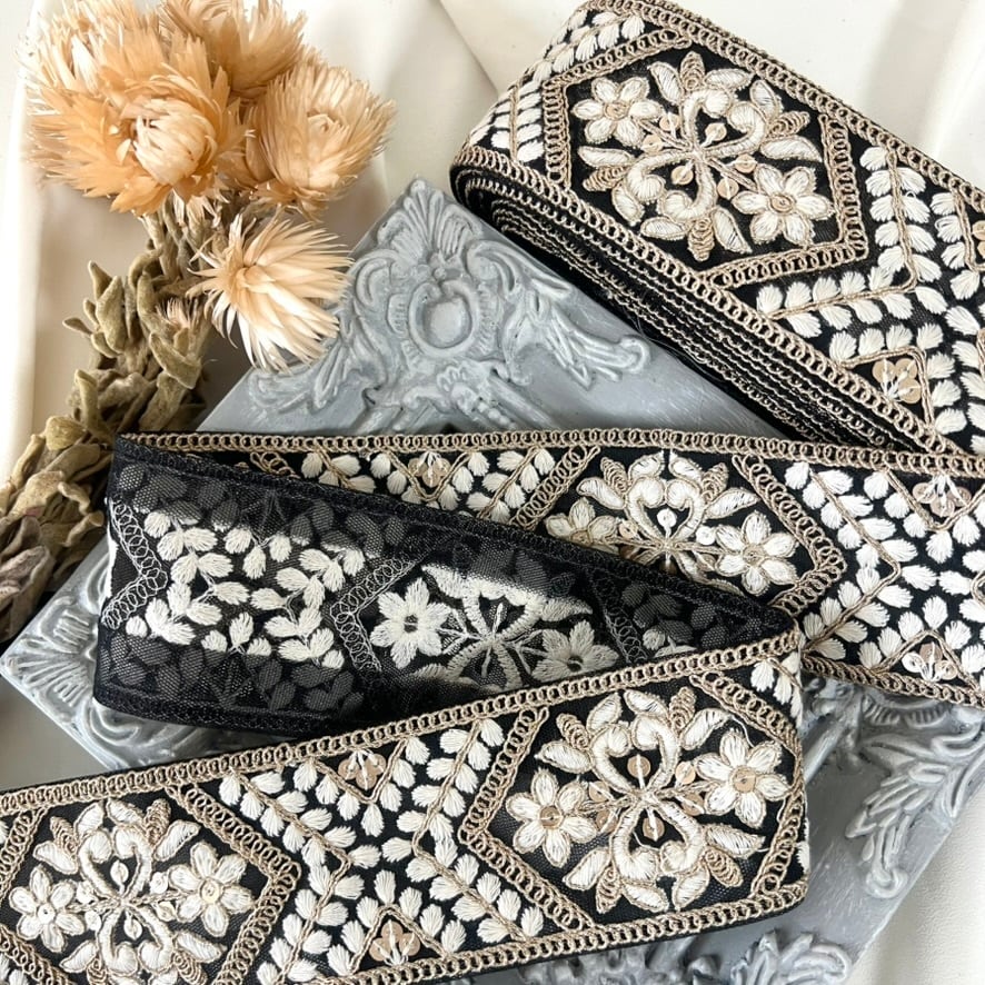 30cm インド刺繍リボン チュール 花柄 #pw92