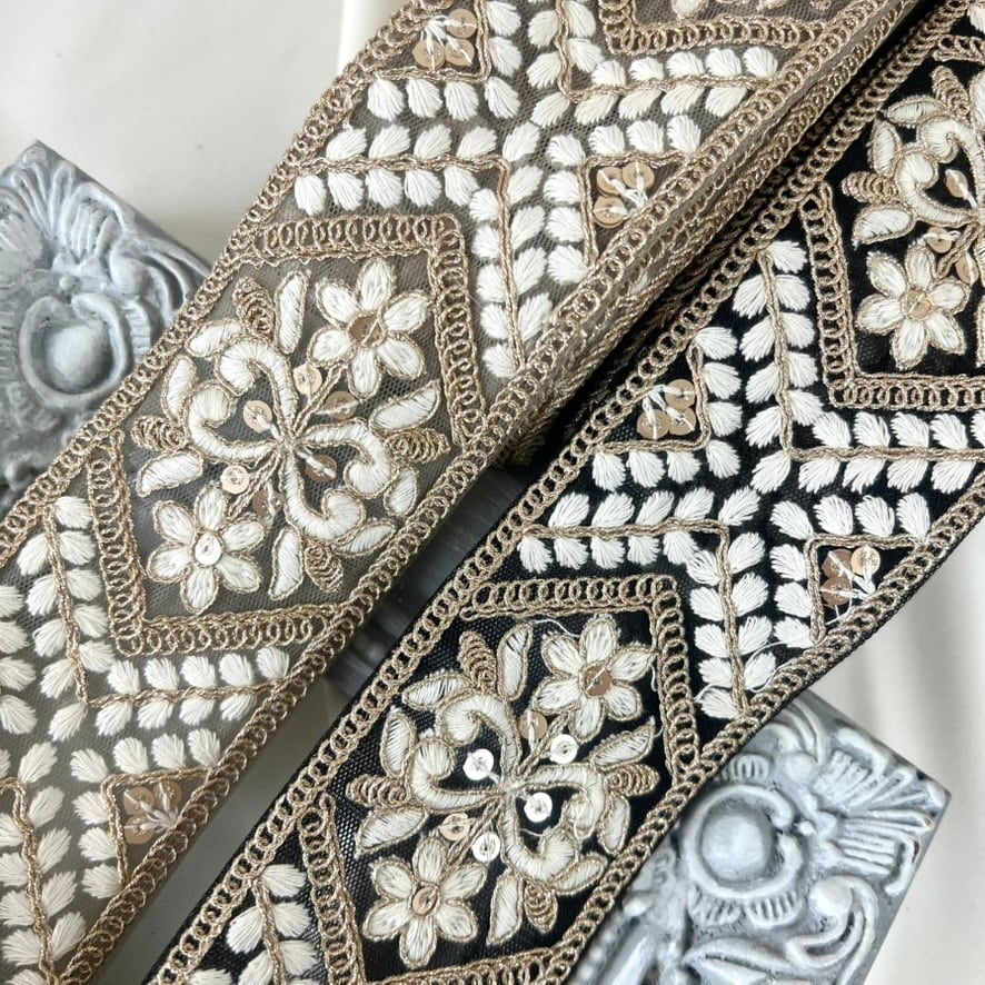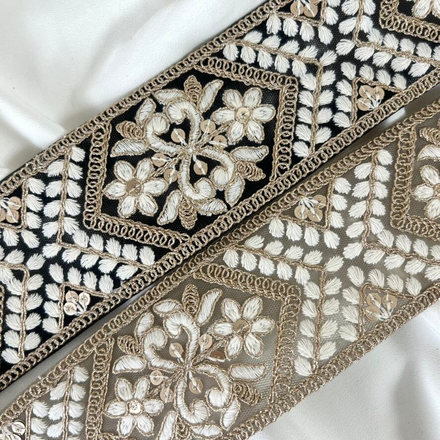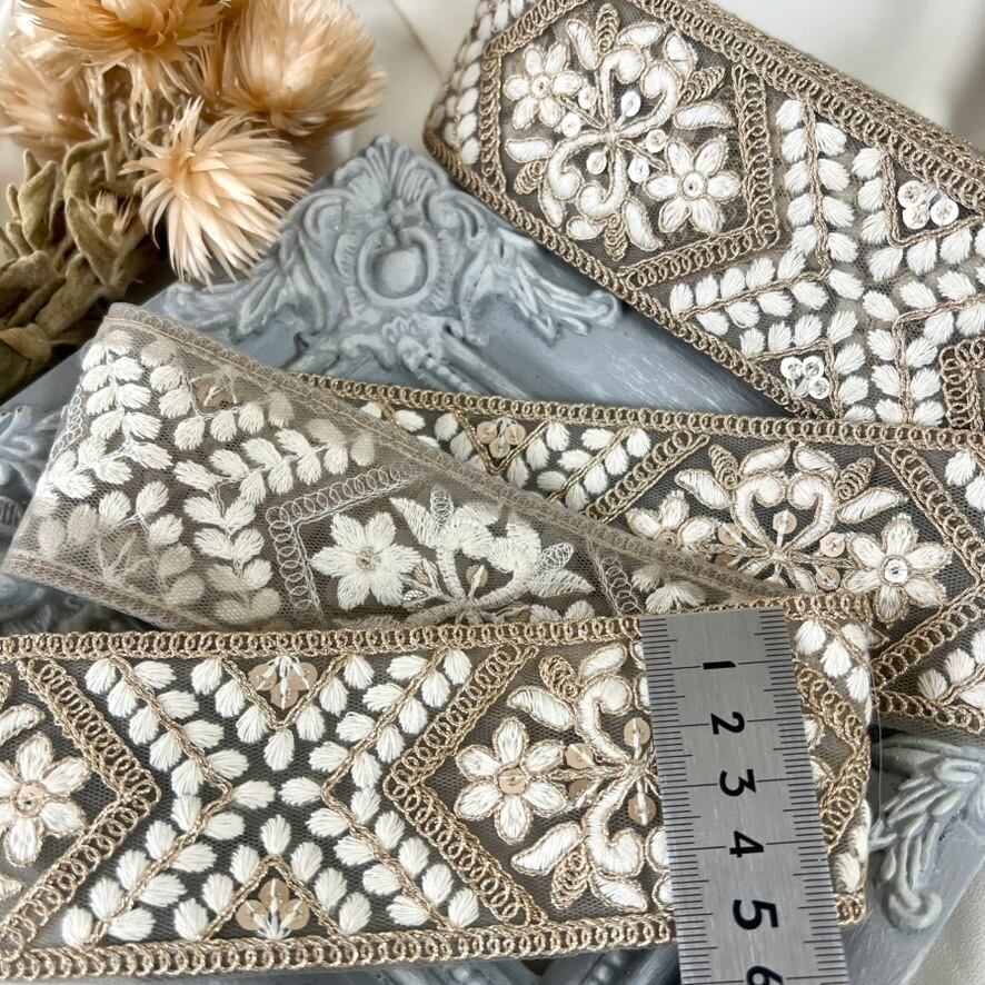 50cm インド刺繍リボン チュール 花柄 #pw92