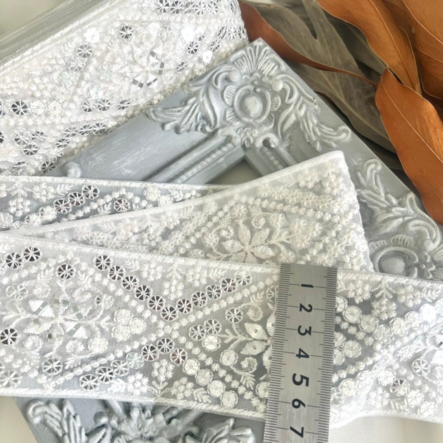 50cm インド刺繍リボン チュール ひし形柄 #pw95