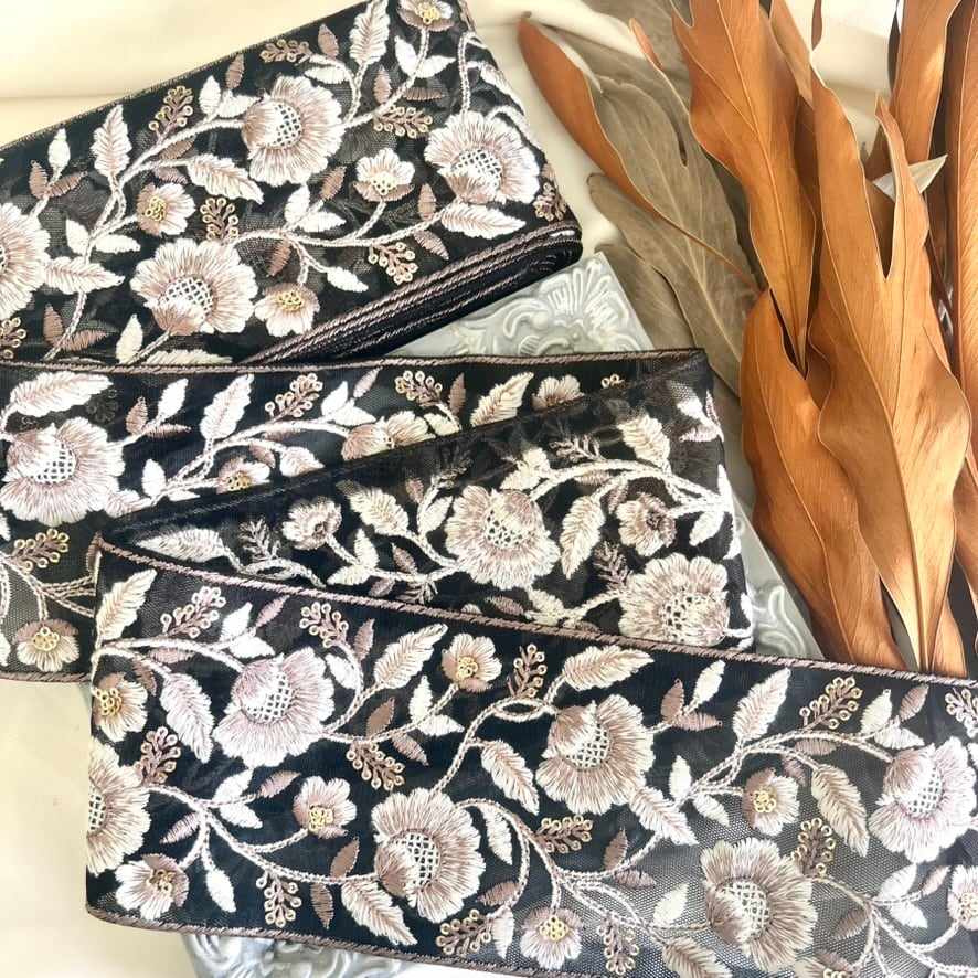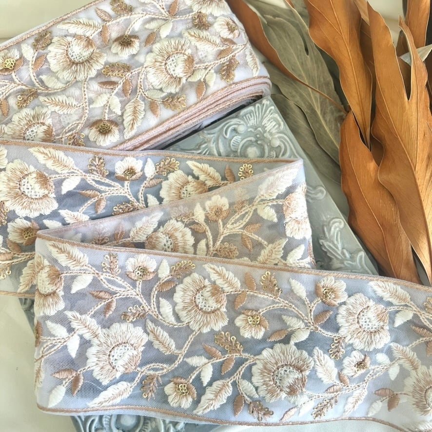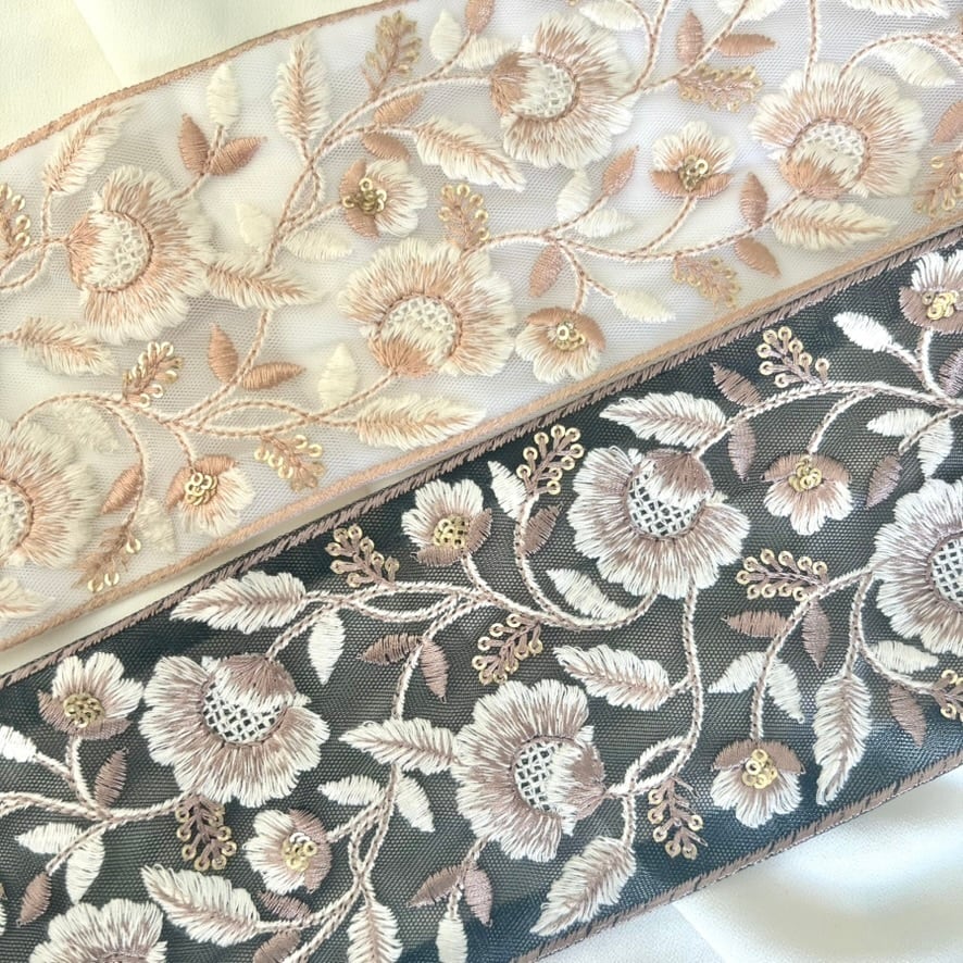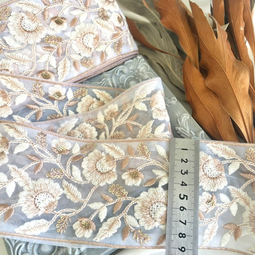 30cm インド刺繍リボン チュール 花柄 #wt33