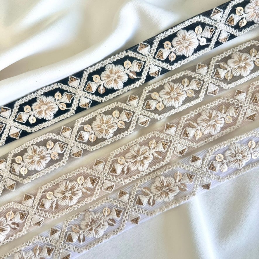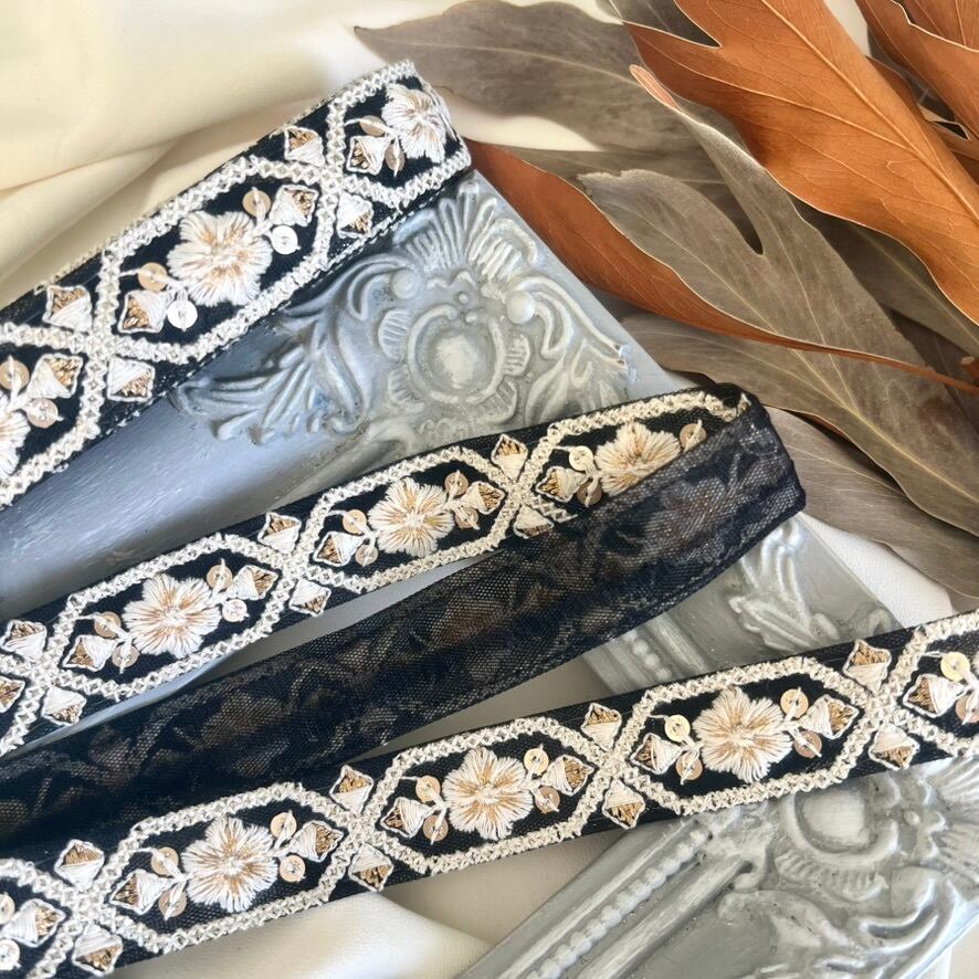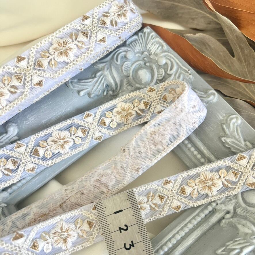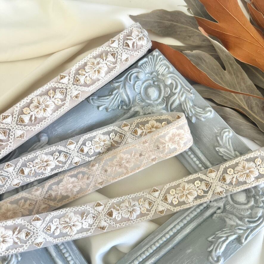 50cm インド刺繍リボン チュール 花柄 #nt51