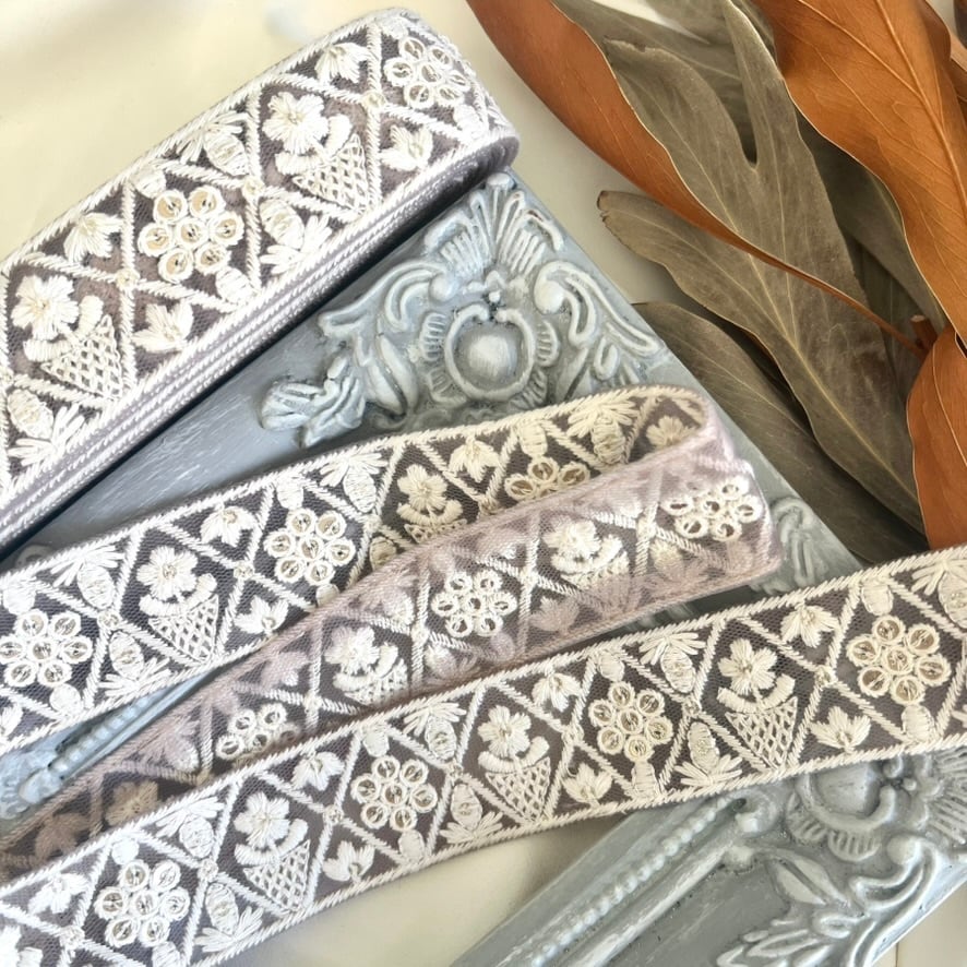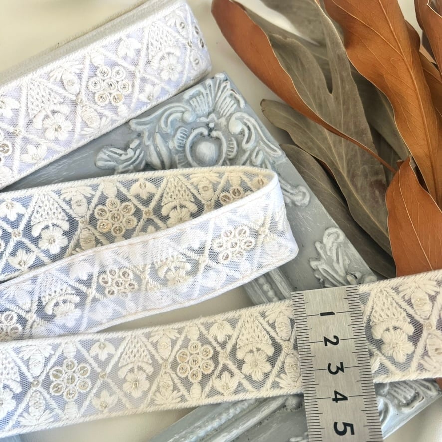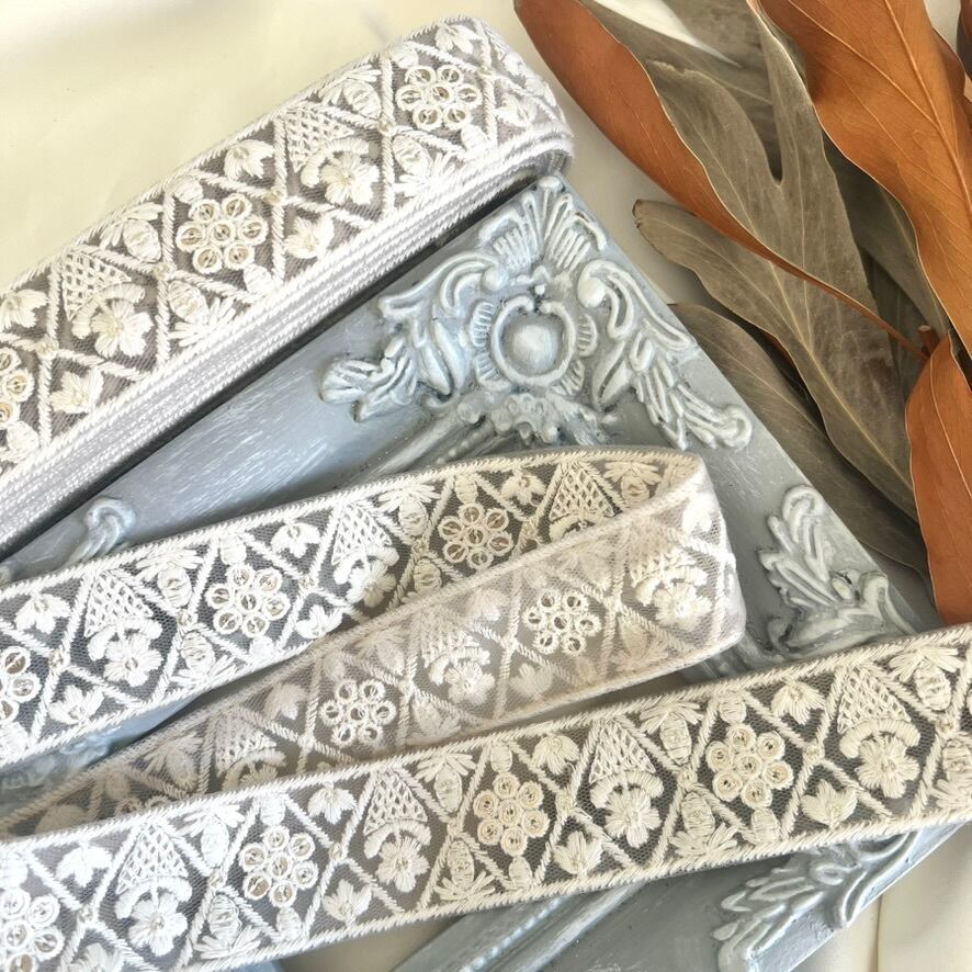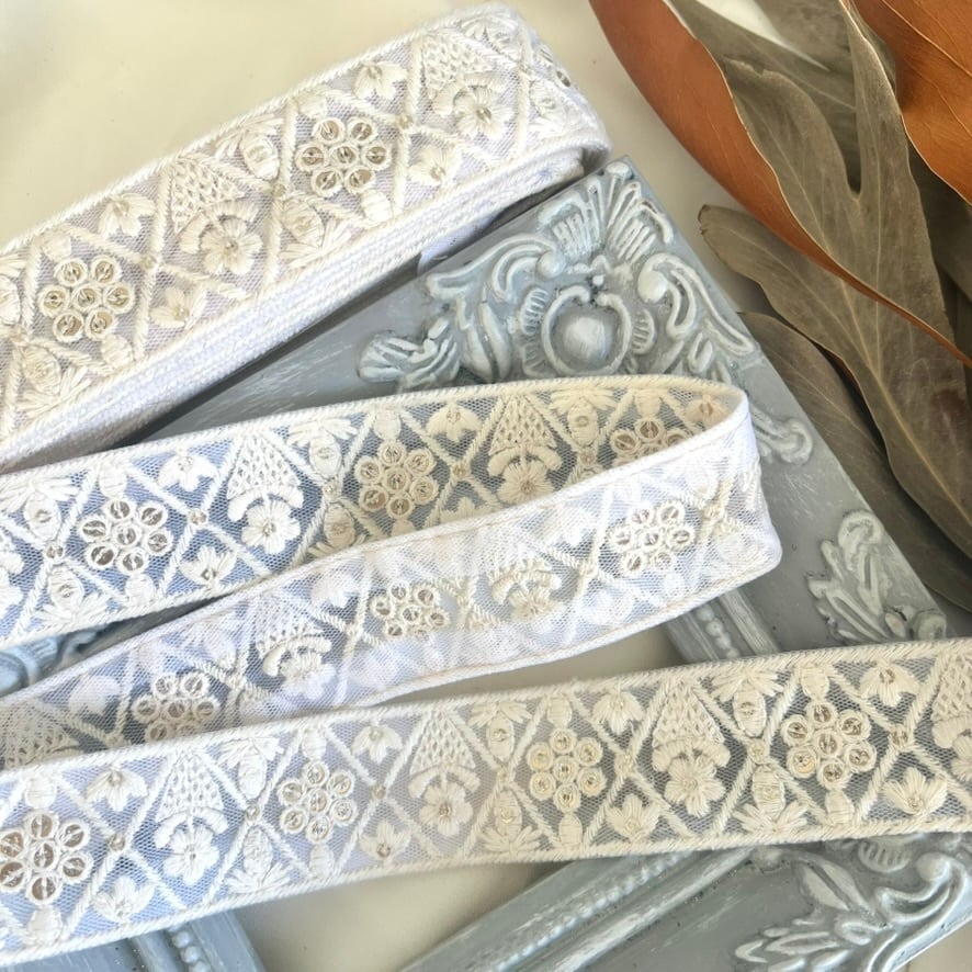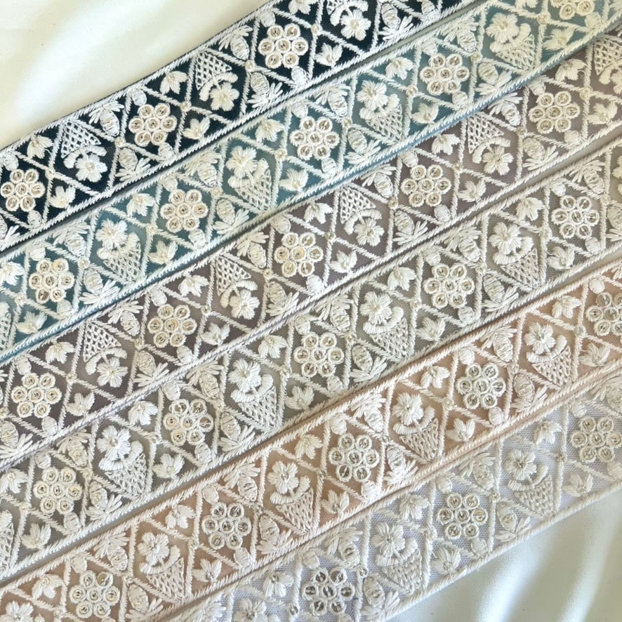 50cm インド刺繍リボン チュール 花柄 #n2t39
