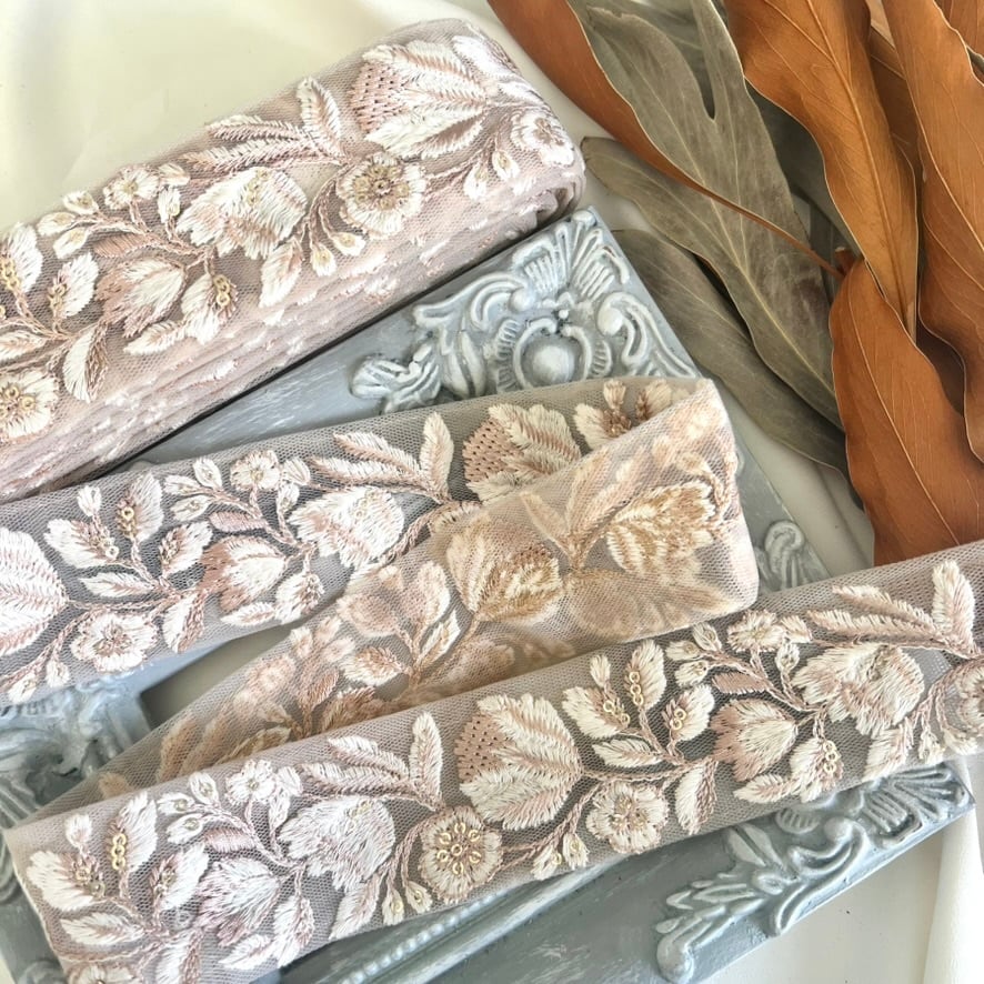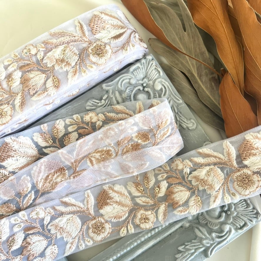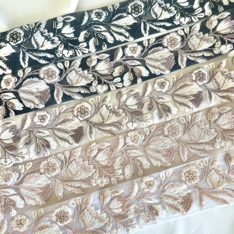 50cm インド刺繍リボン チュール 花柄 #mt68