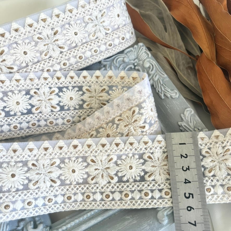 30cm インド刺繍リボン チュール 花柄 #mt69