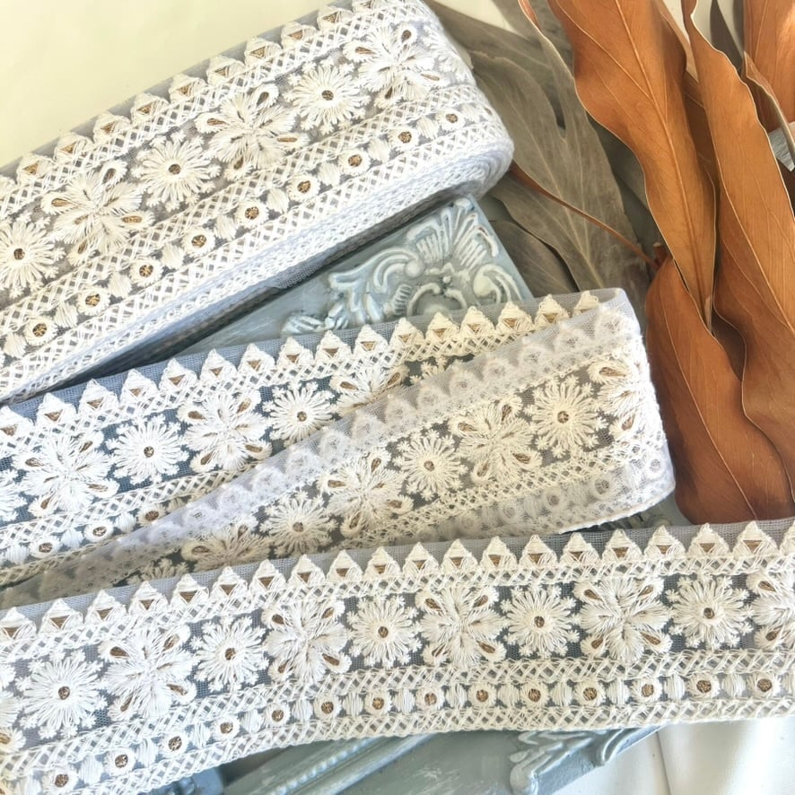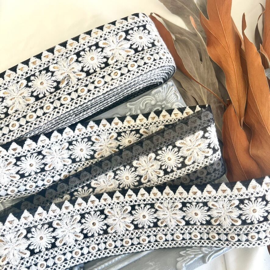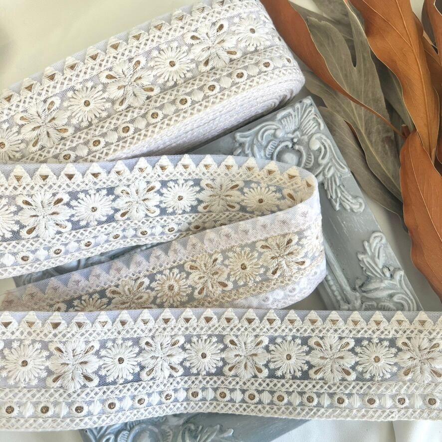 50cm インド刺繍リボン チュール 花柄 #mt69