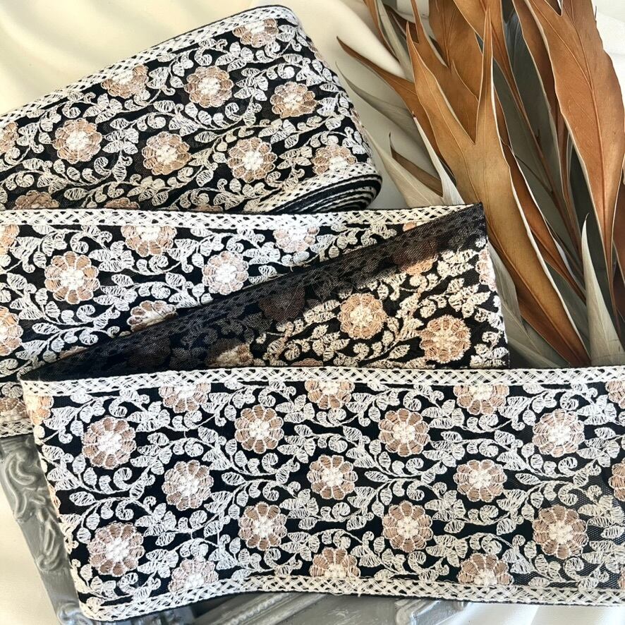 30cm インド刺繍リボン チュール 花柄 #wt34