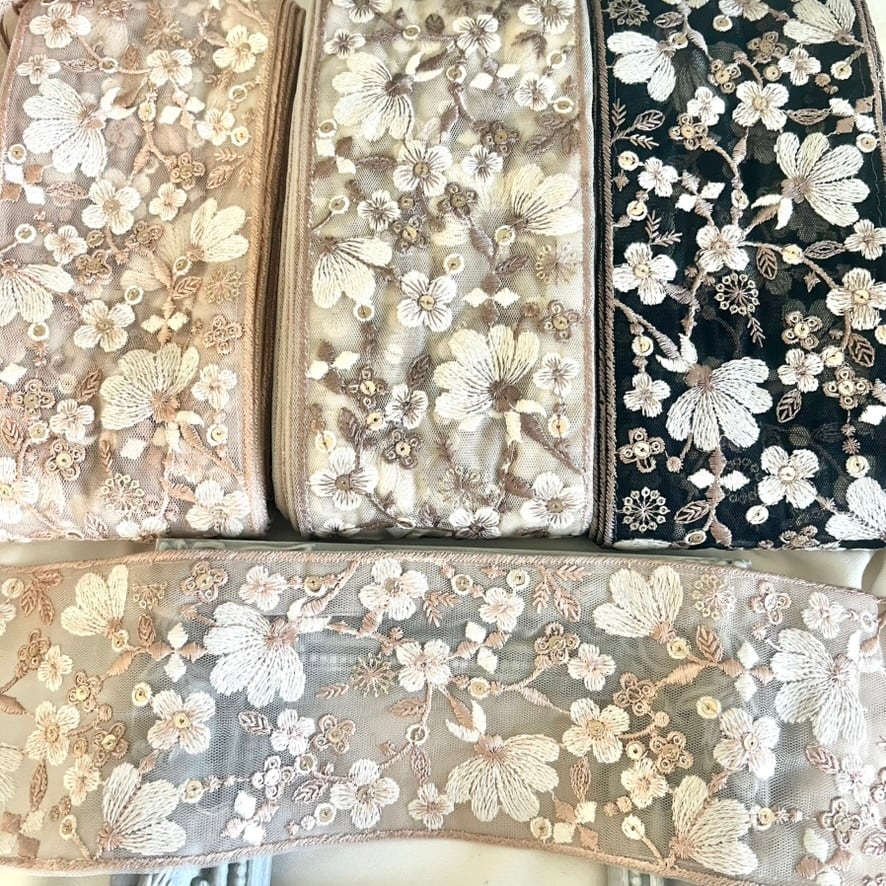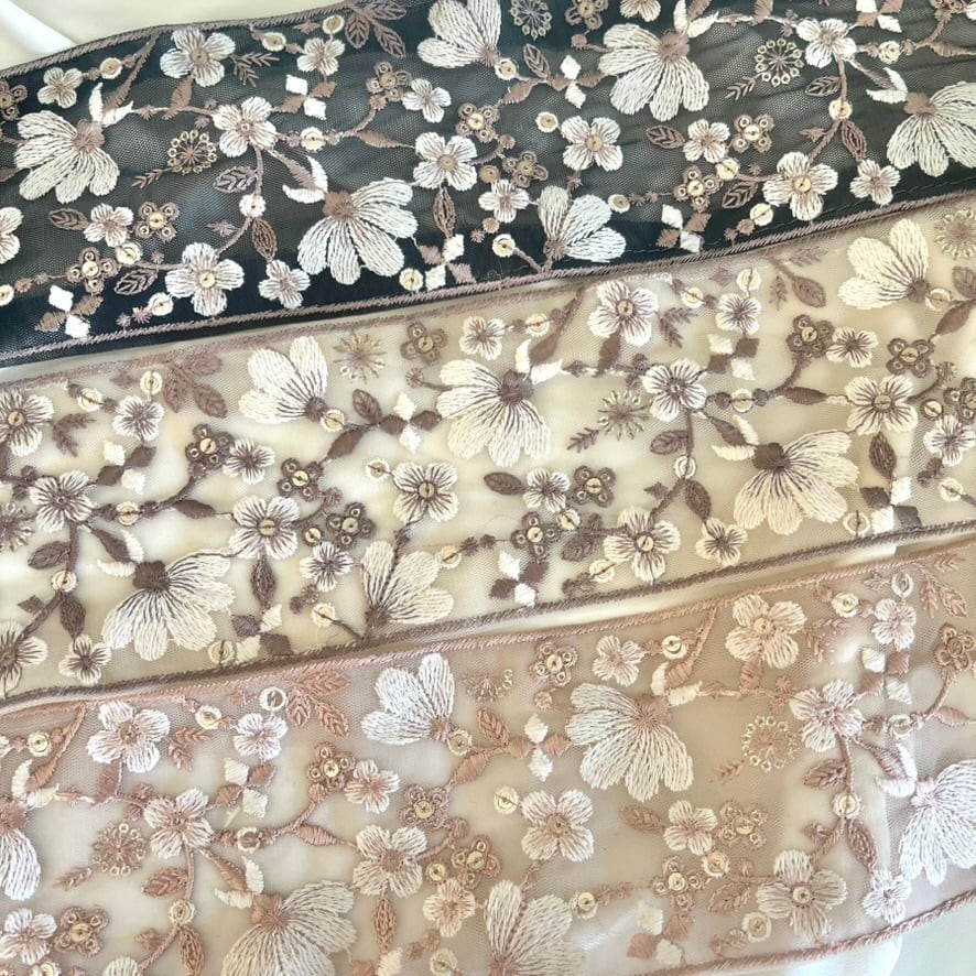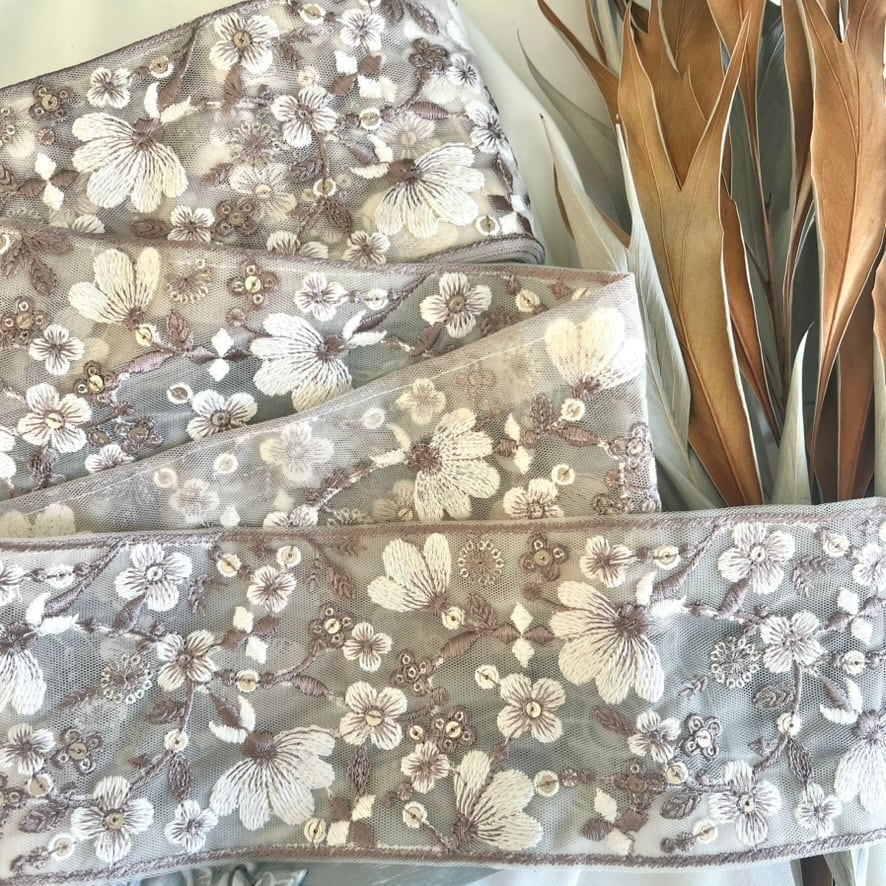 50cm インド刺繍リボン チュール 花柄 #wt35