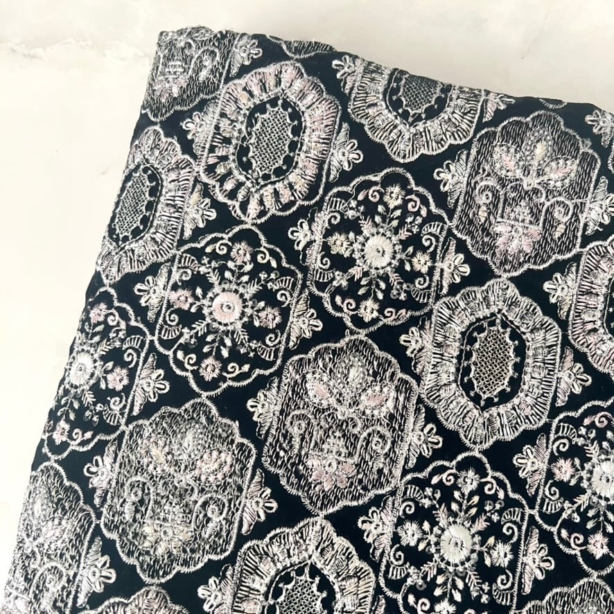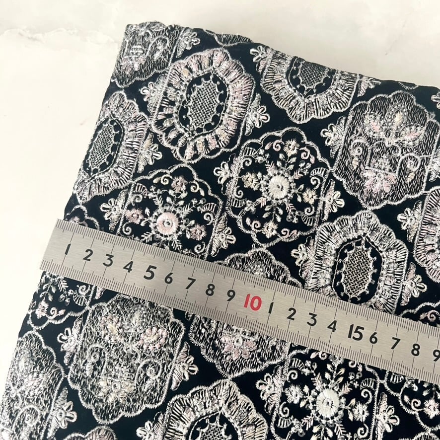 108cm×50cm インド刺繍生地 ブラック