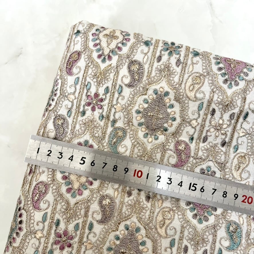 108cm×50cm インド刺繍生地 ホワイト