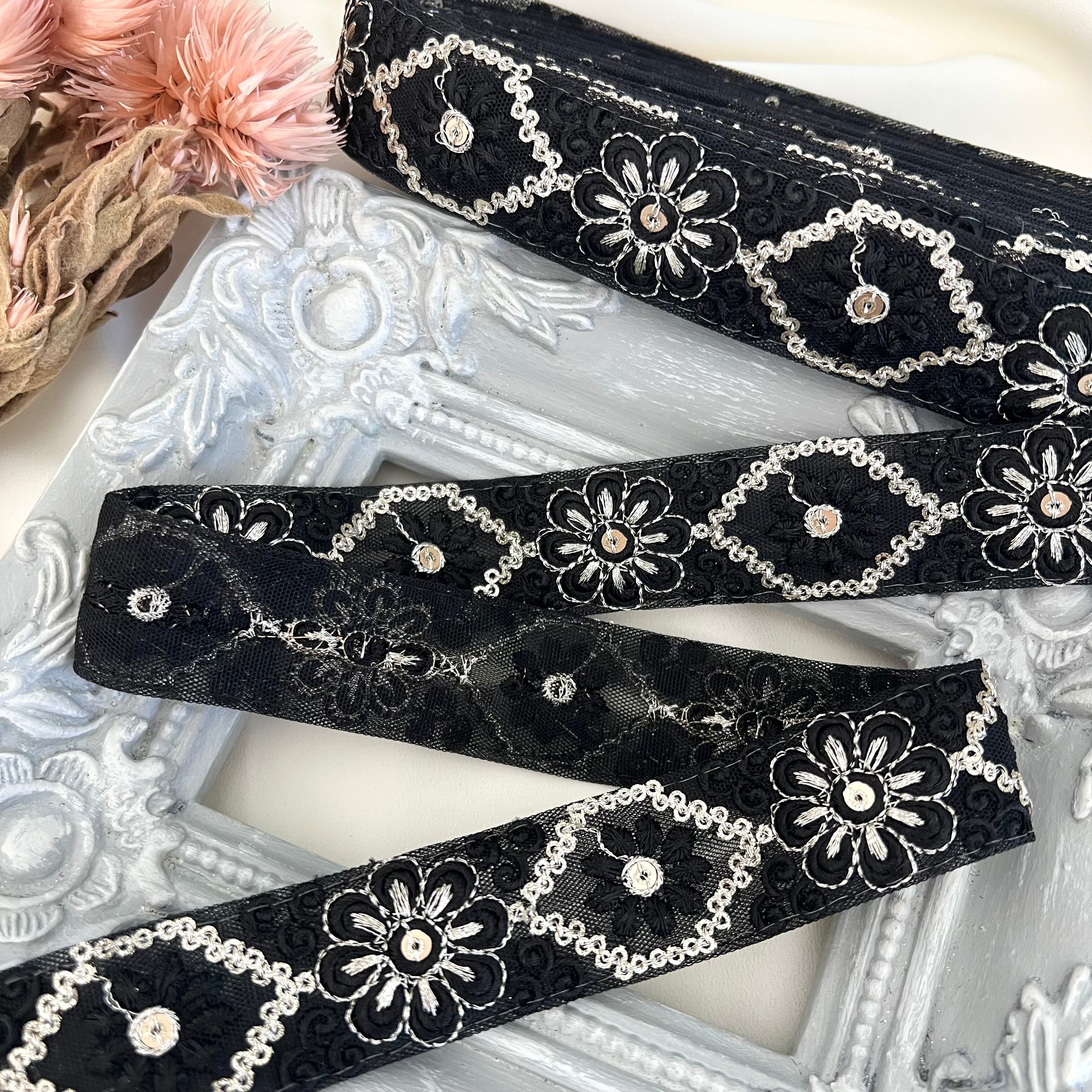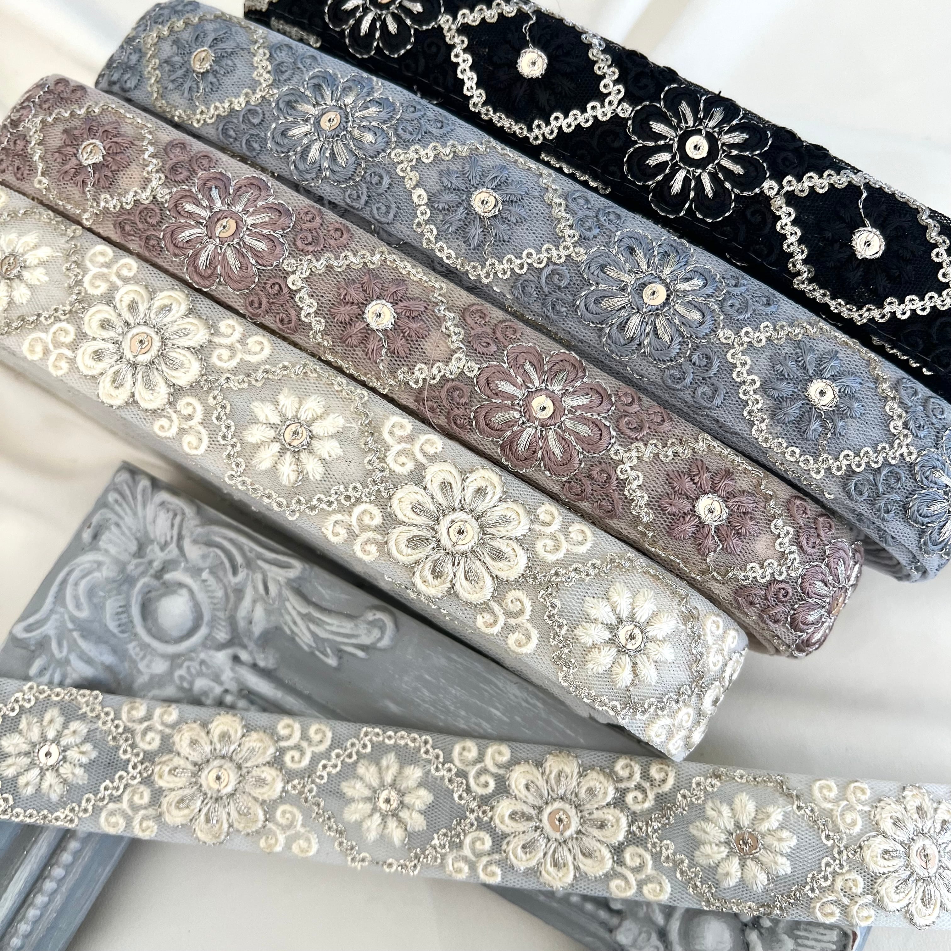 50cm インド刺繍リボン チュール 花柄 #n2t40