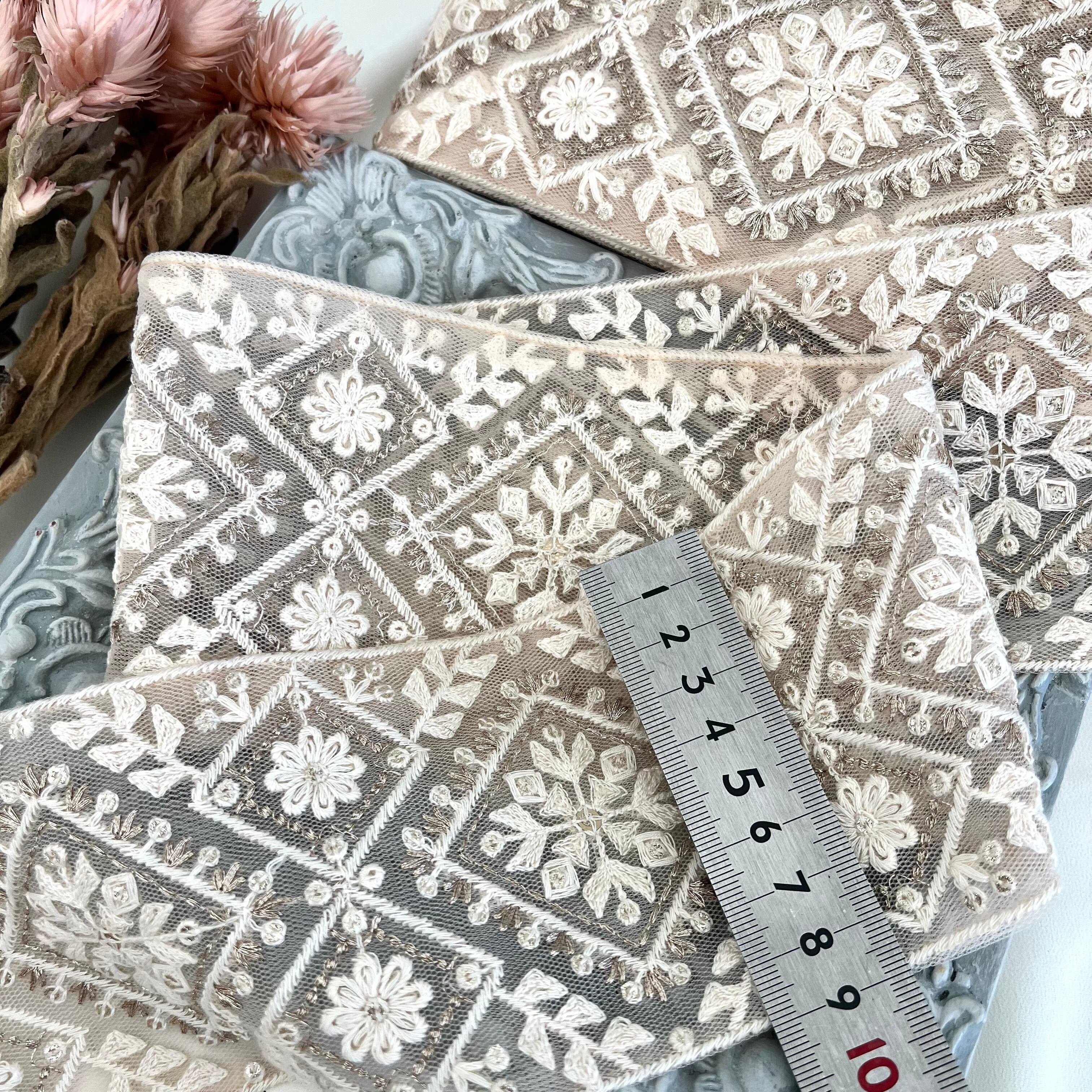 50cm インド刺繍リボン チュール ひし形柄 #sr44