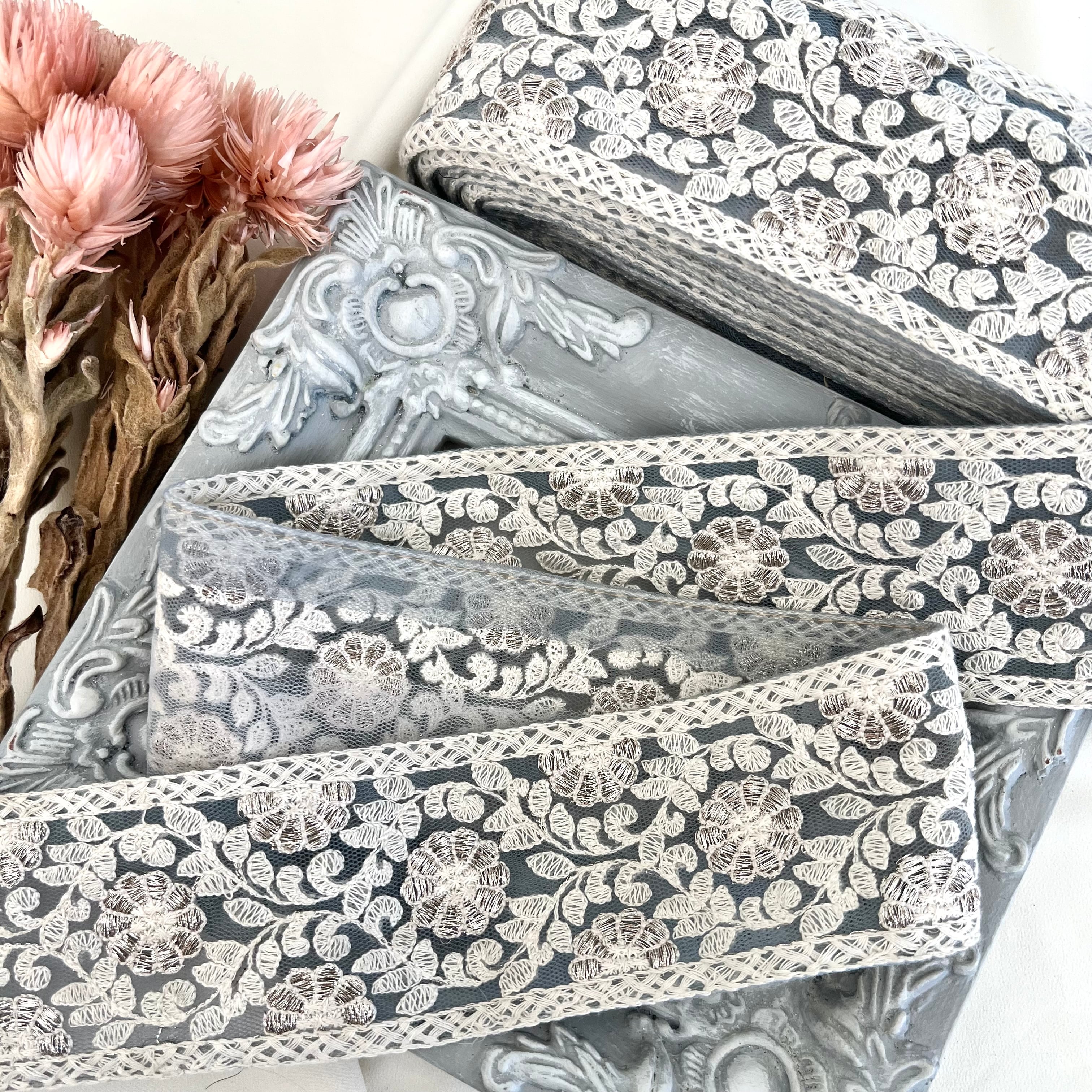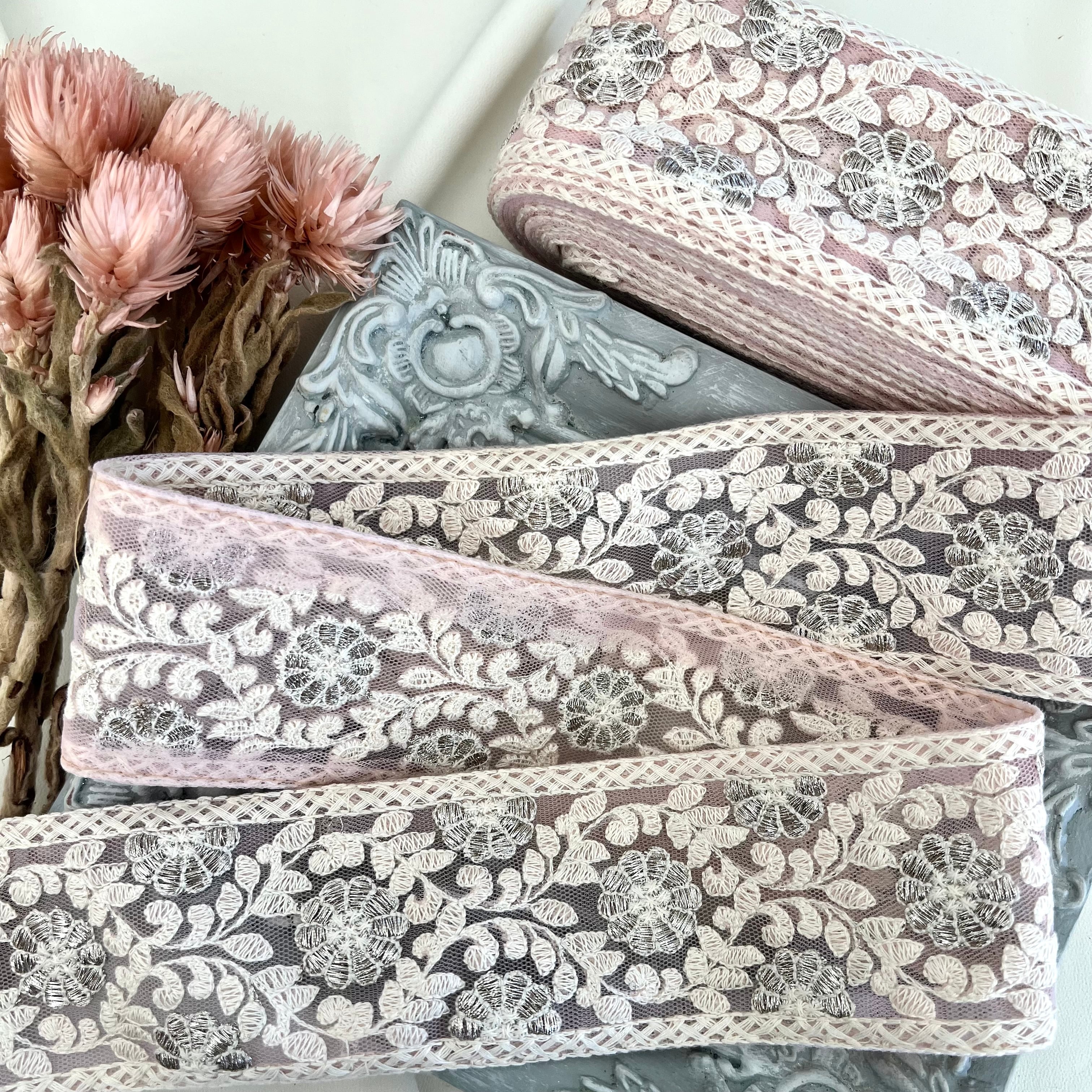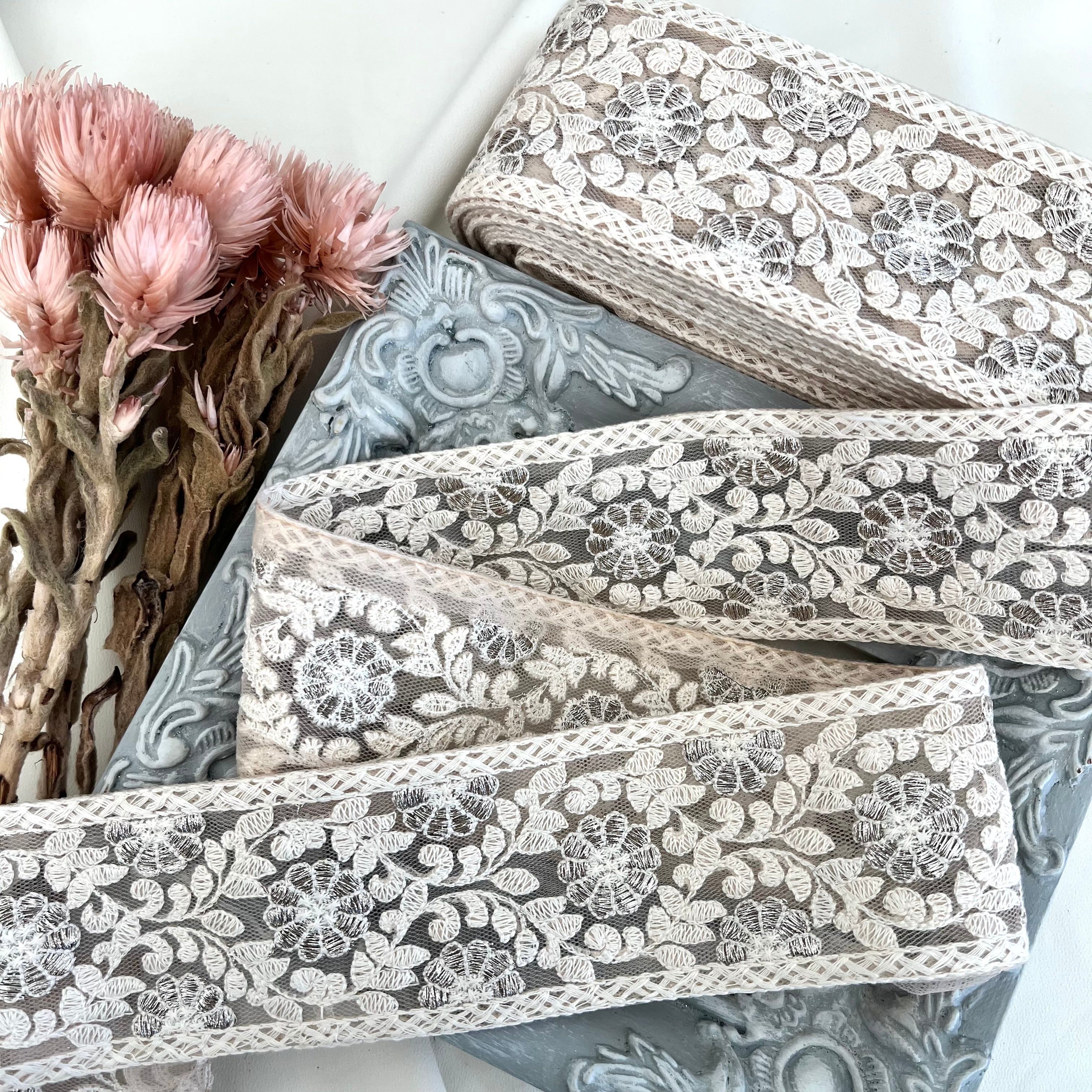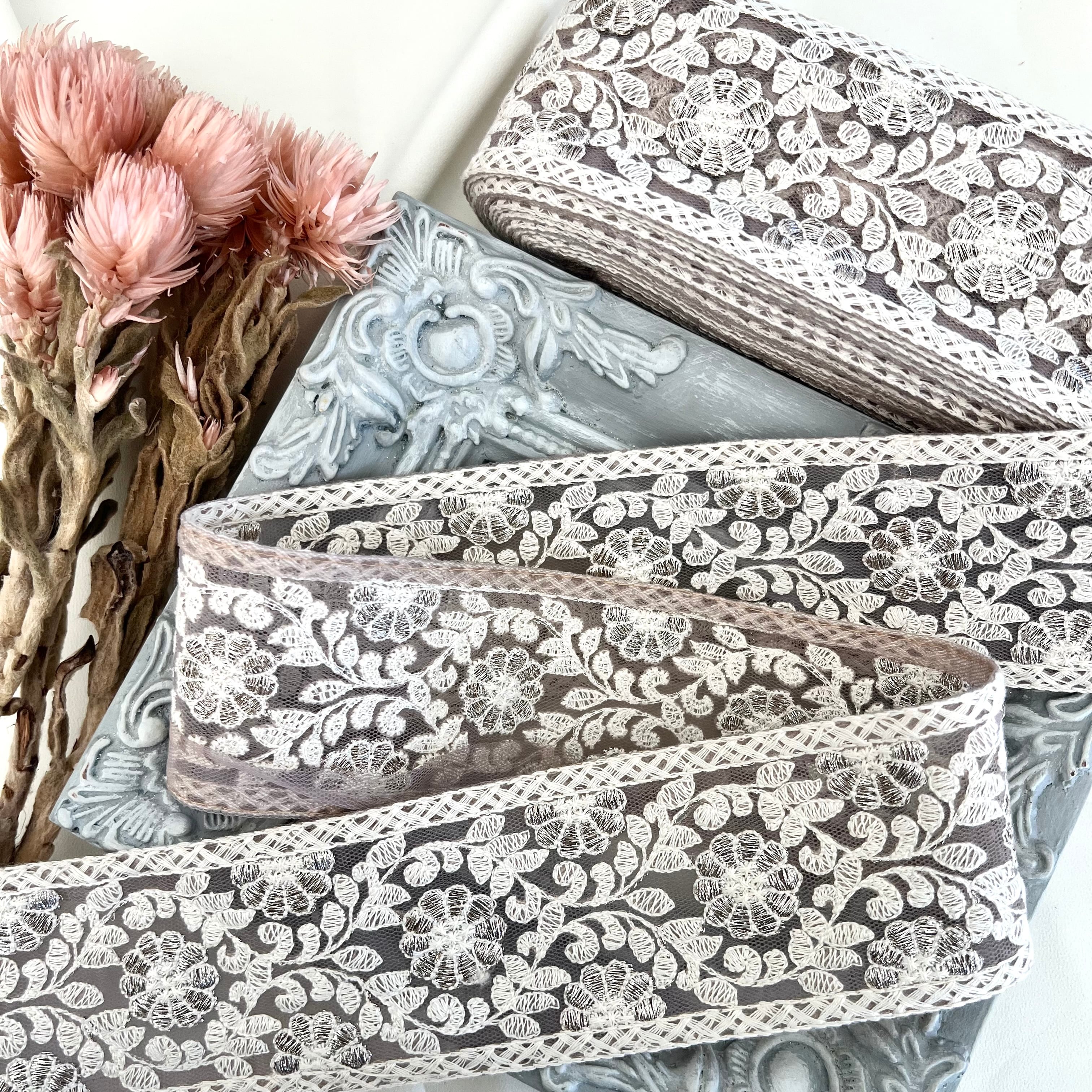 50cm インド刺繍リボン チュール 花柄 #mt70