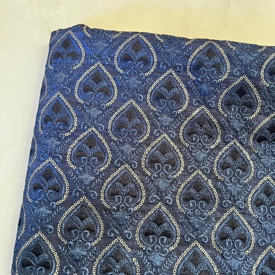 118cm×50cm インド刺繍生地 ネイビー