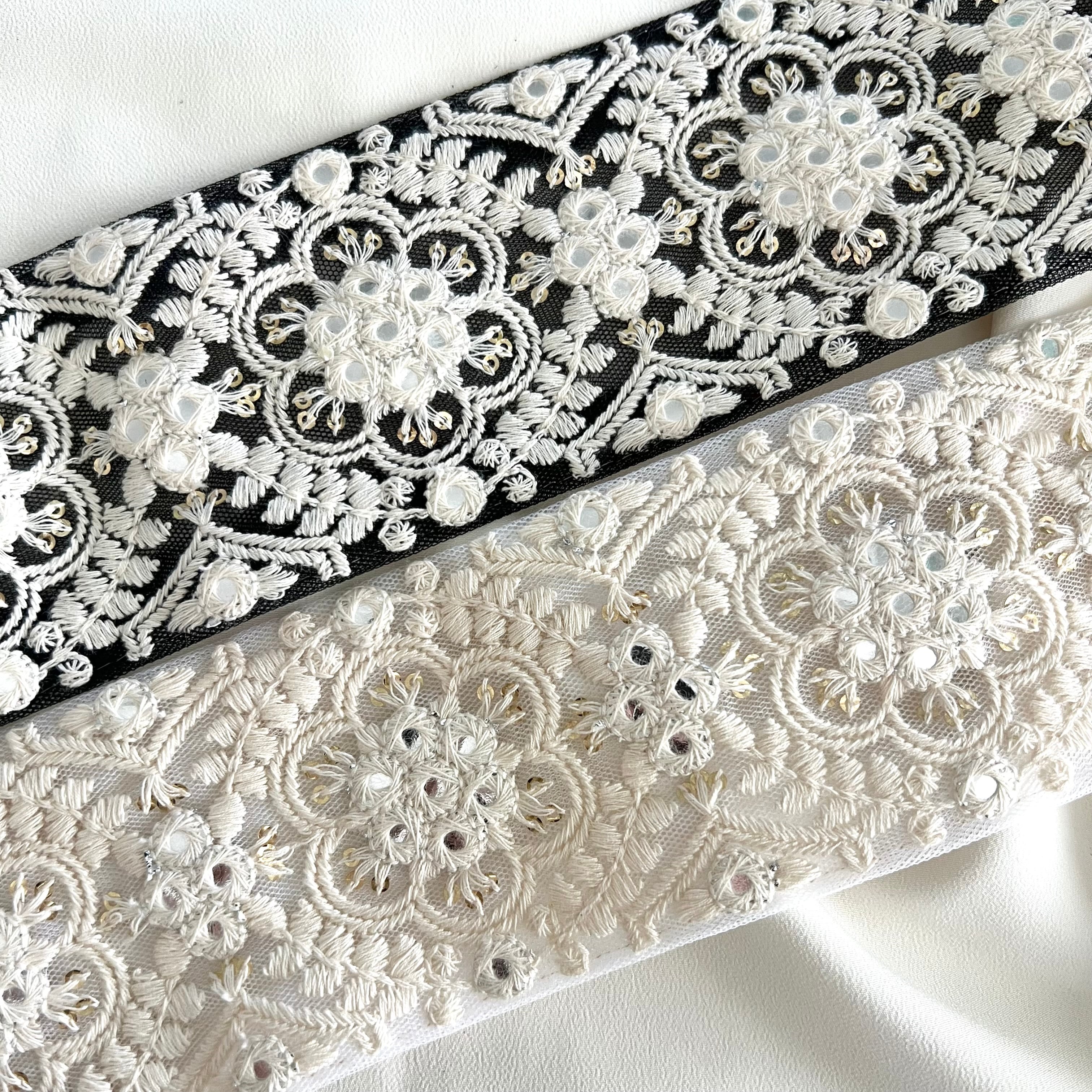 50cm インド刺繍リボン チュール 花柄 #sr45