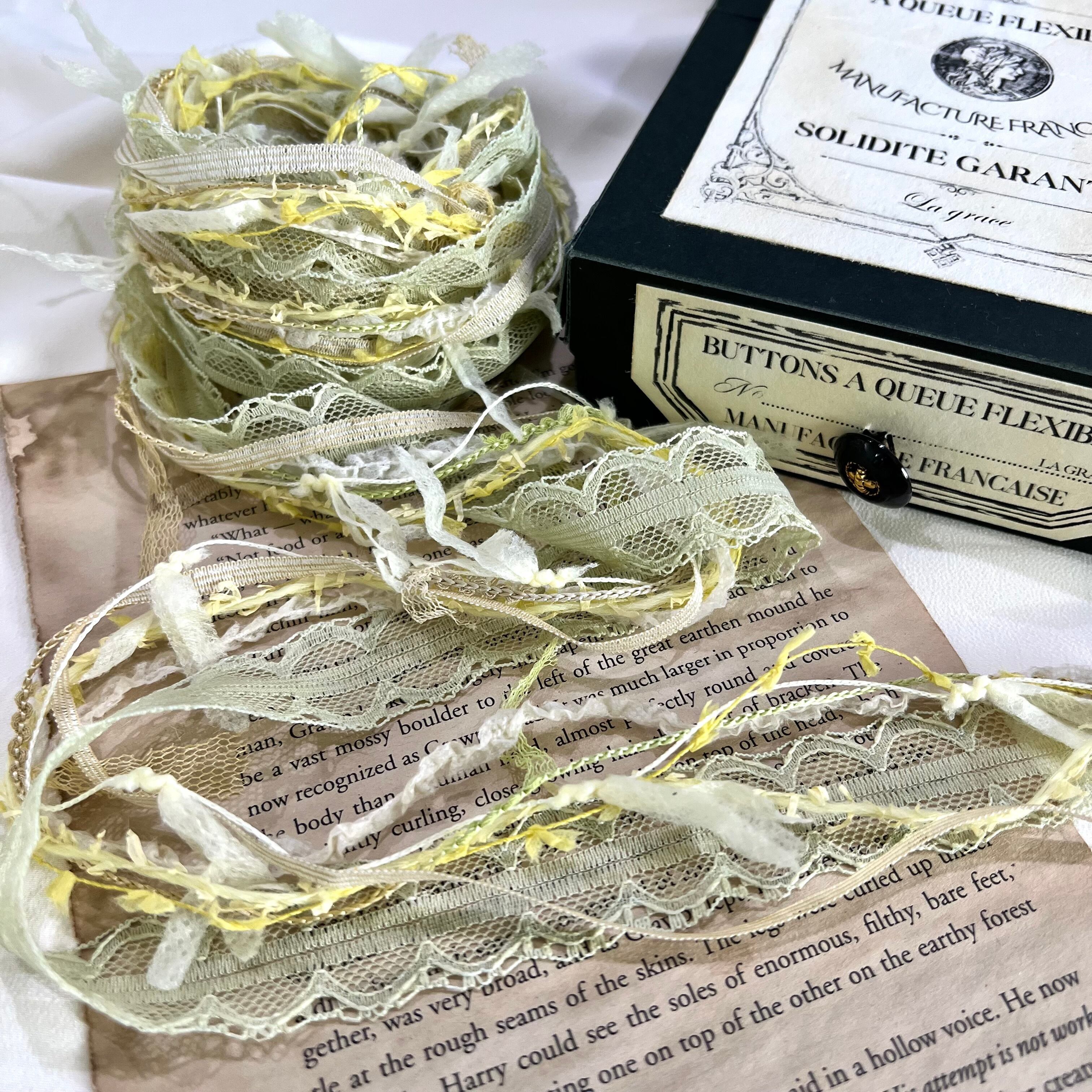 レースリボンと6本のファンシーヤーンを使った引き揃えリボン♡