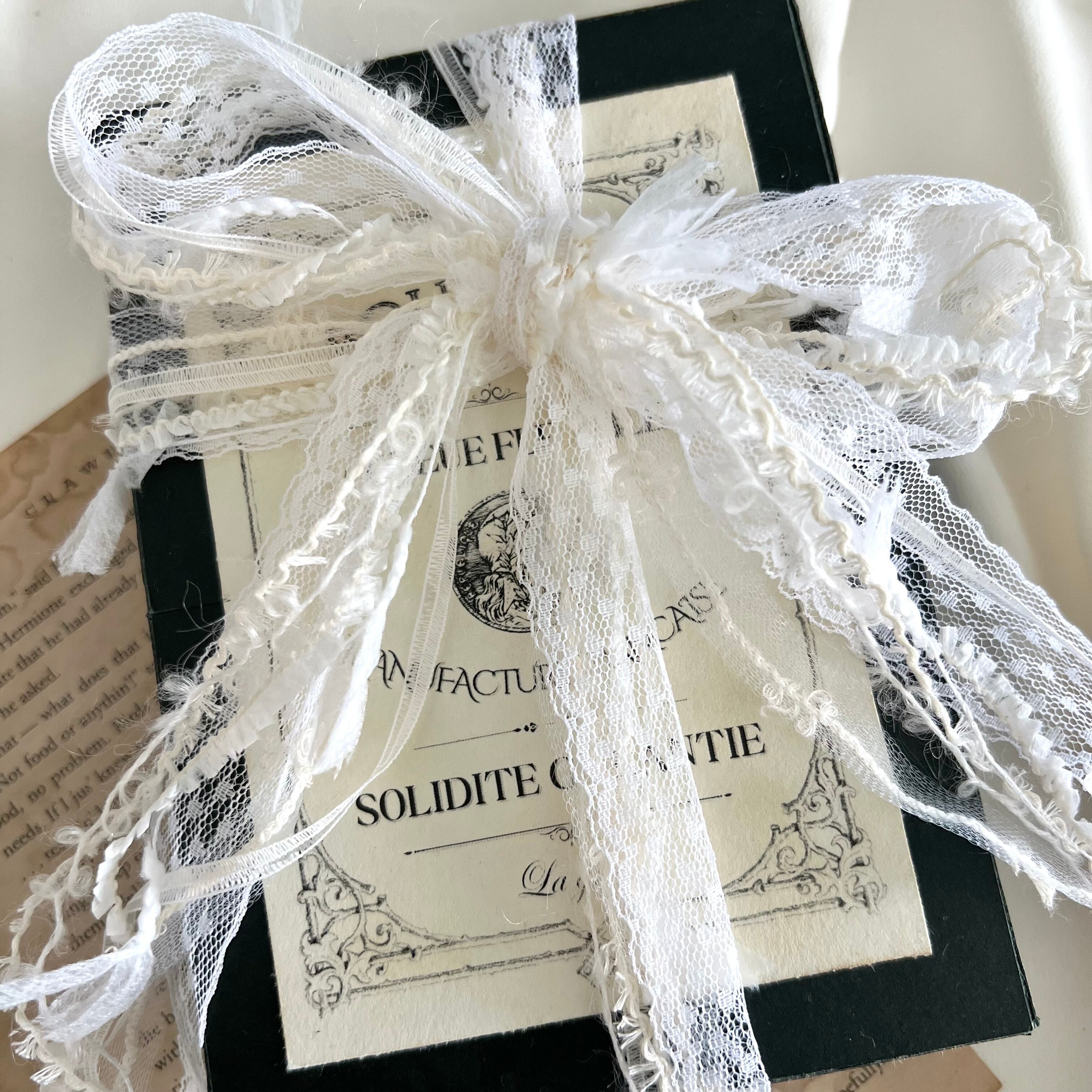 レースリボンと6本のファンシーヤーンを使った引き揃えリボン♡