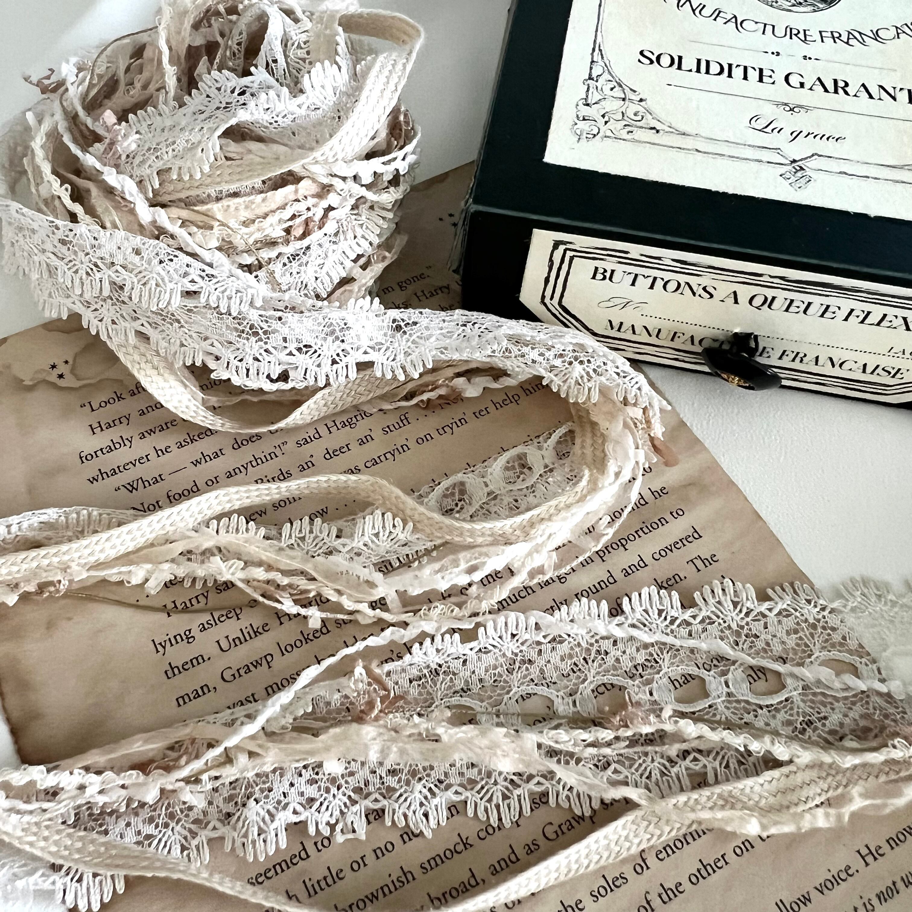 ミルクラテ色に染めたレースに添えた引き揃えリボン♡