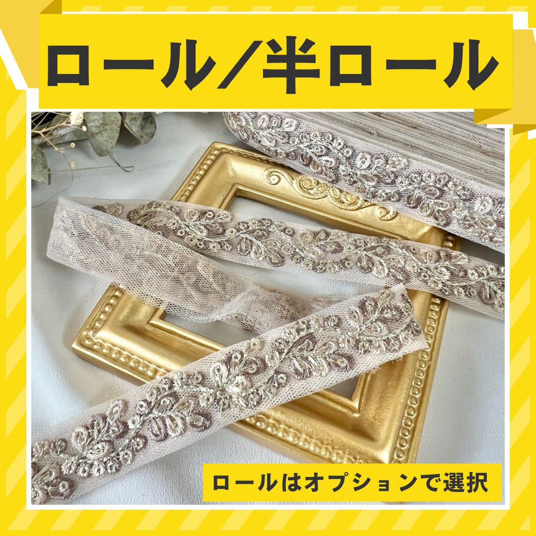 【半ロール/ロール販売】インド刺繍リボン チュール ブラウンベージュ 作家様応援価格 rnt1