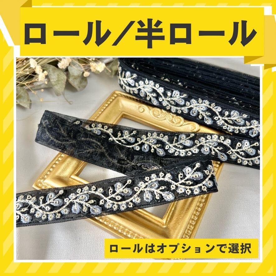 【半ロール/ロール販売】インド刺繍リボン チュール ブラック 作家様応援価格 rnt1