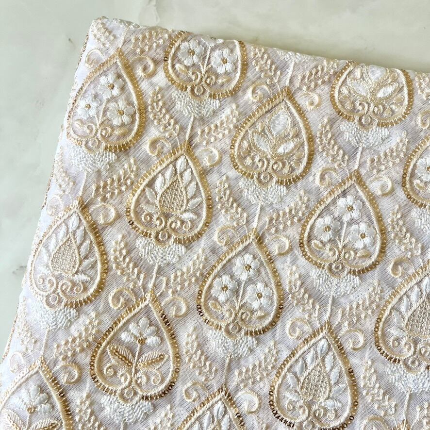 112cm×50cm インド刺繍生地 ホワイト