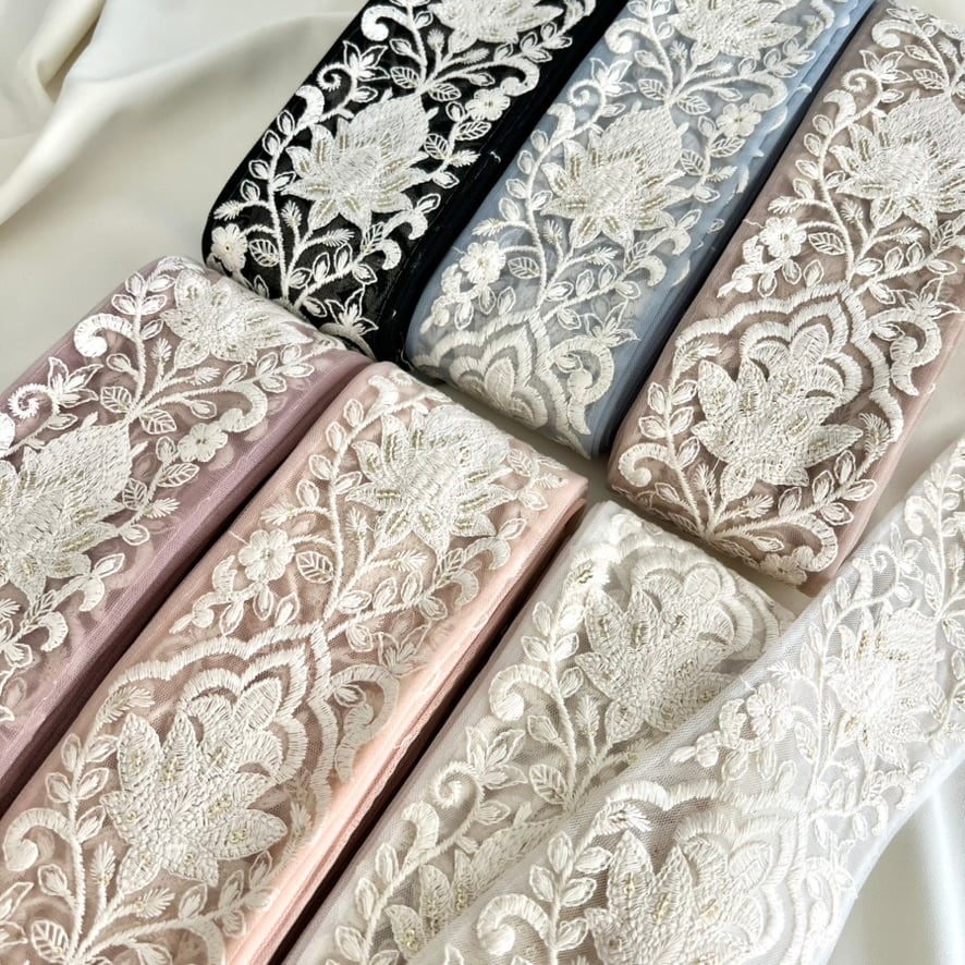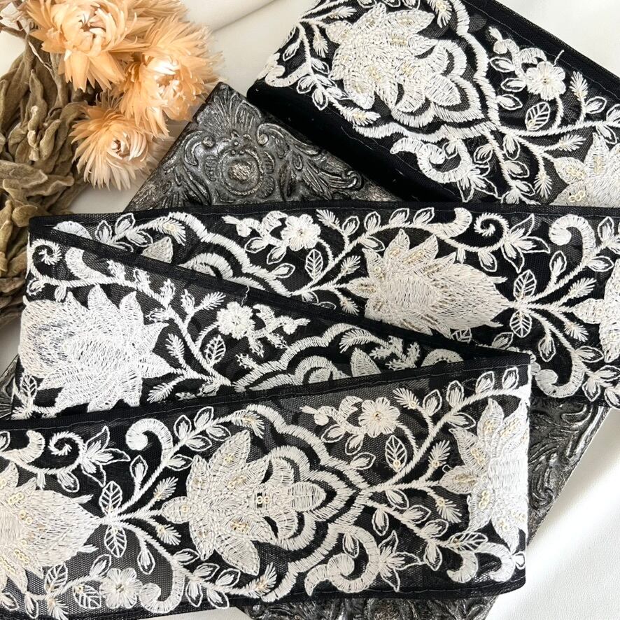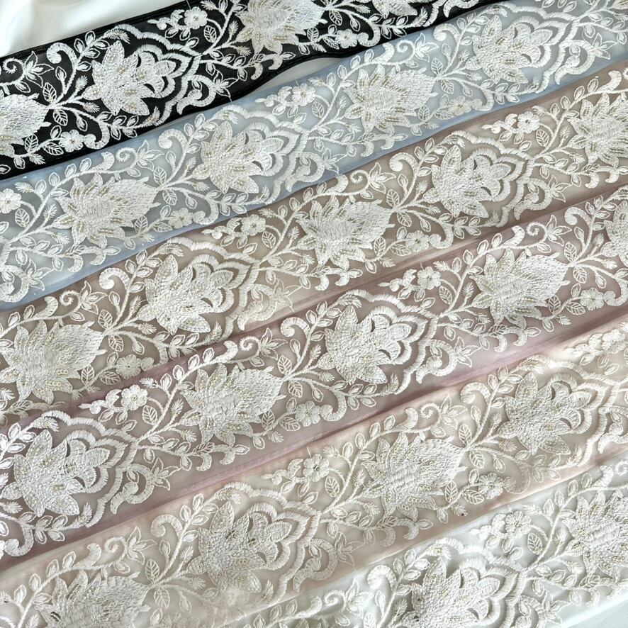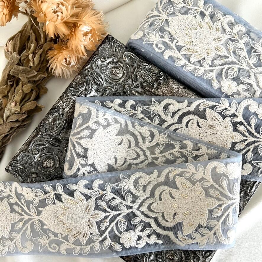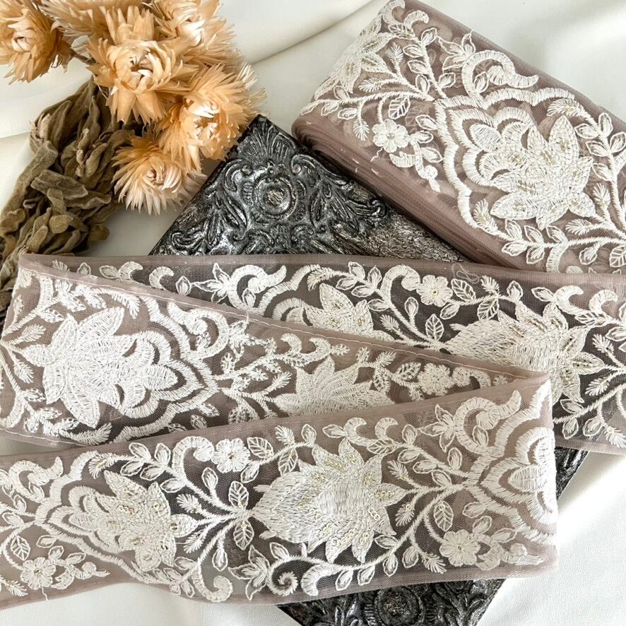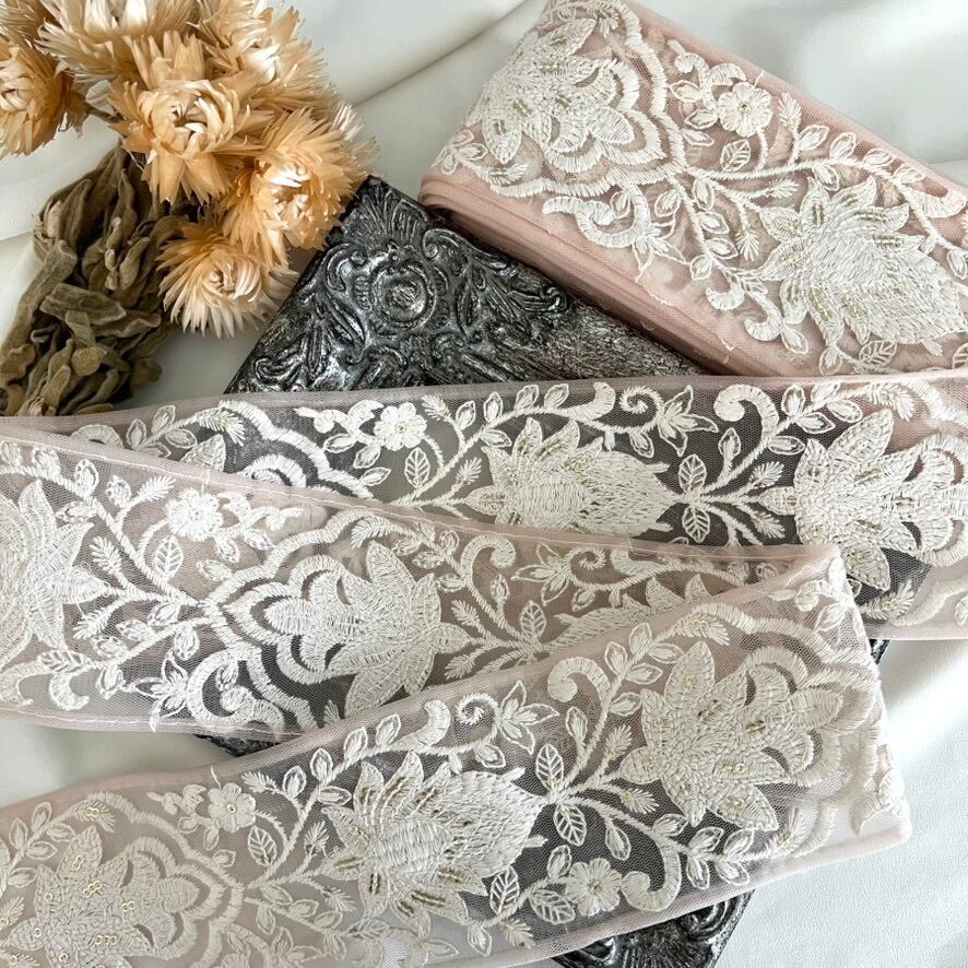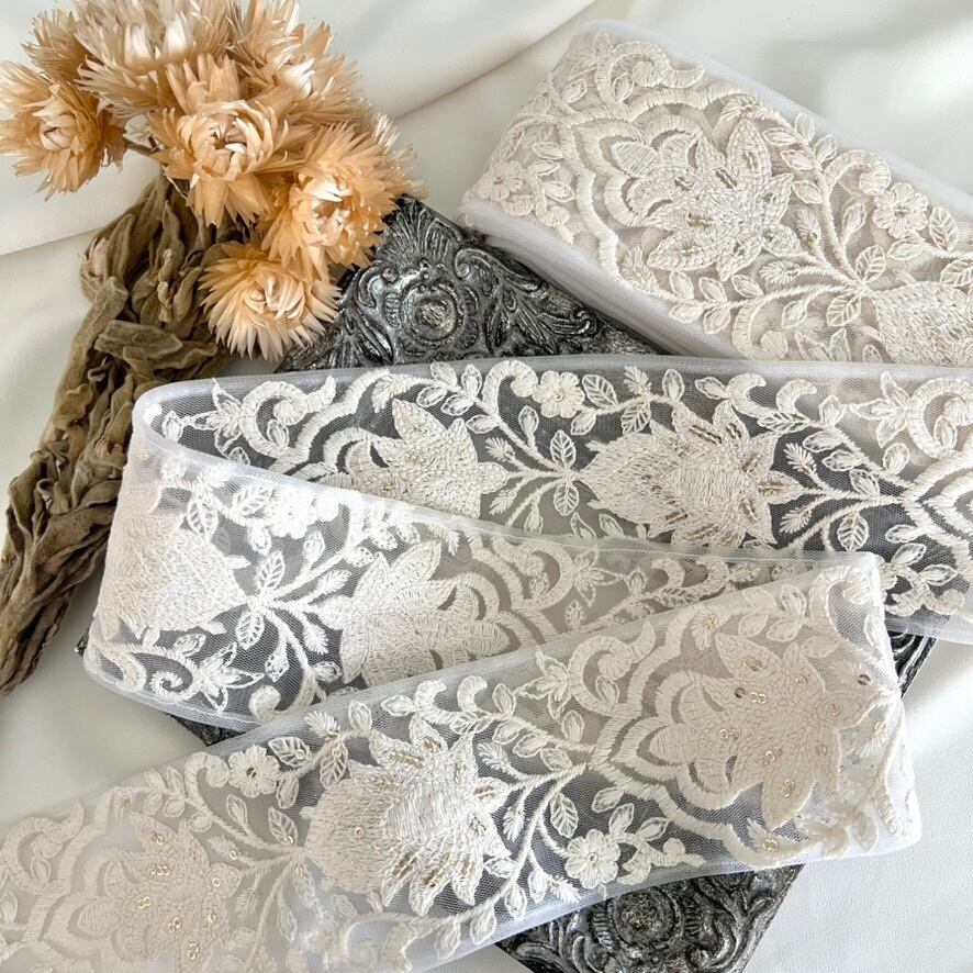 50cm インド刺繍リボン チュール 花柄 #mt72