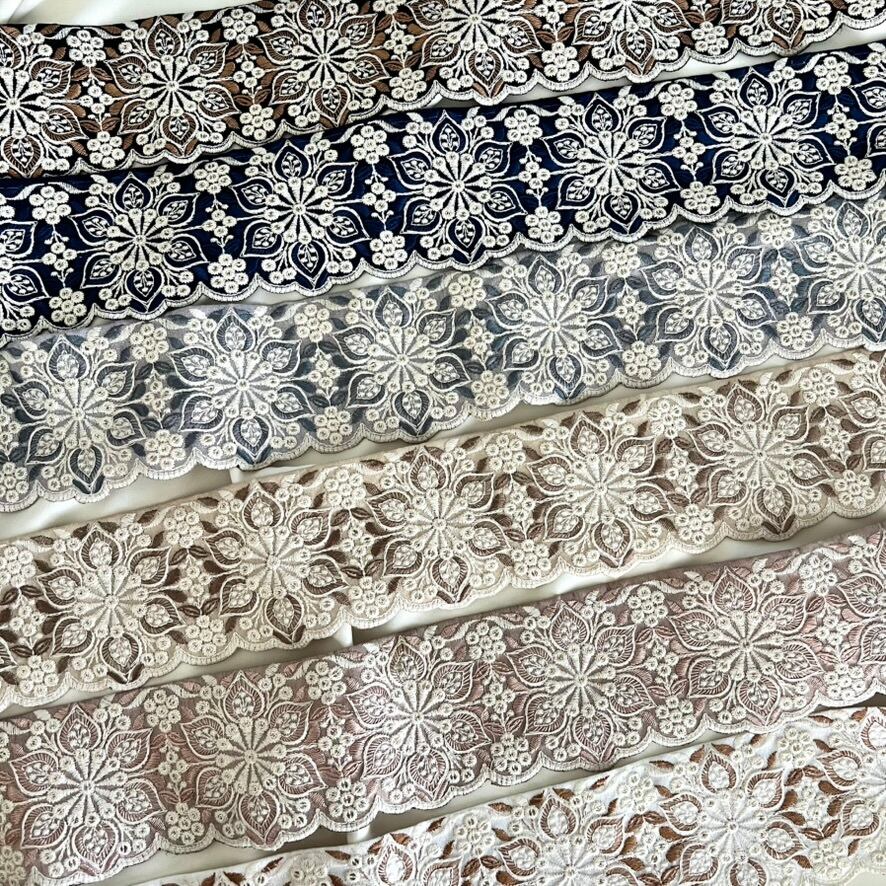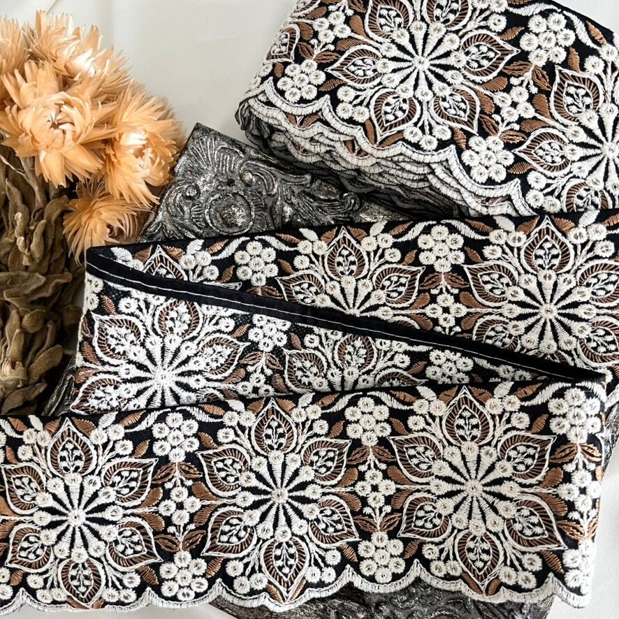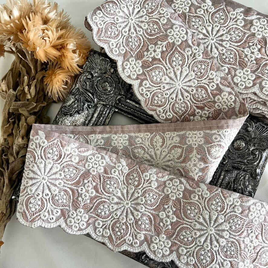 50cm インド刺繍リボン チュール 花柄 #sm33