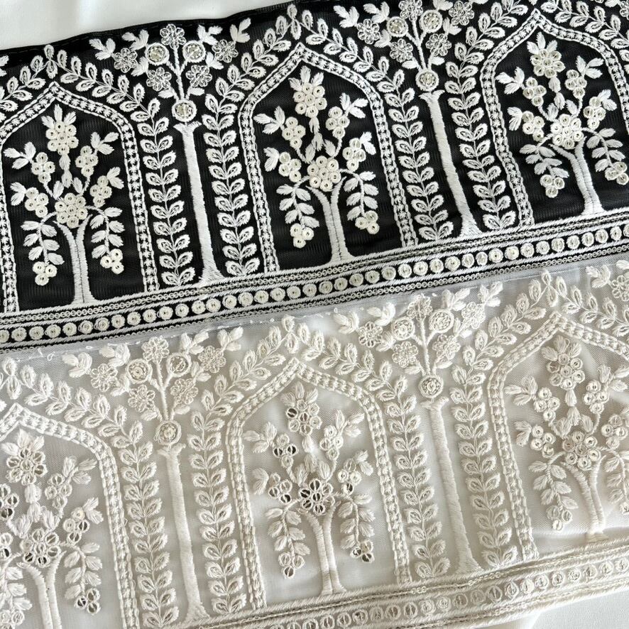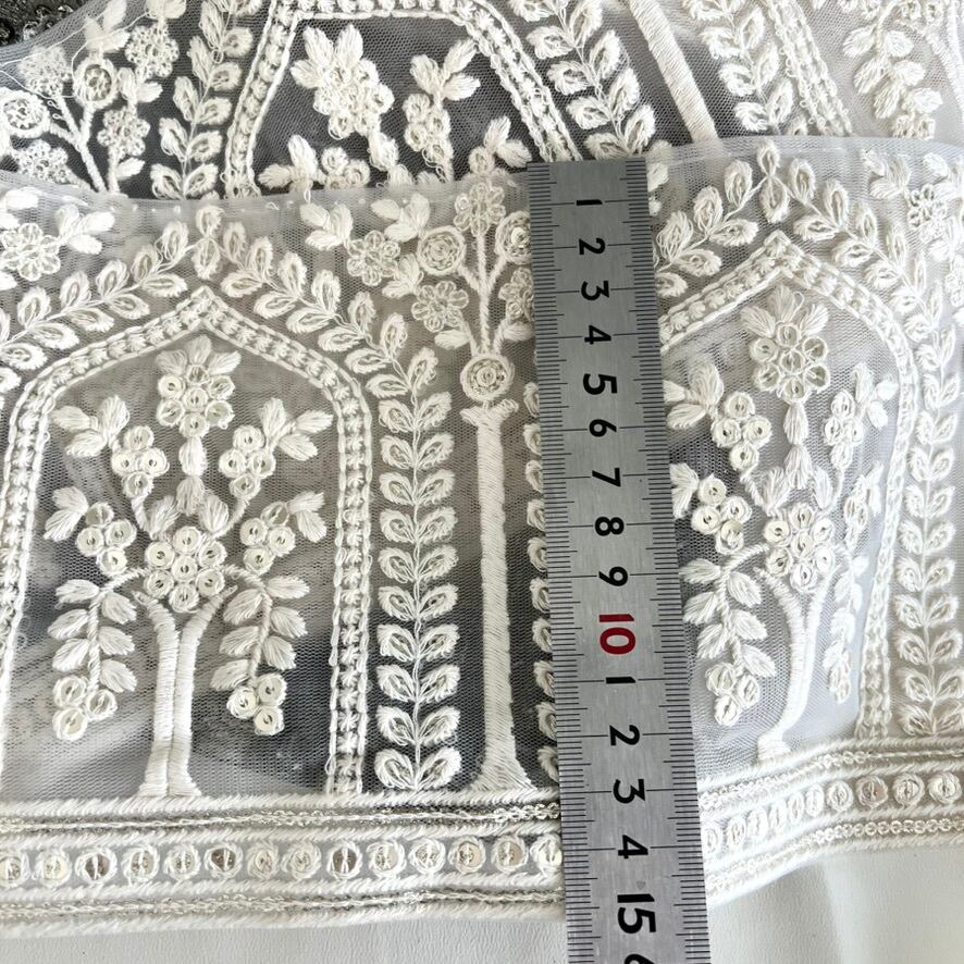 30cm インド刺繍リボン チュール 花柄 #wt36