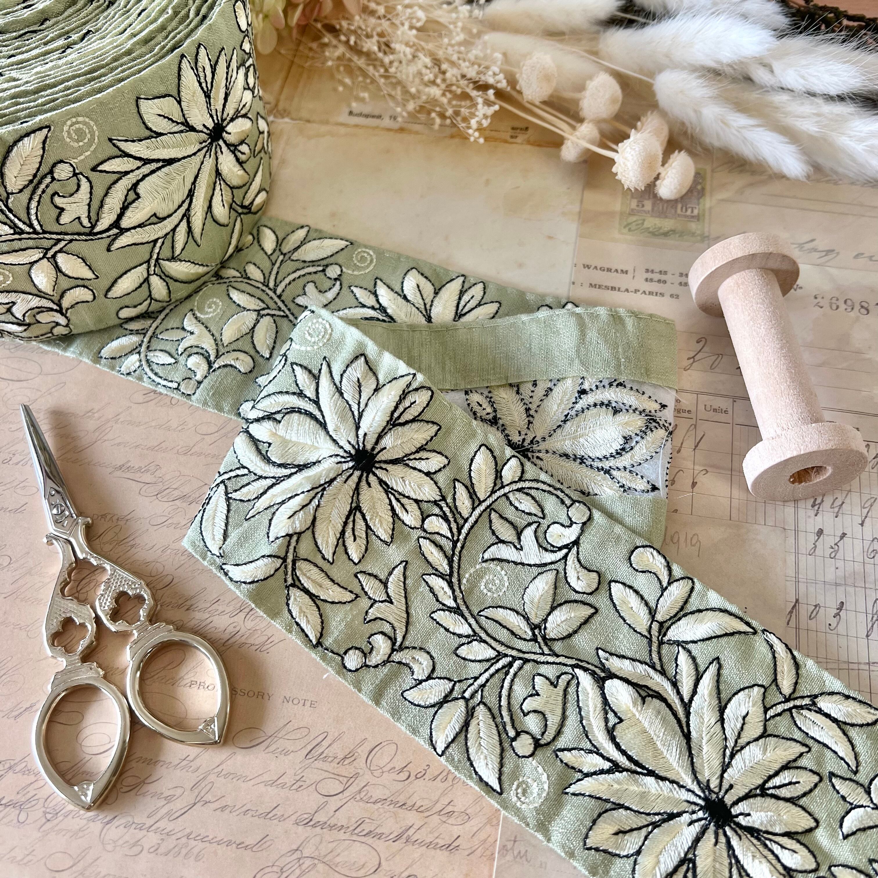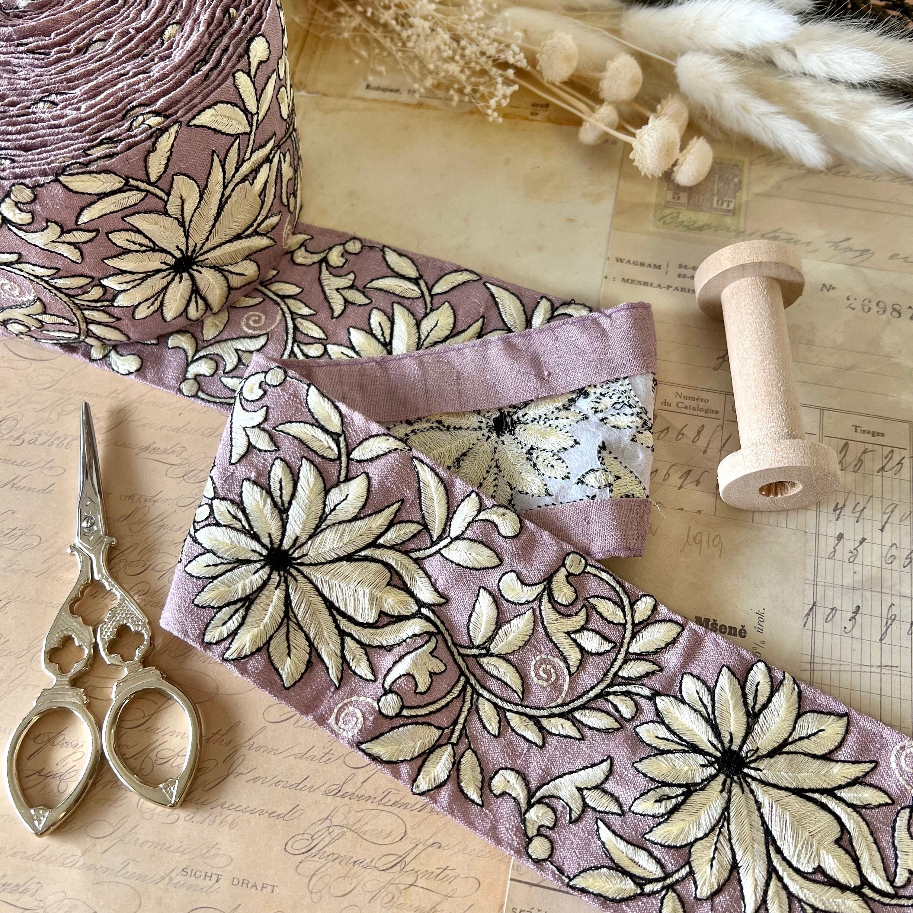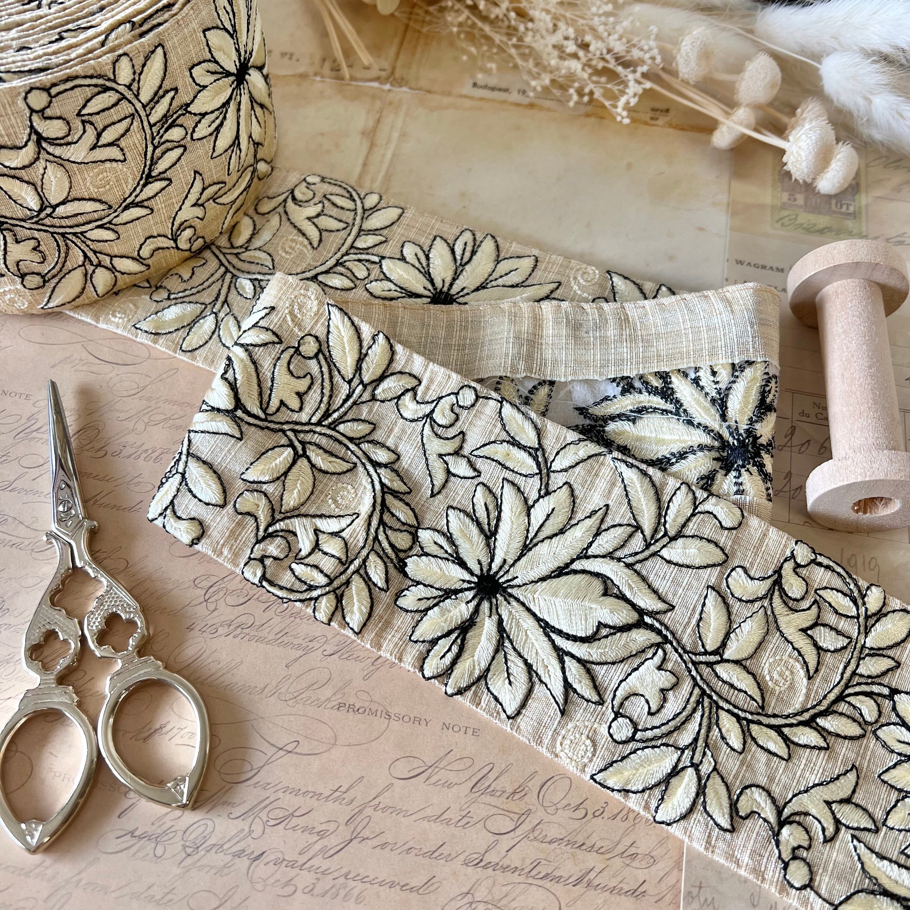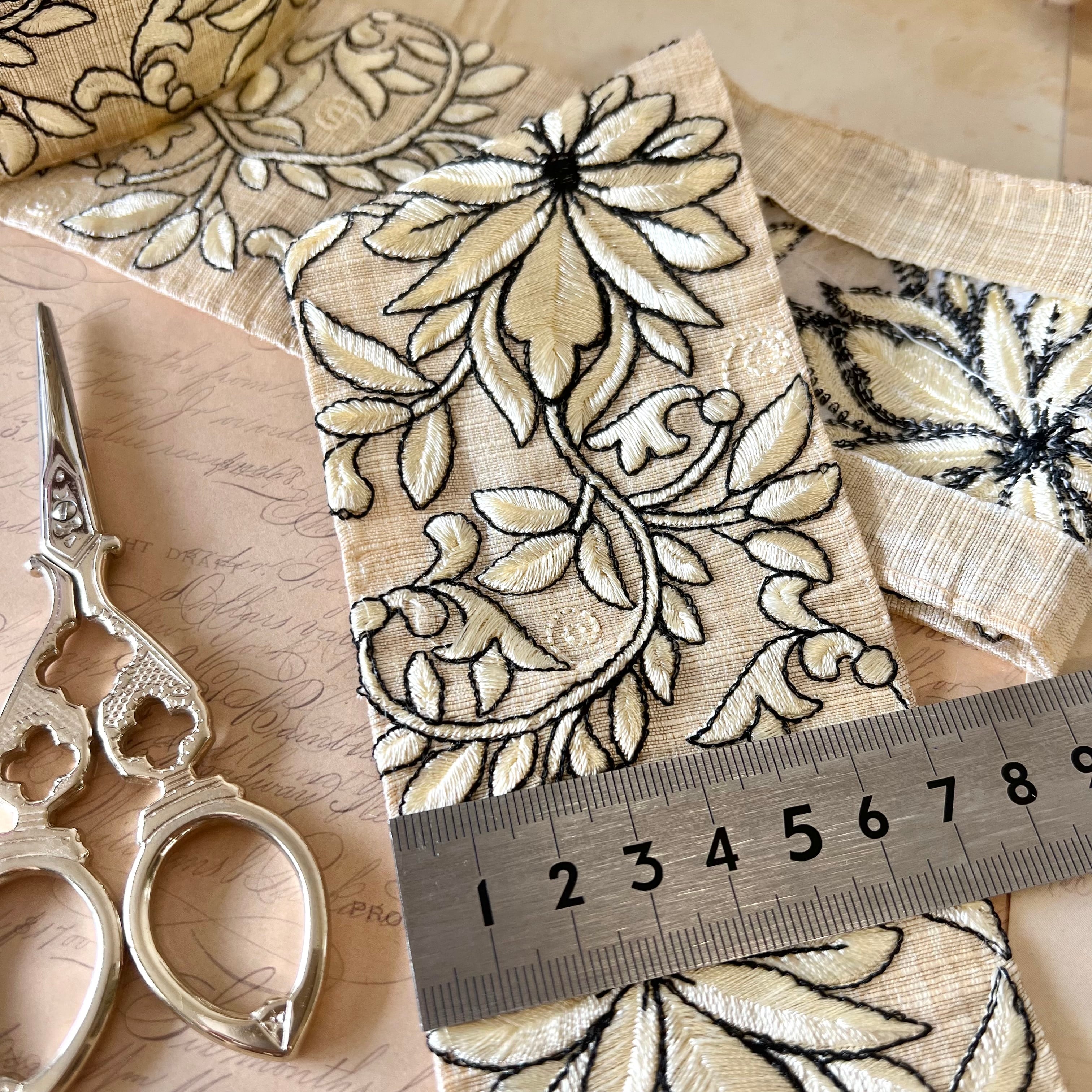 30cm インド刺繍リボン シルク 草花柄 #ws8