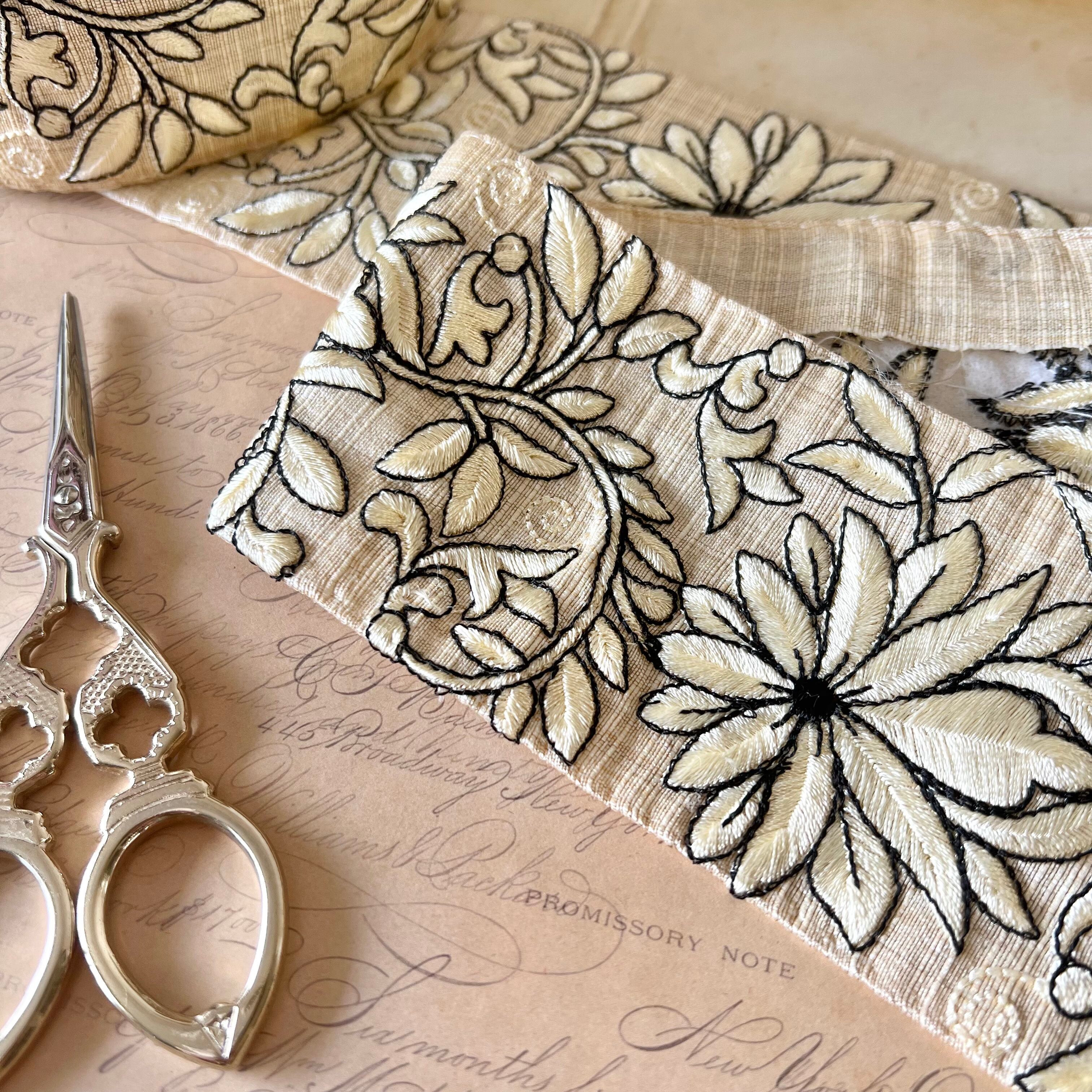 50cm インド刺繍リボン シルク 草花柄 #ws8