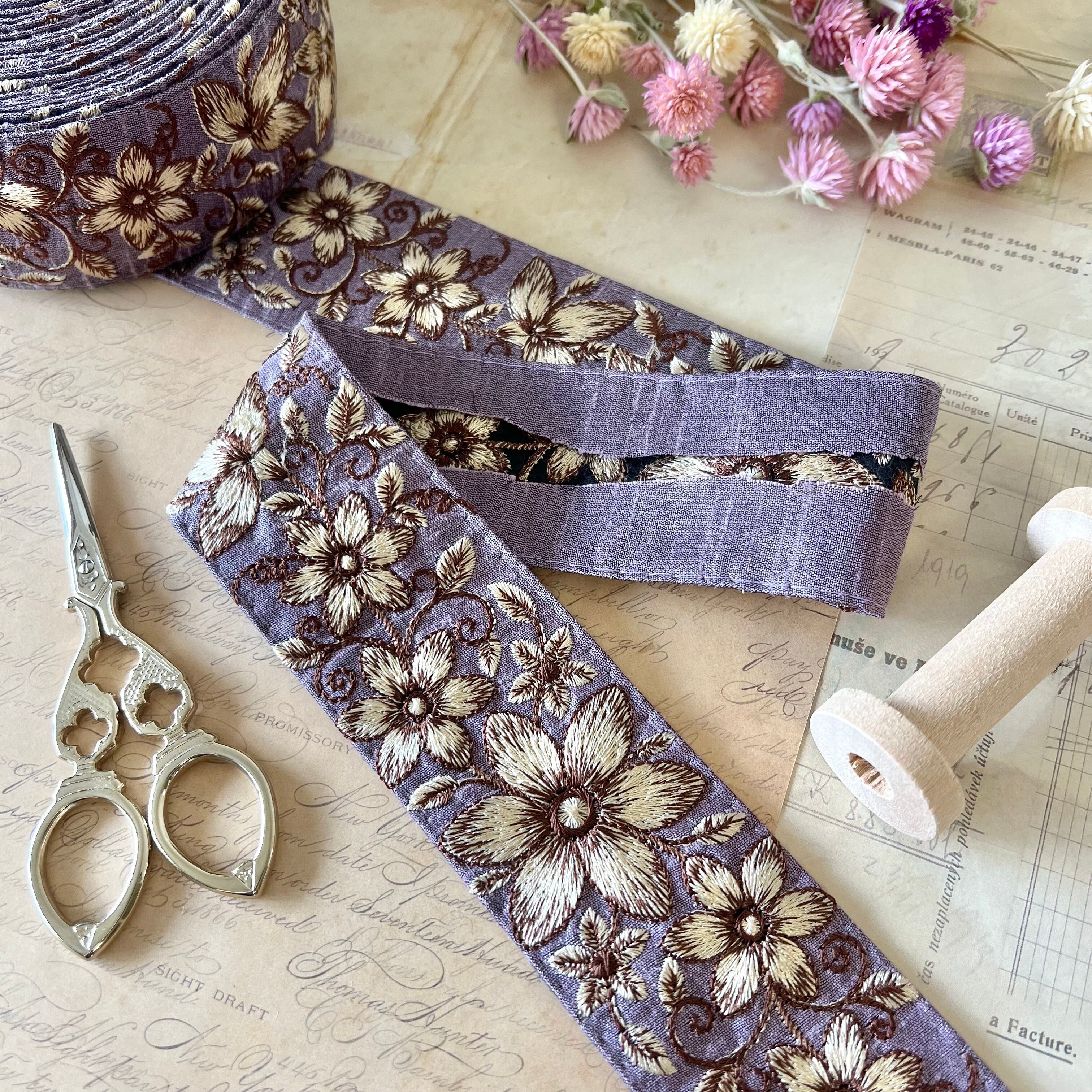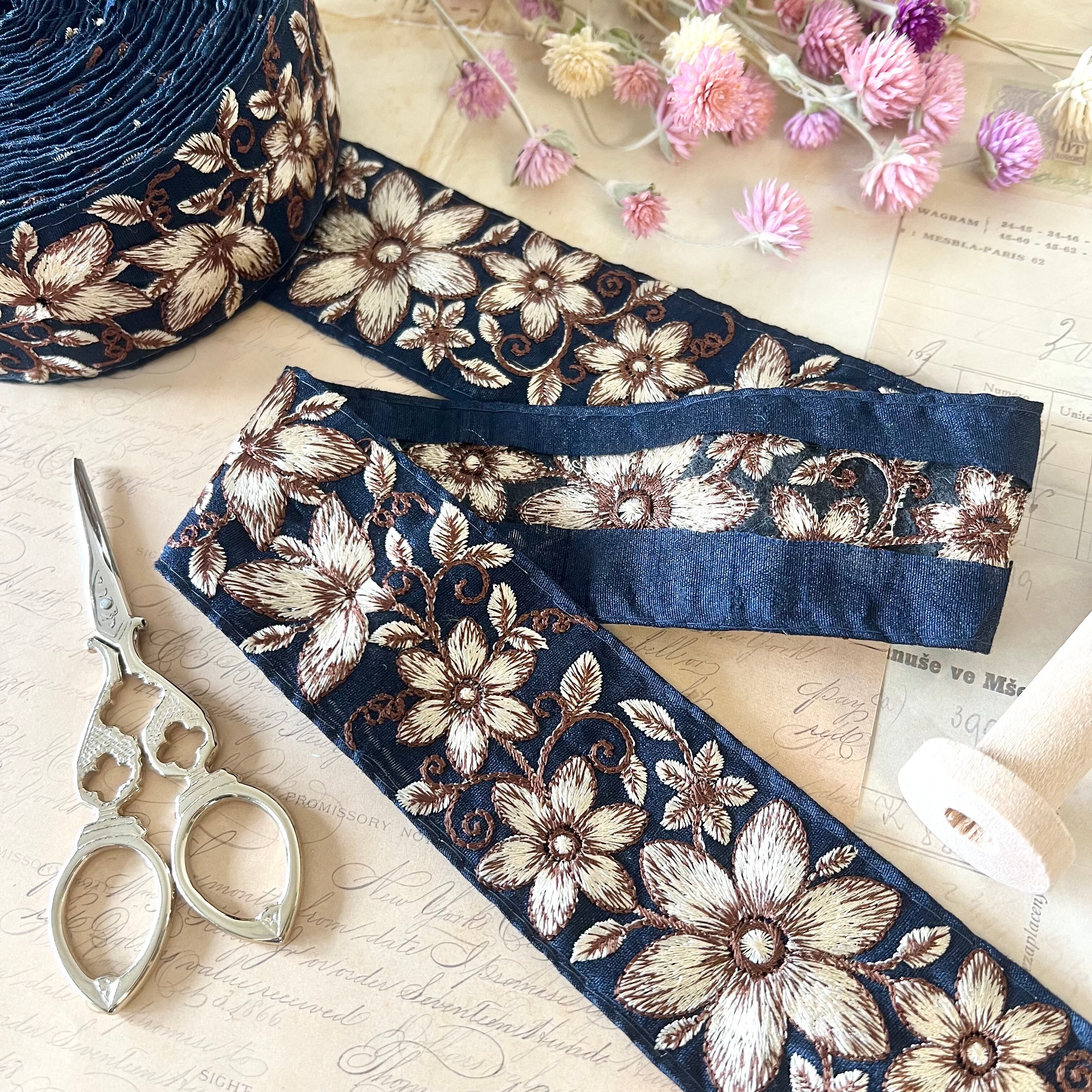 50cm インド刺繍リボン シルク 花柄 #ms13
