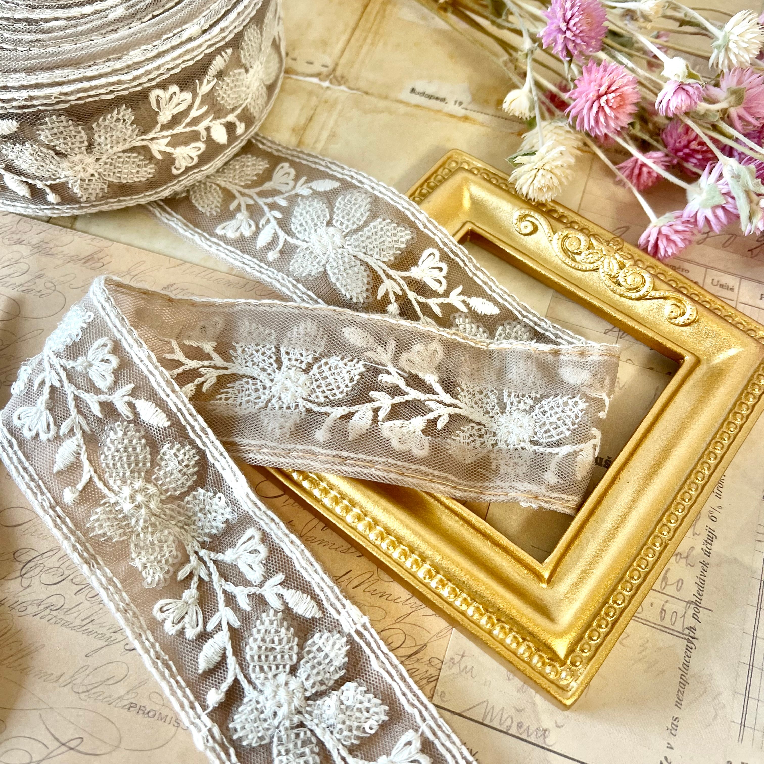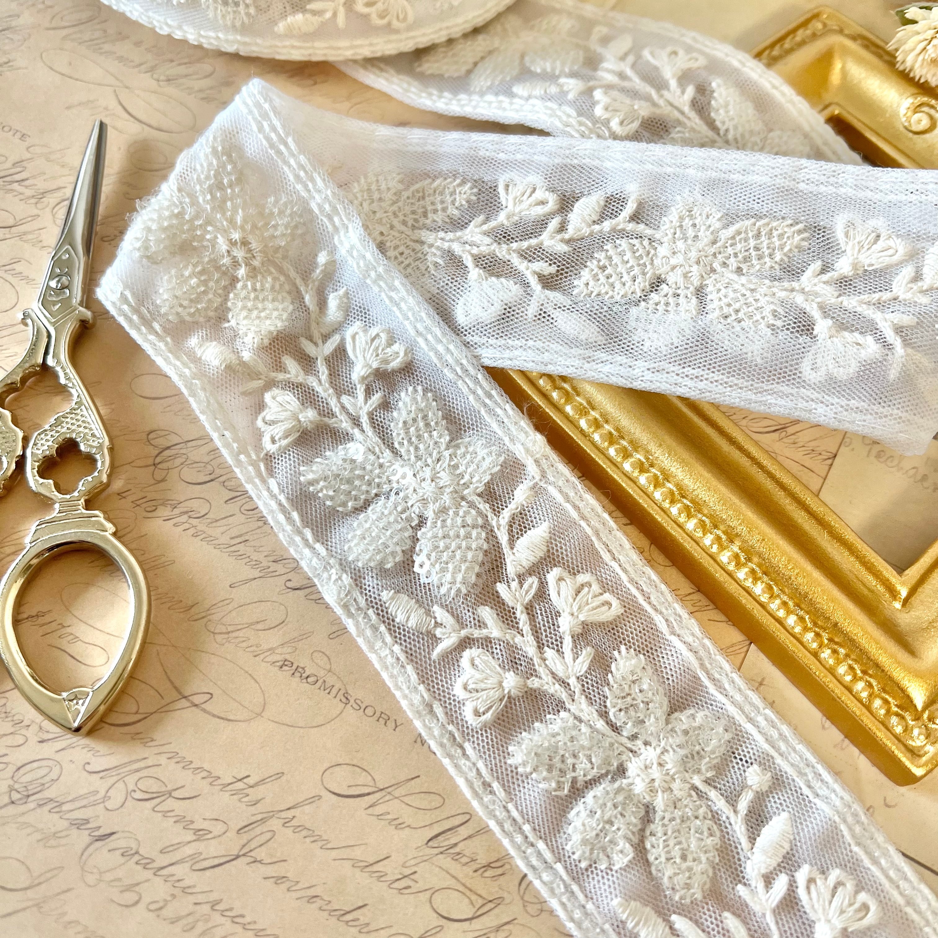 50cm インド刺繍リボン チュール 花柄 #mt9
