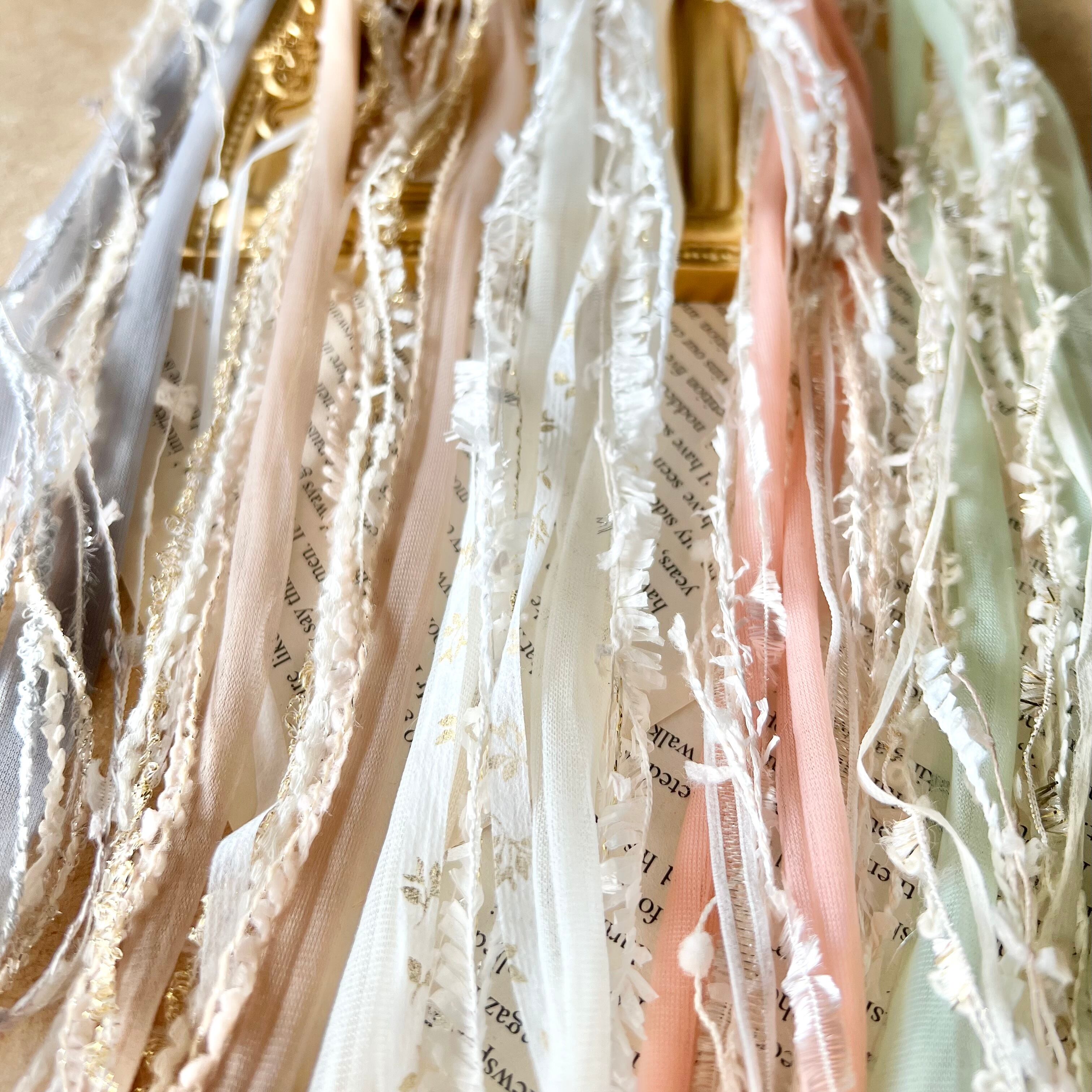 6本のファンシーヤーンと、チュールリボンを使ったリッチな引き揃え糸♡