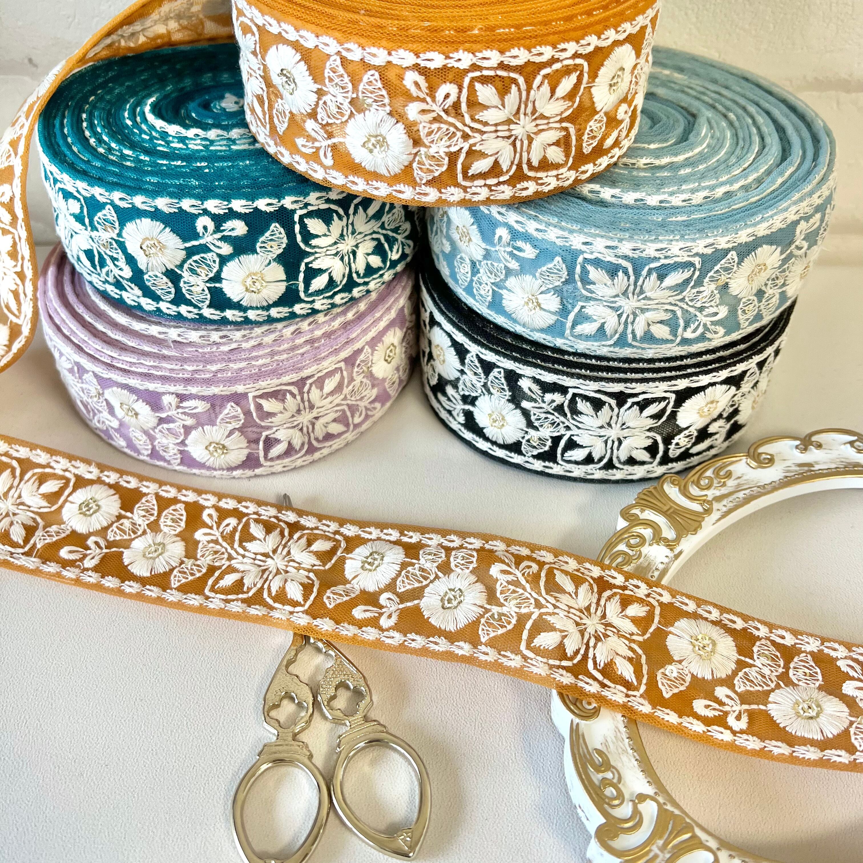 50cm インド刺繍リボン チュール 花柄 #n2t9
