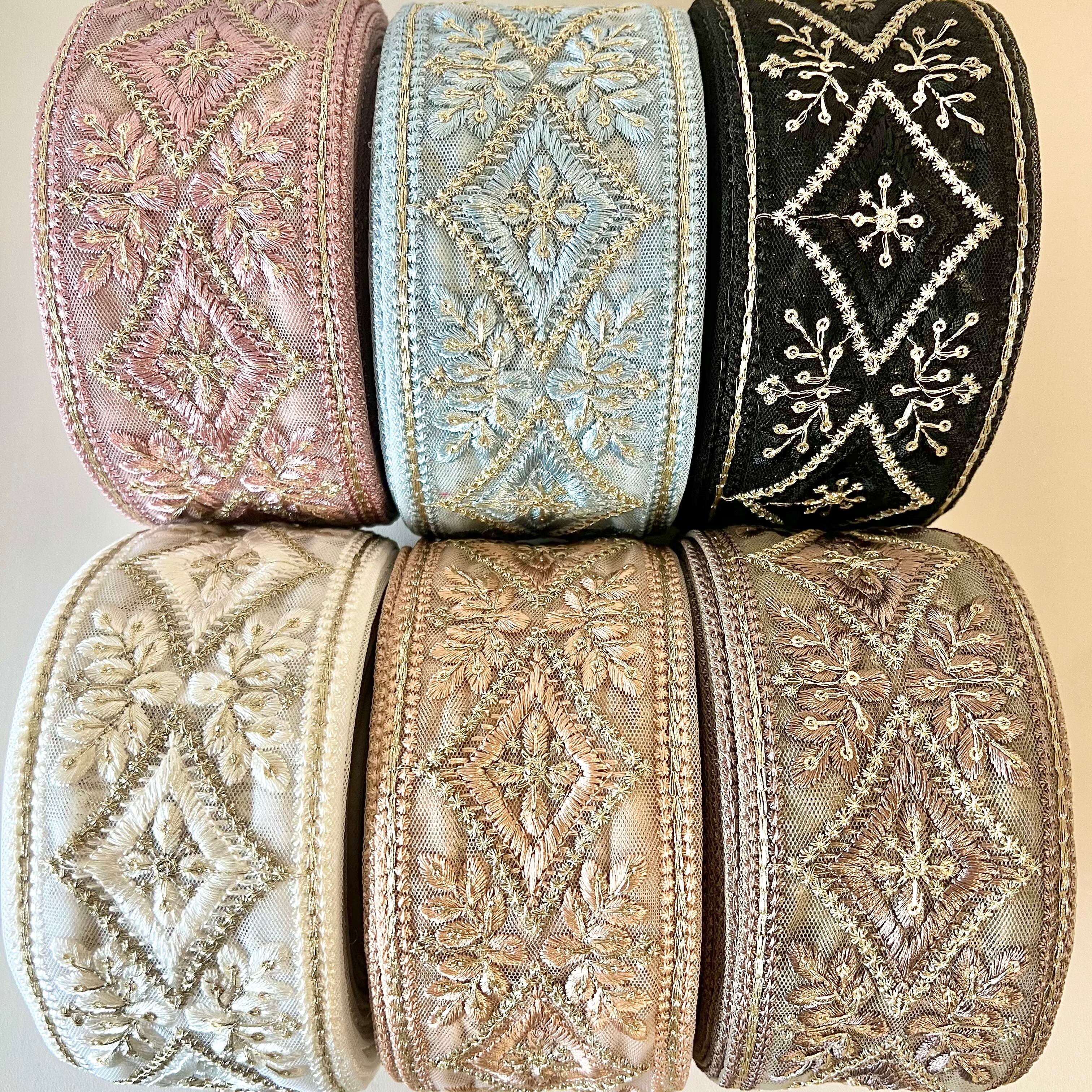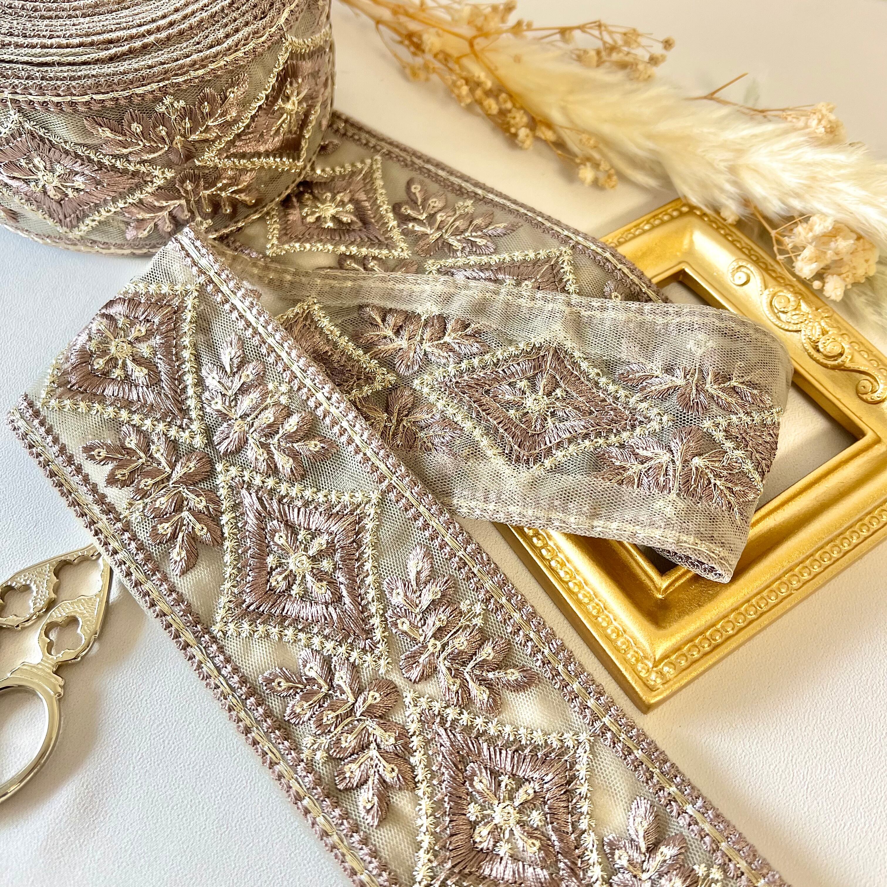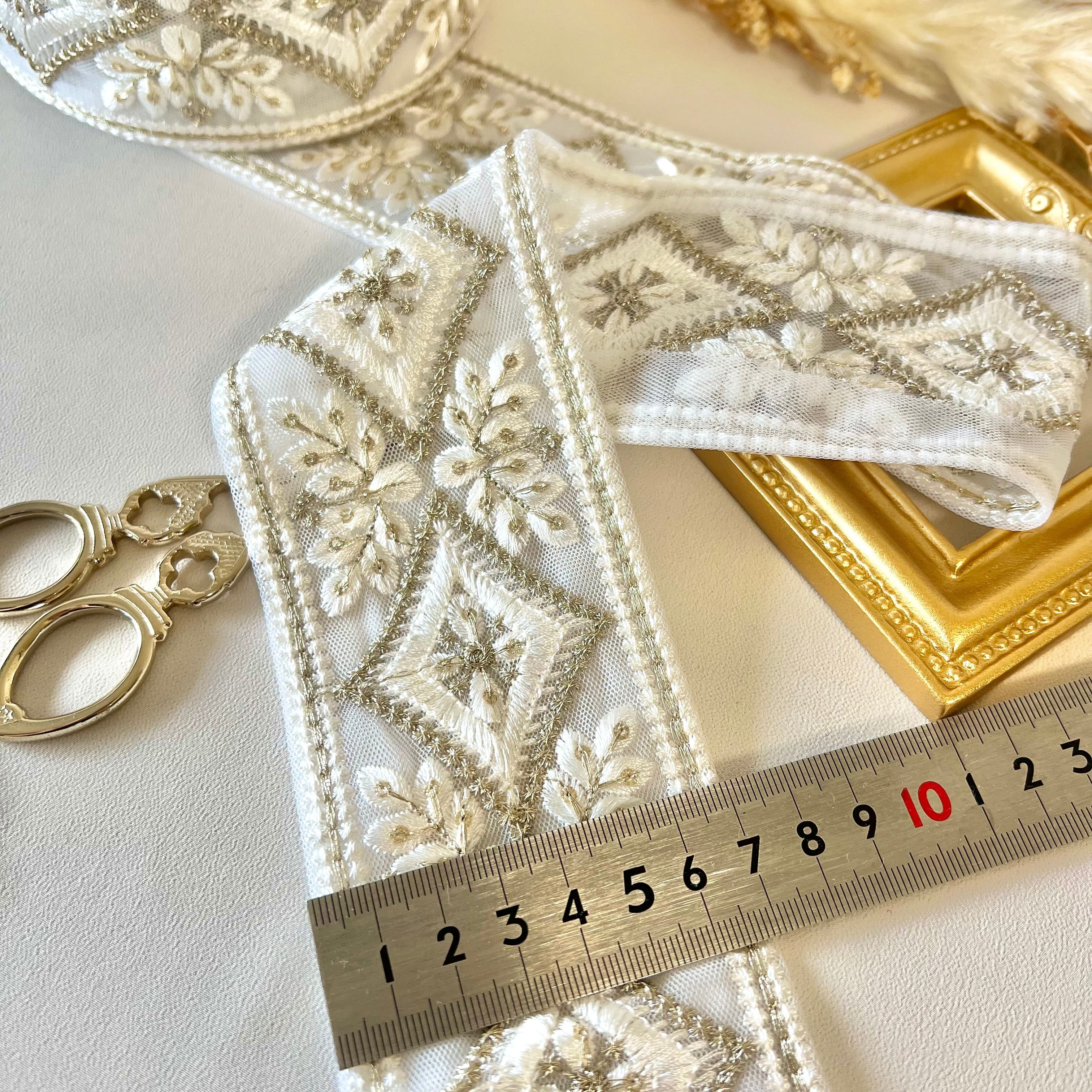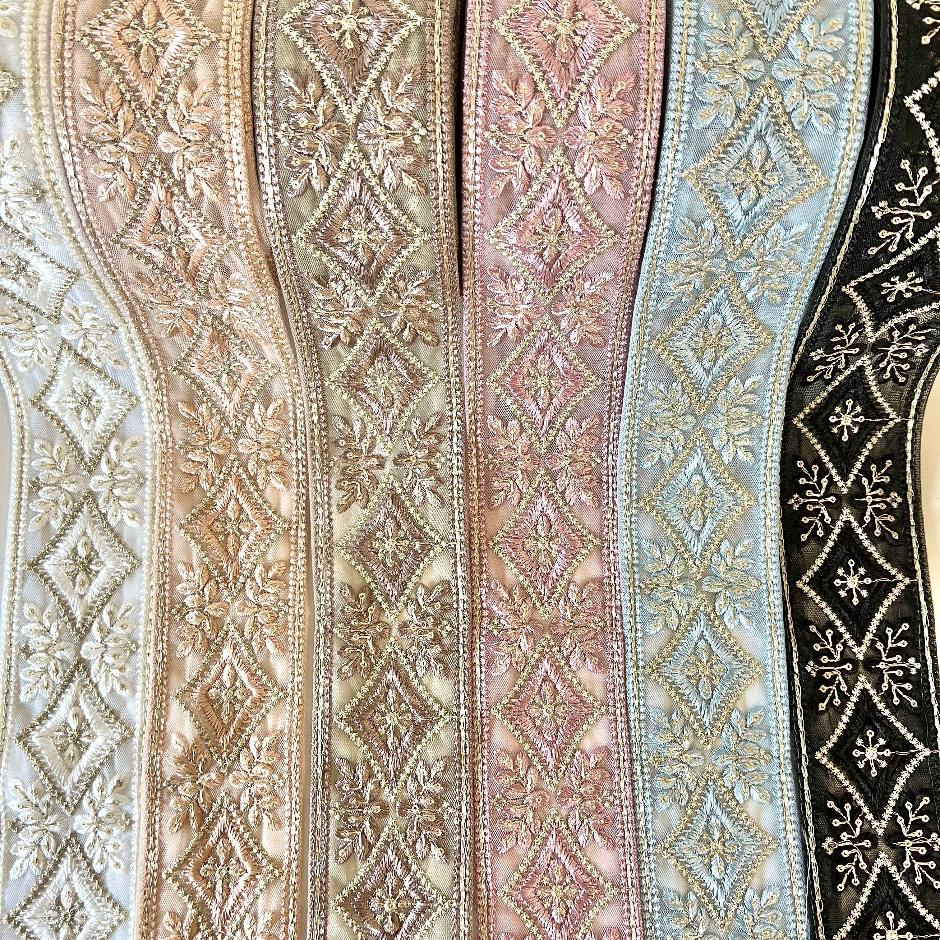 50cm インド刺繍リボン チュール ひし形柄 #sr4