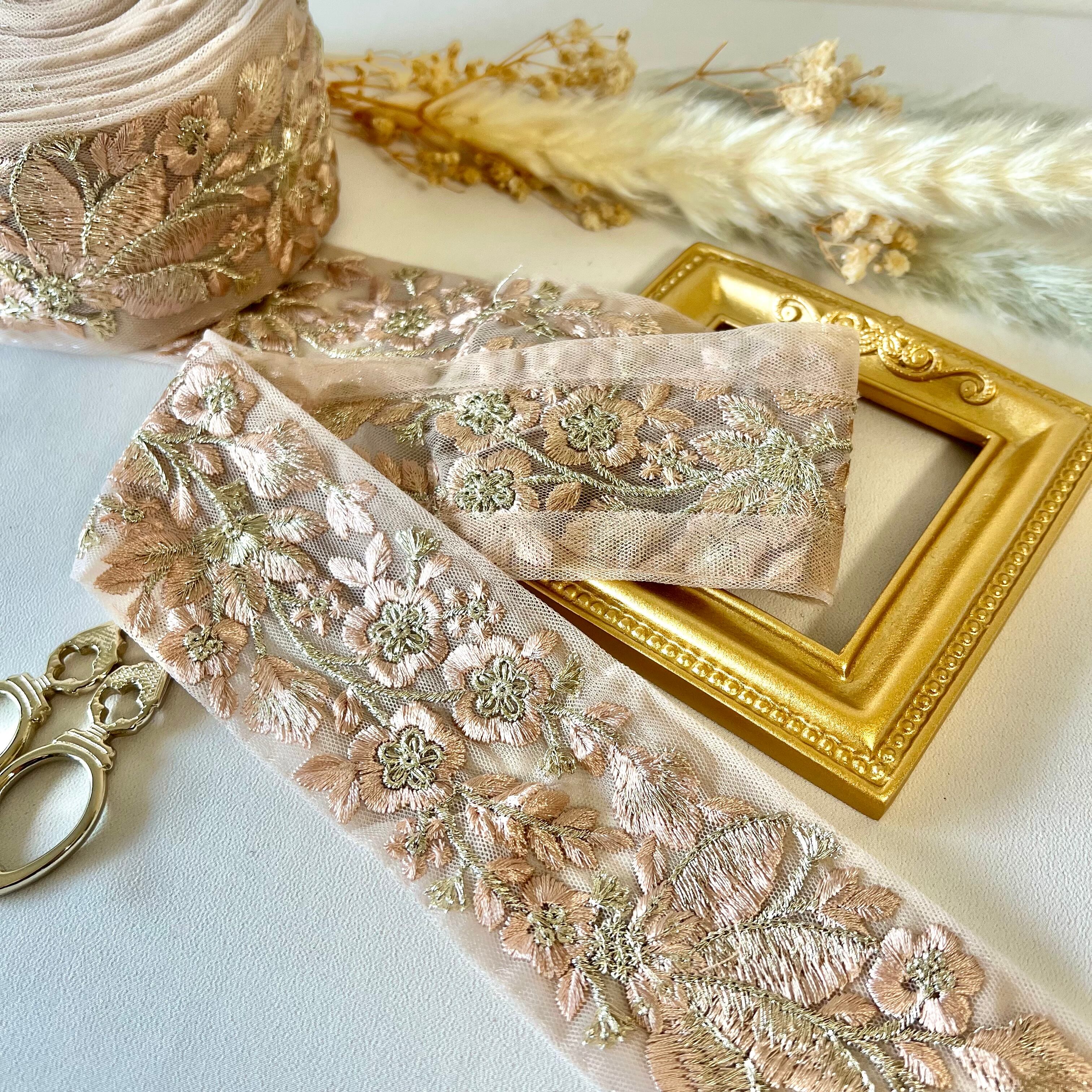 30cm インド刺繍リボン チュール 草花柄 #wt14