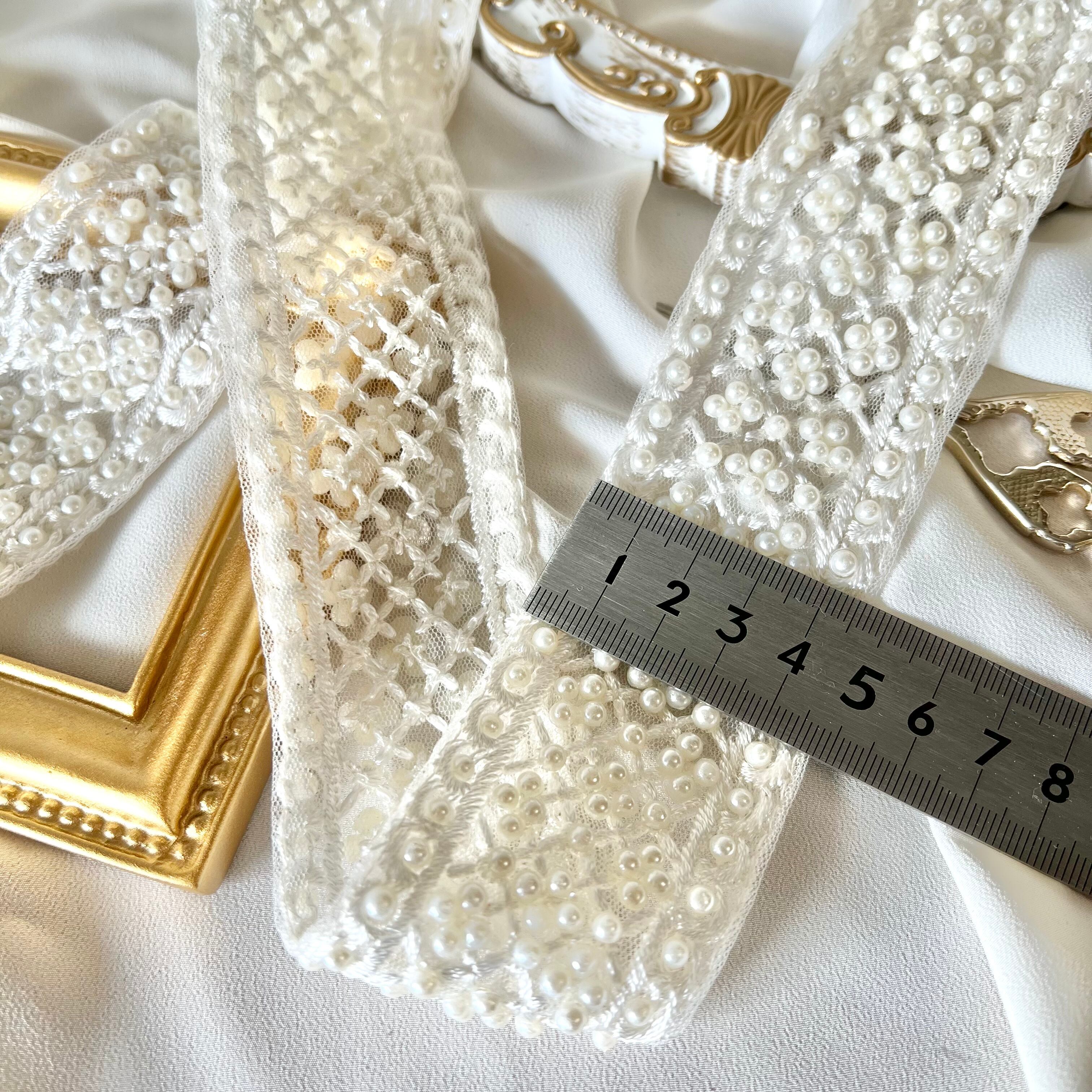 30cm/50cm インド刺繍リボン パール付き 小花柄 #pw8