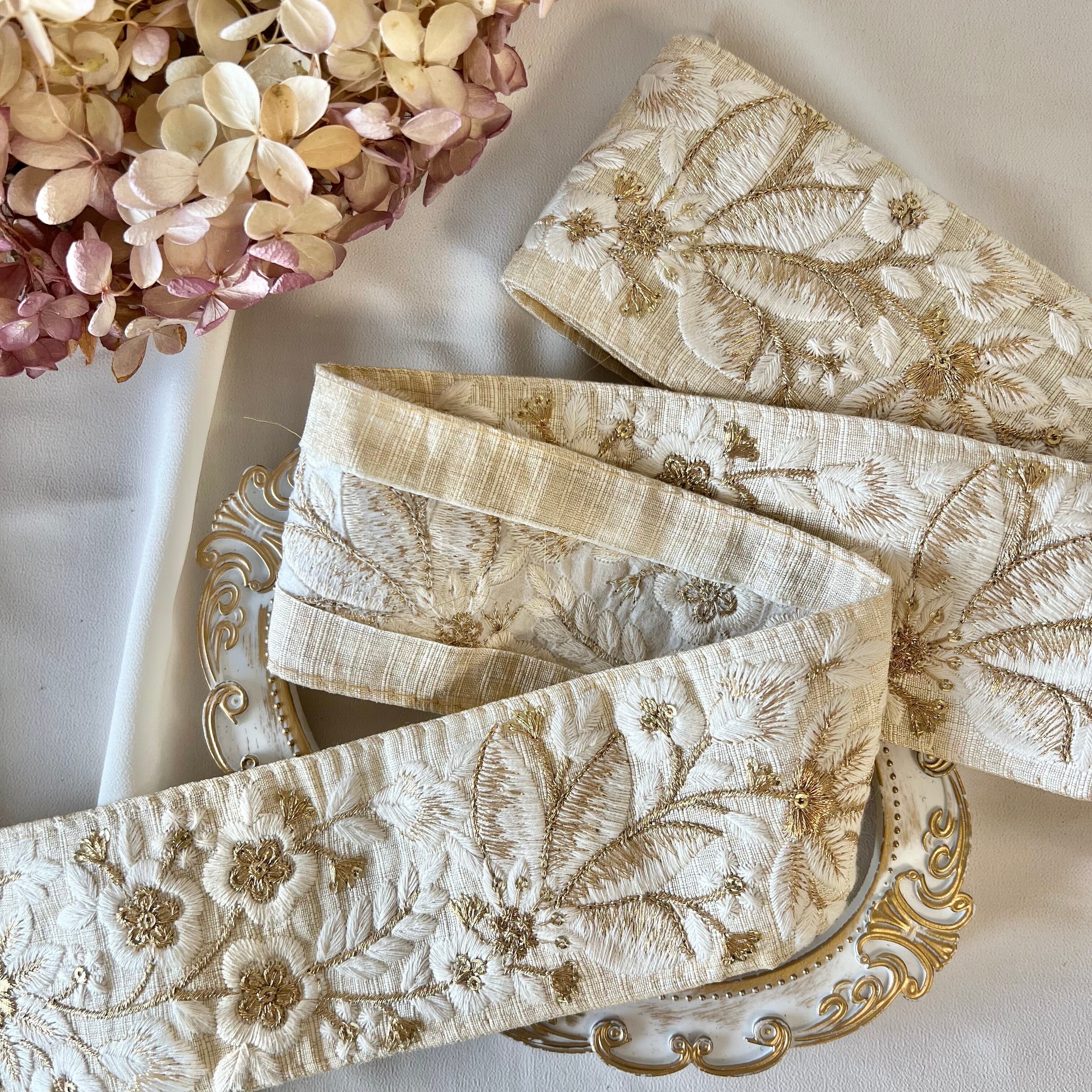 30cm インド刺繍リボン シルク 花柄 #ws21