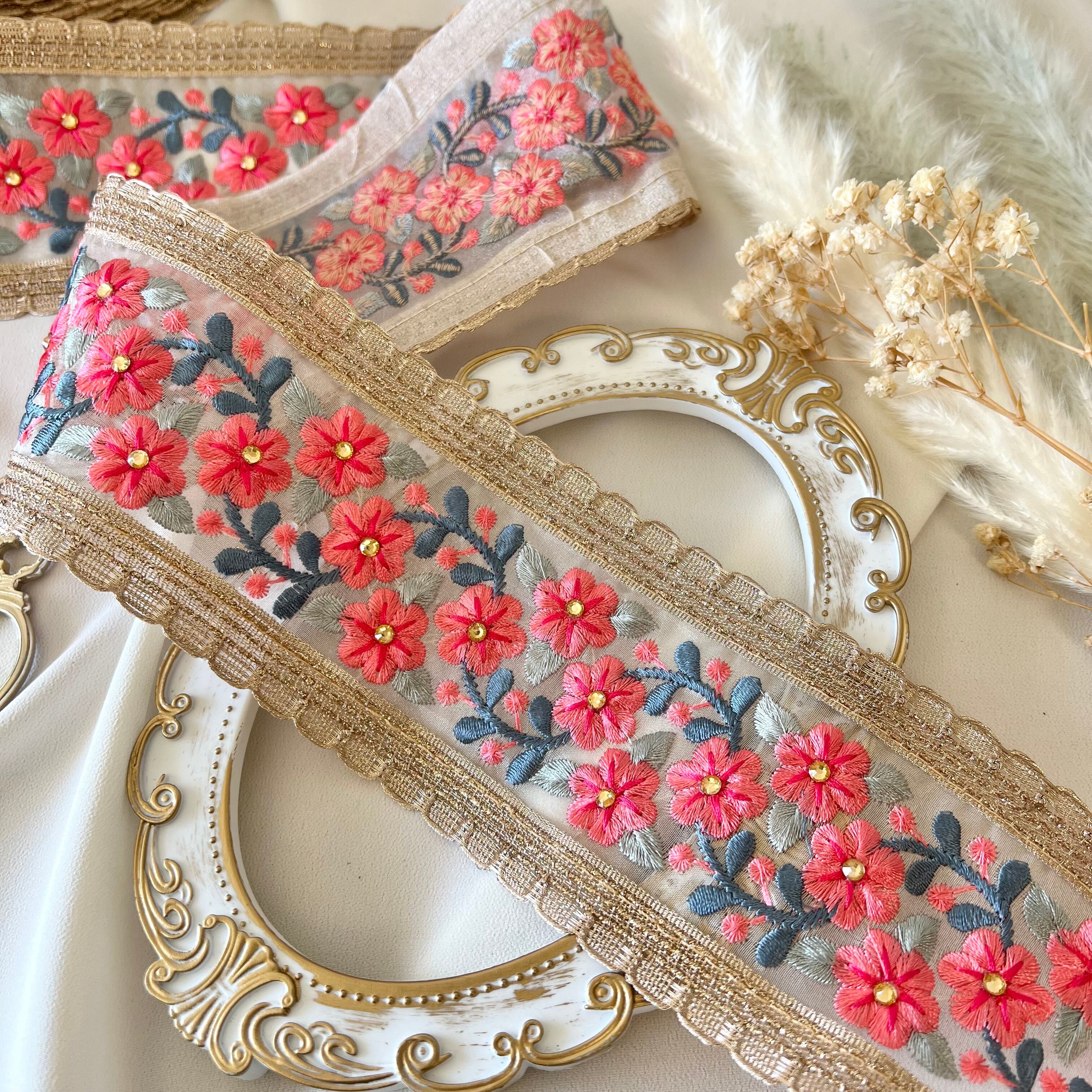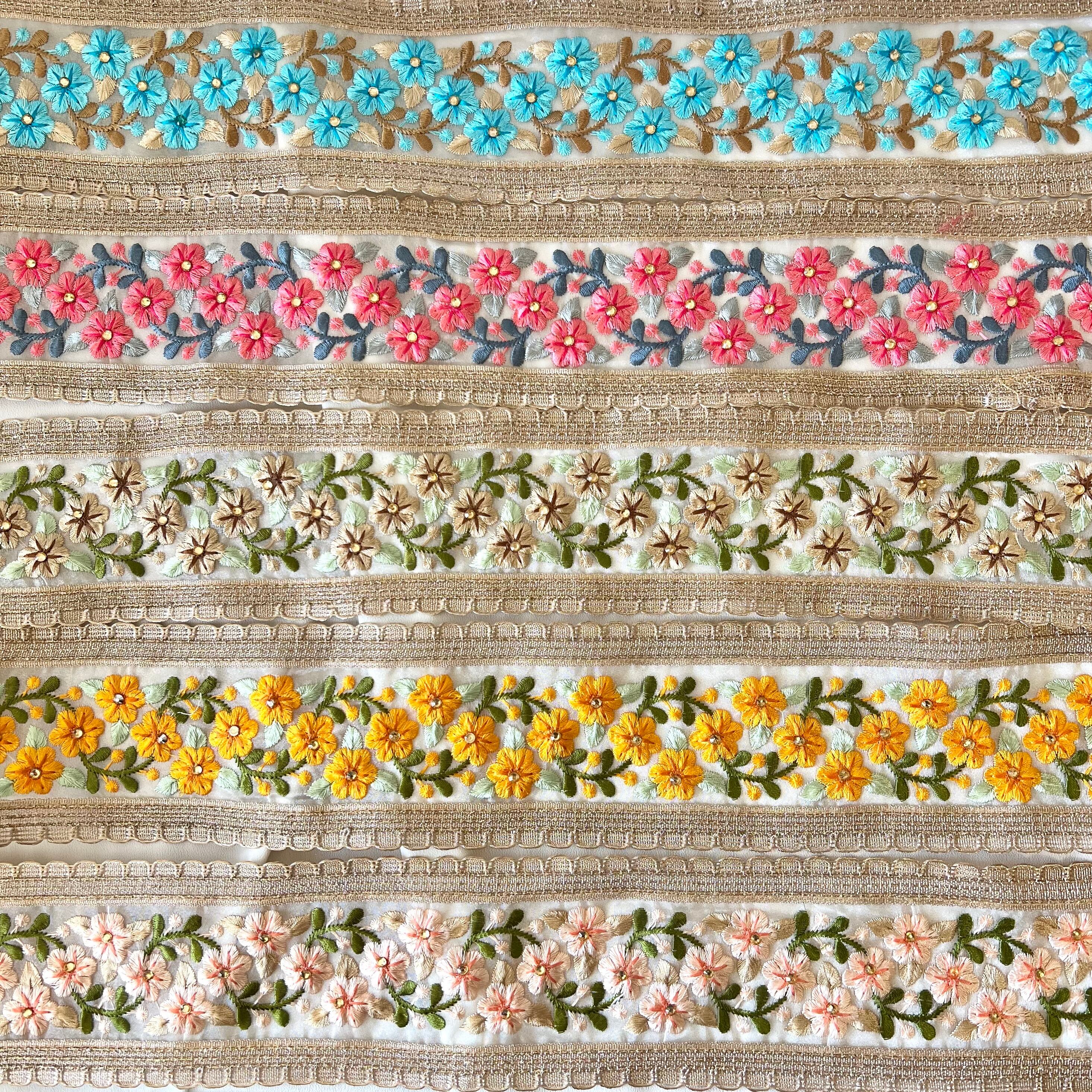 50cm インド刺繍リボン チュール 小花柄 #pw19