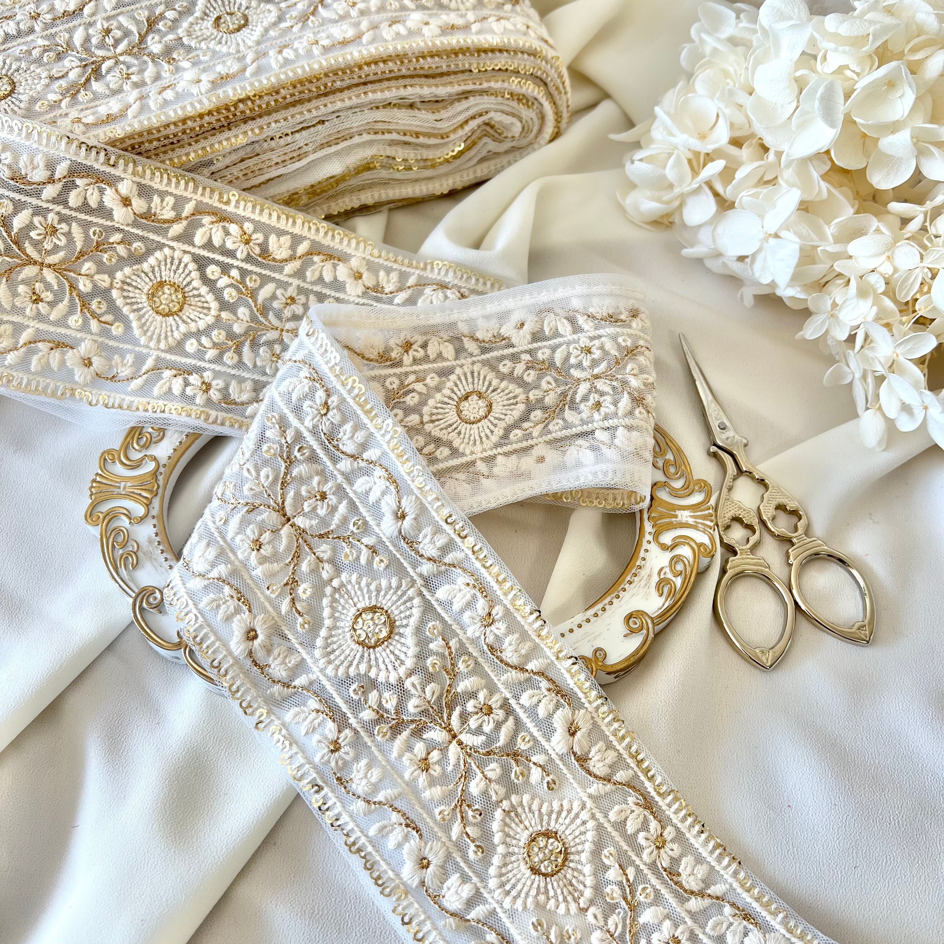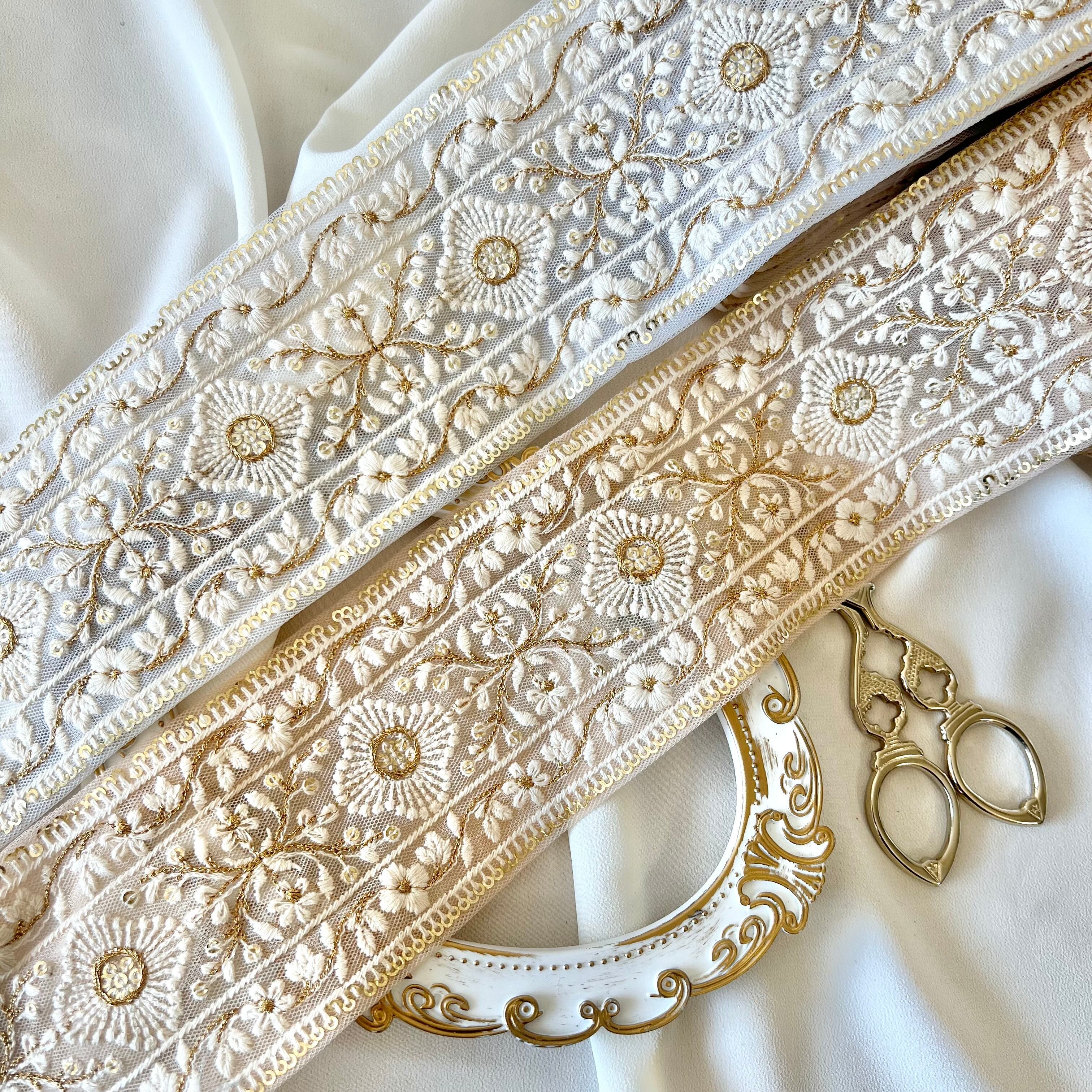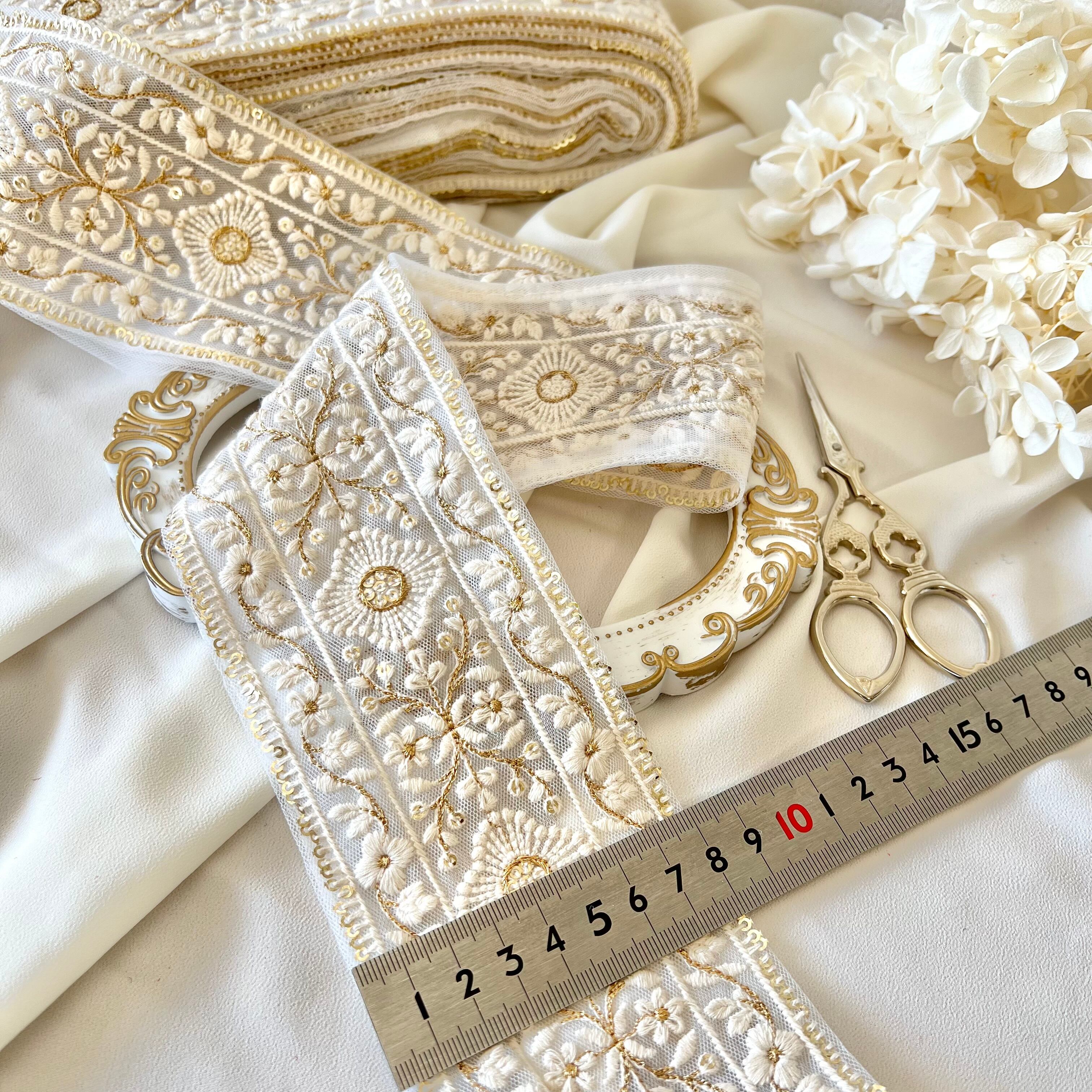 30cm インド刺繍リボン チュール 花柄 #wt12