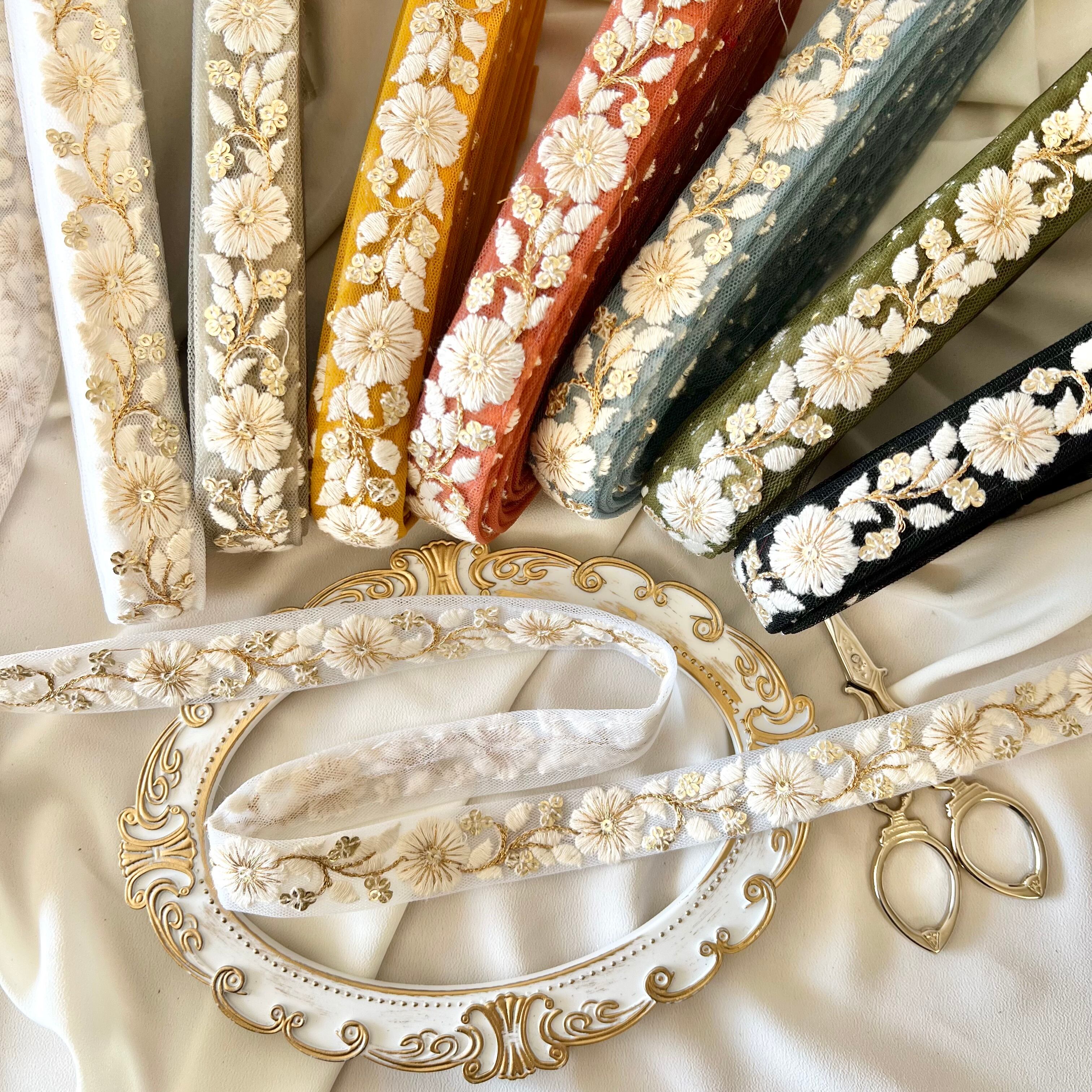 50cm インド刺繍リボン チュール 花柄 #nt9